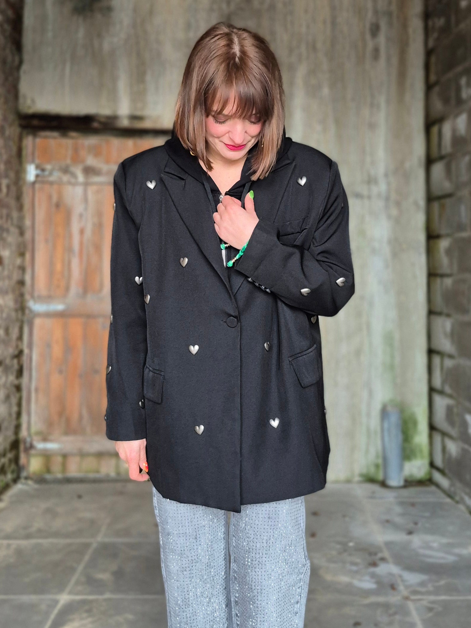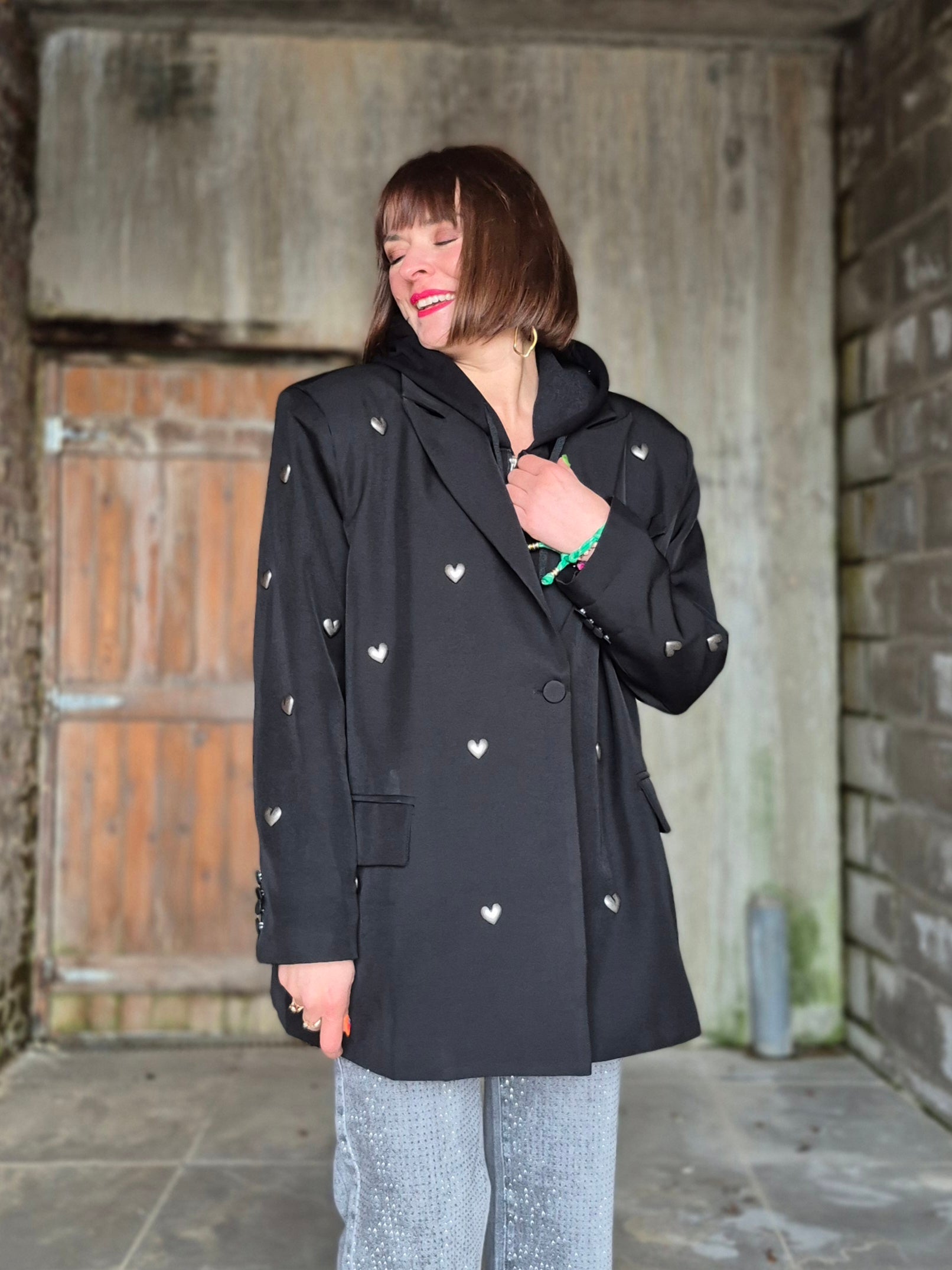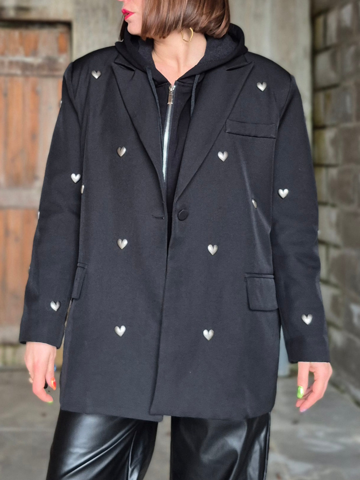- Magnifique Blazer oversize / Clous en forme de coeur couleur canon de fusil