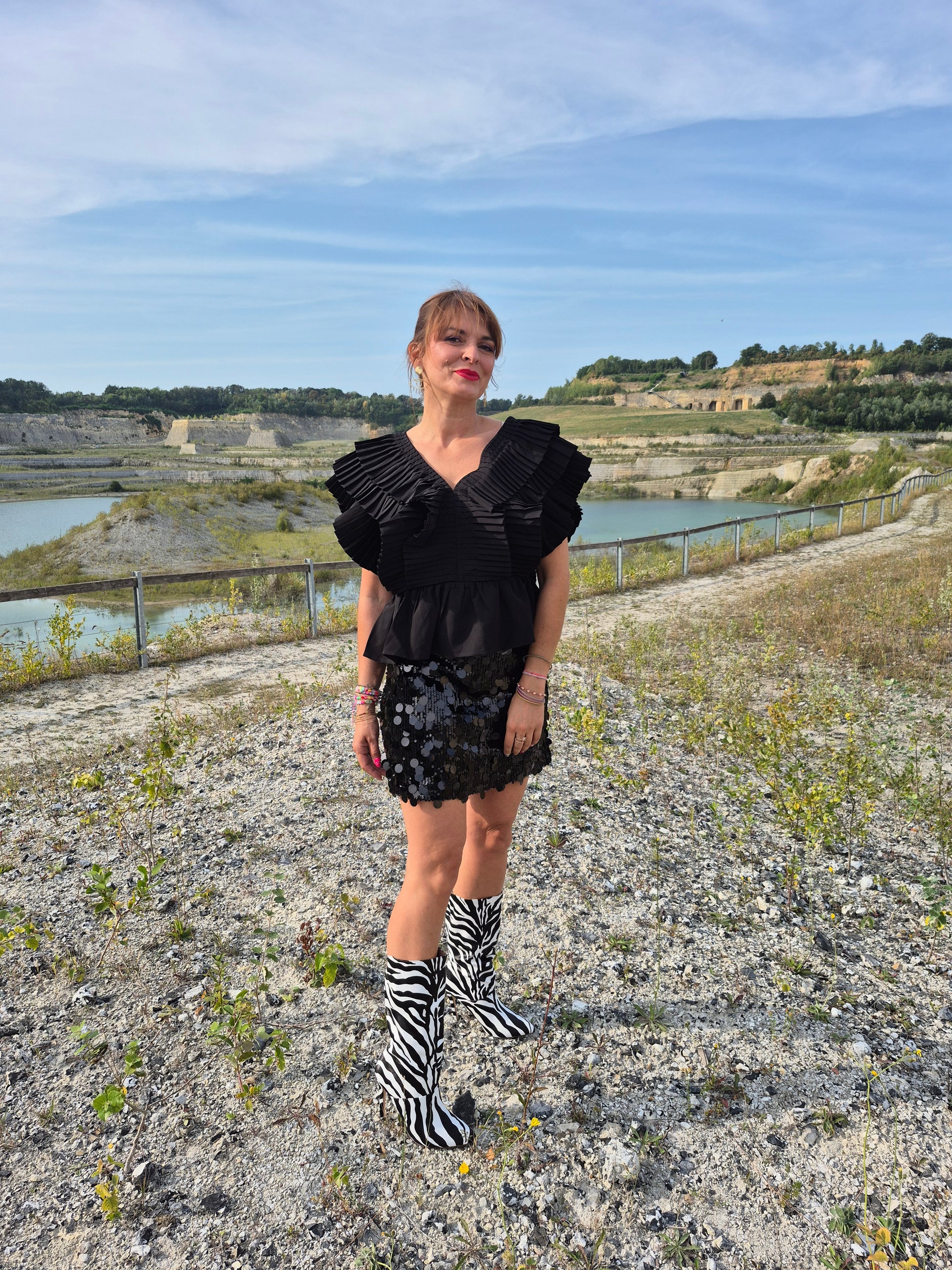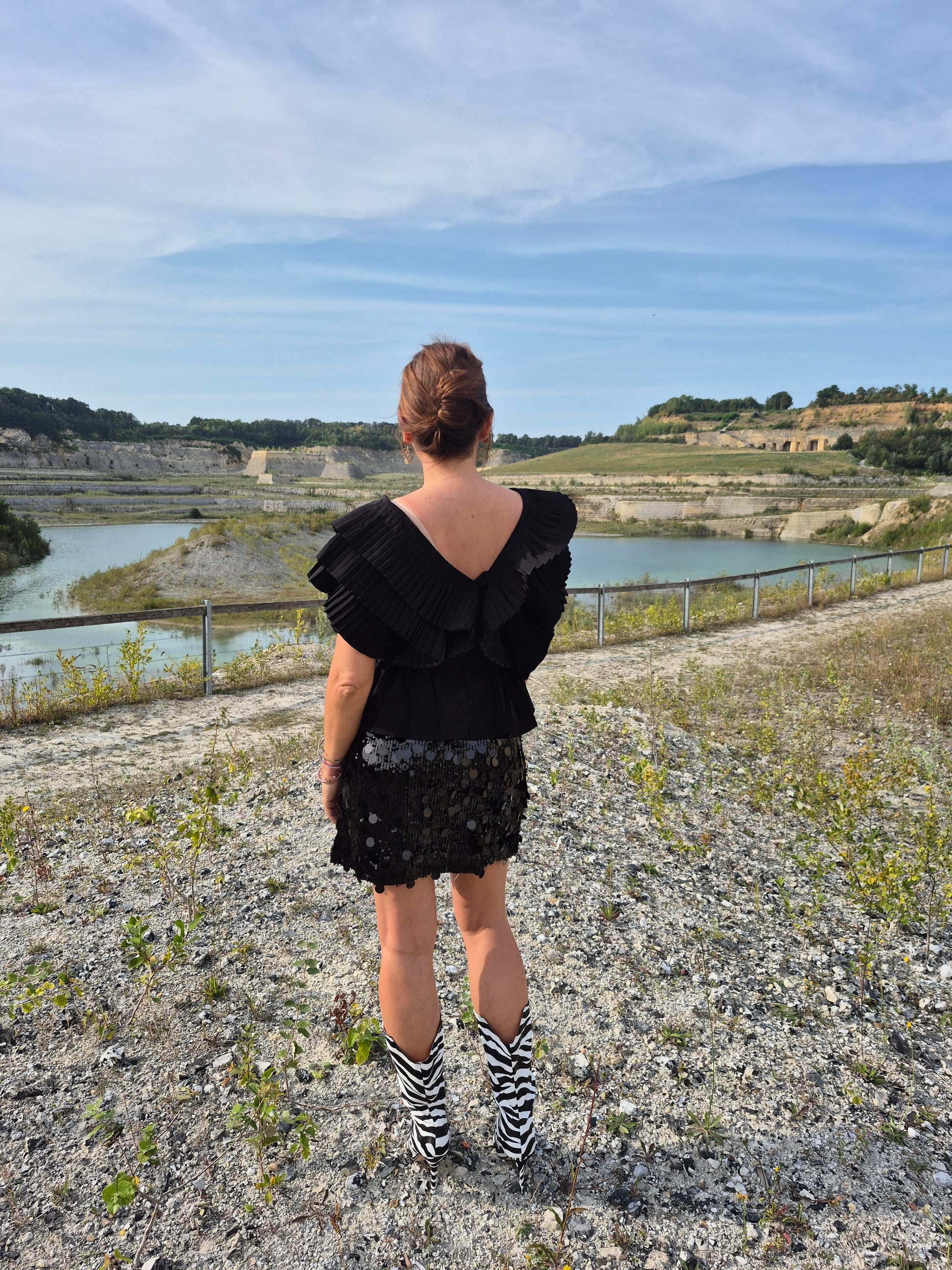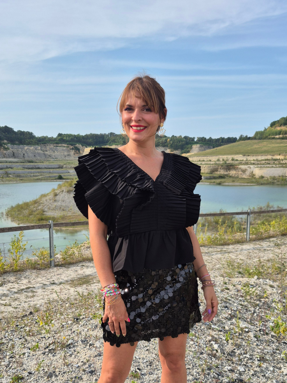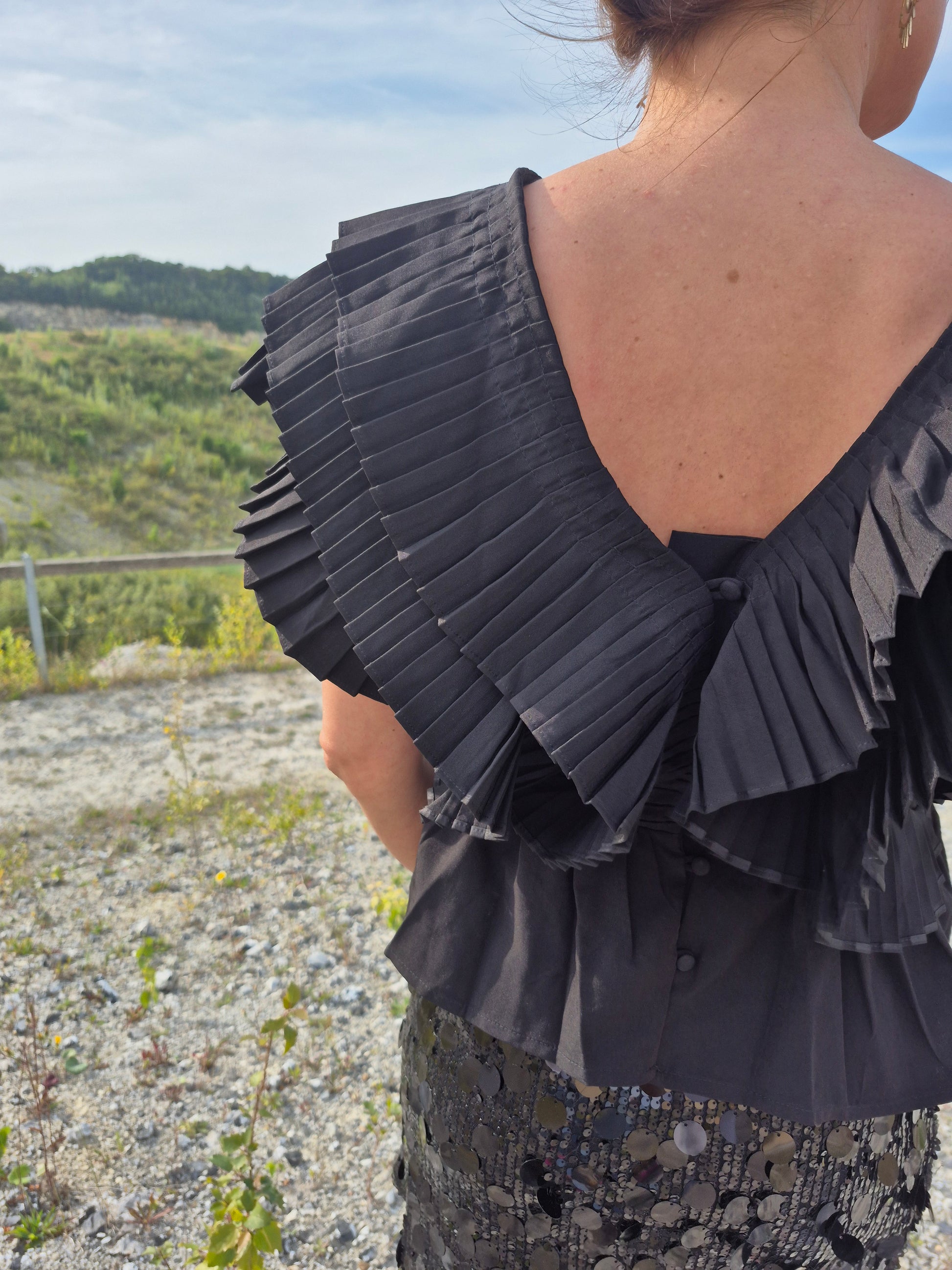 - Joli chemisier volanté, boutonné dans le dos / Encolure en V
