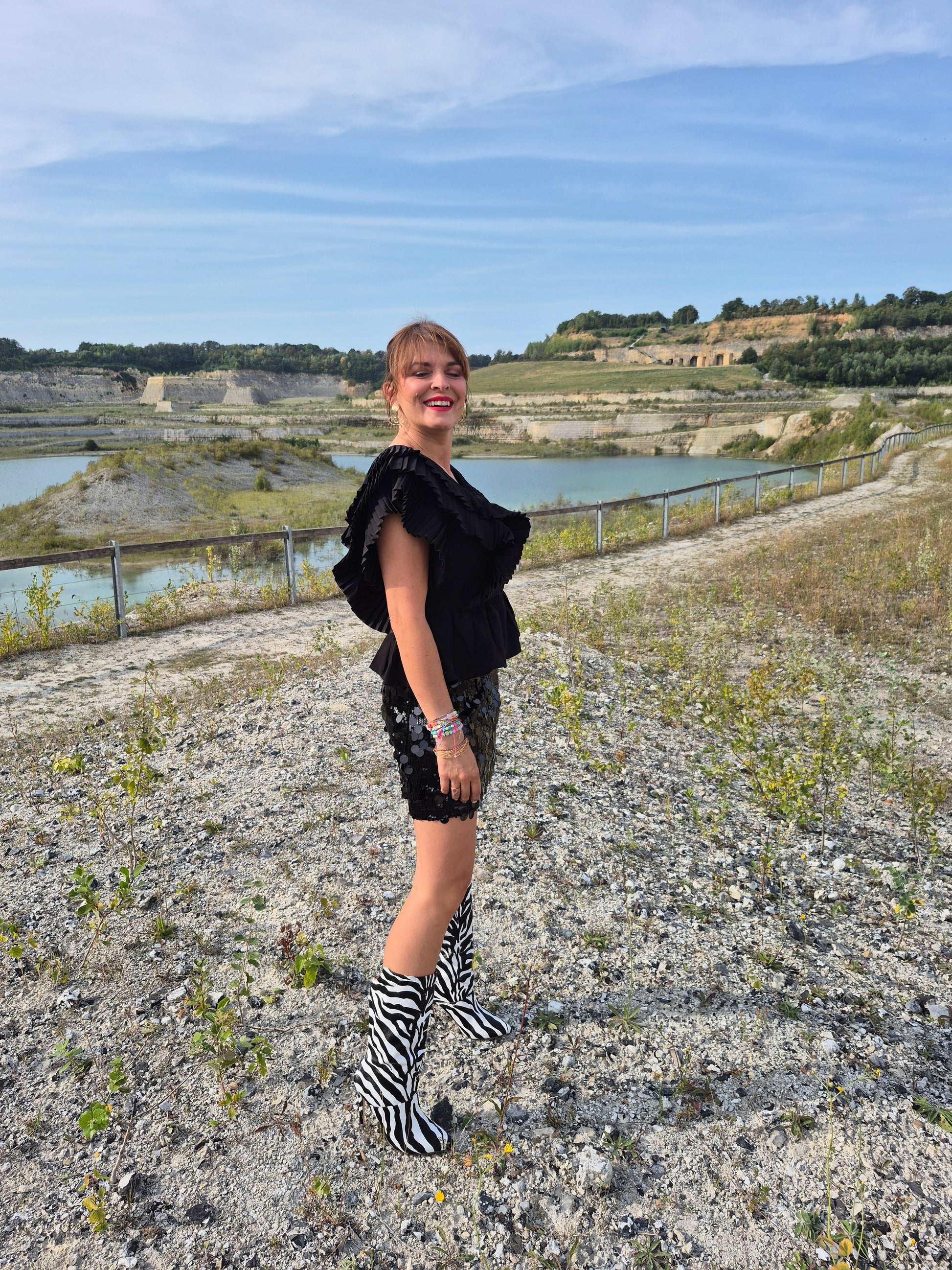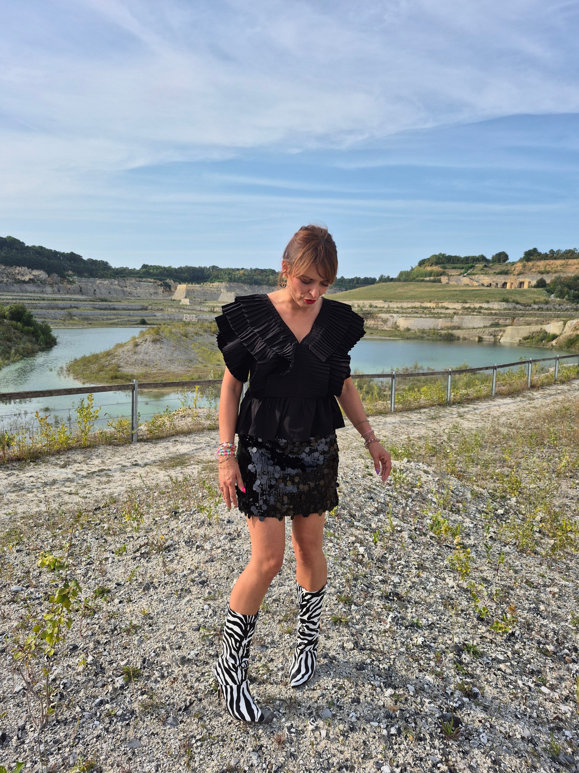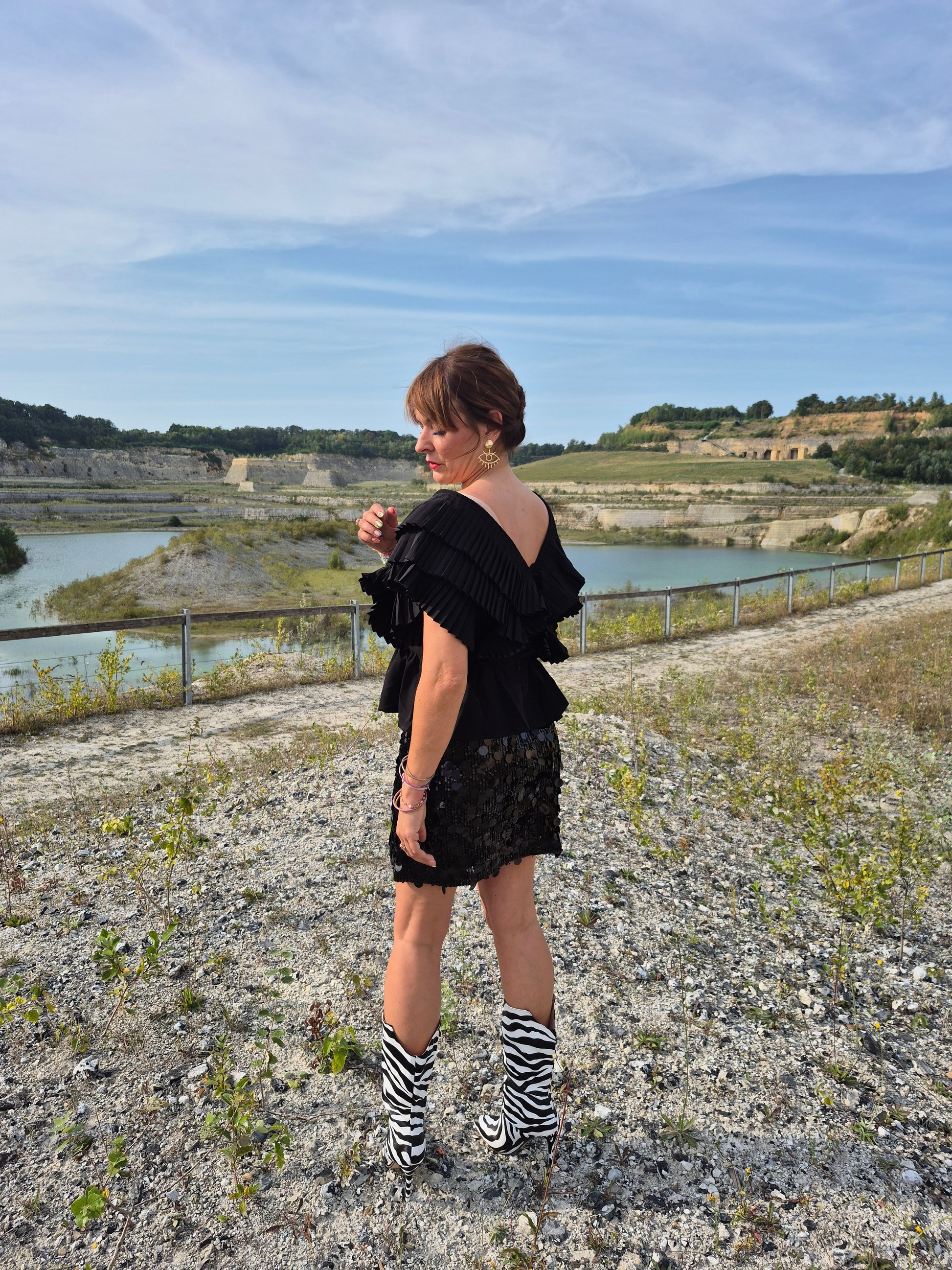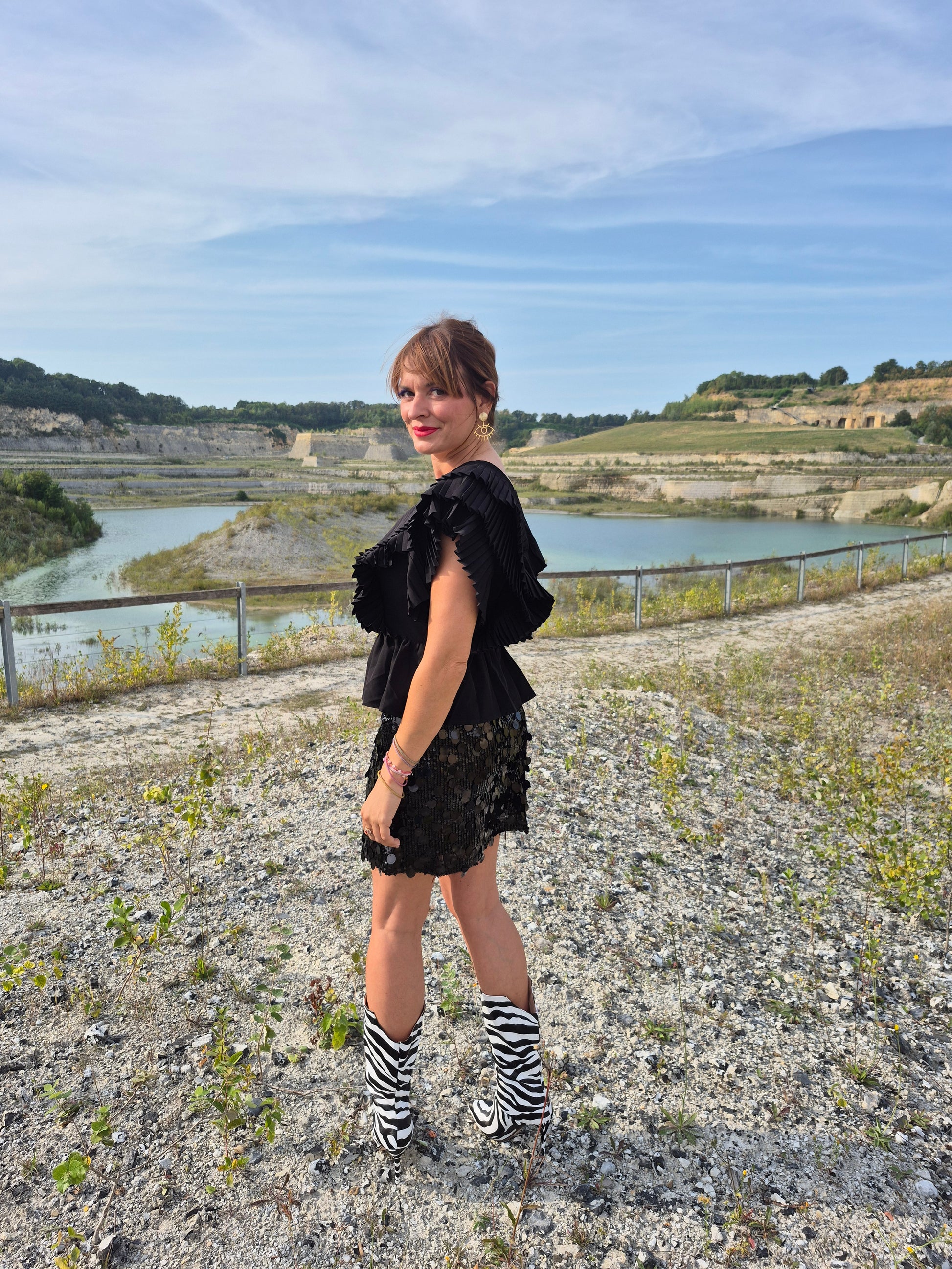 - Joli chemisier volanté, boutonné dans le dos / Encolure en V
