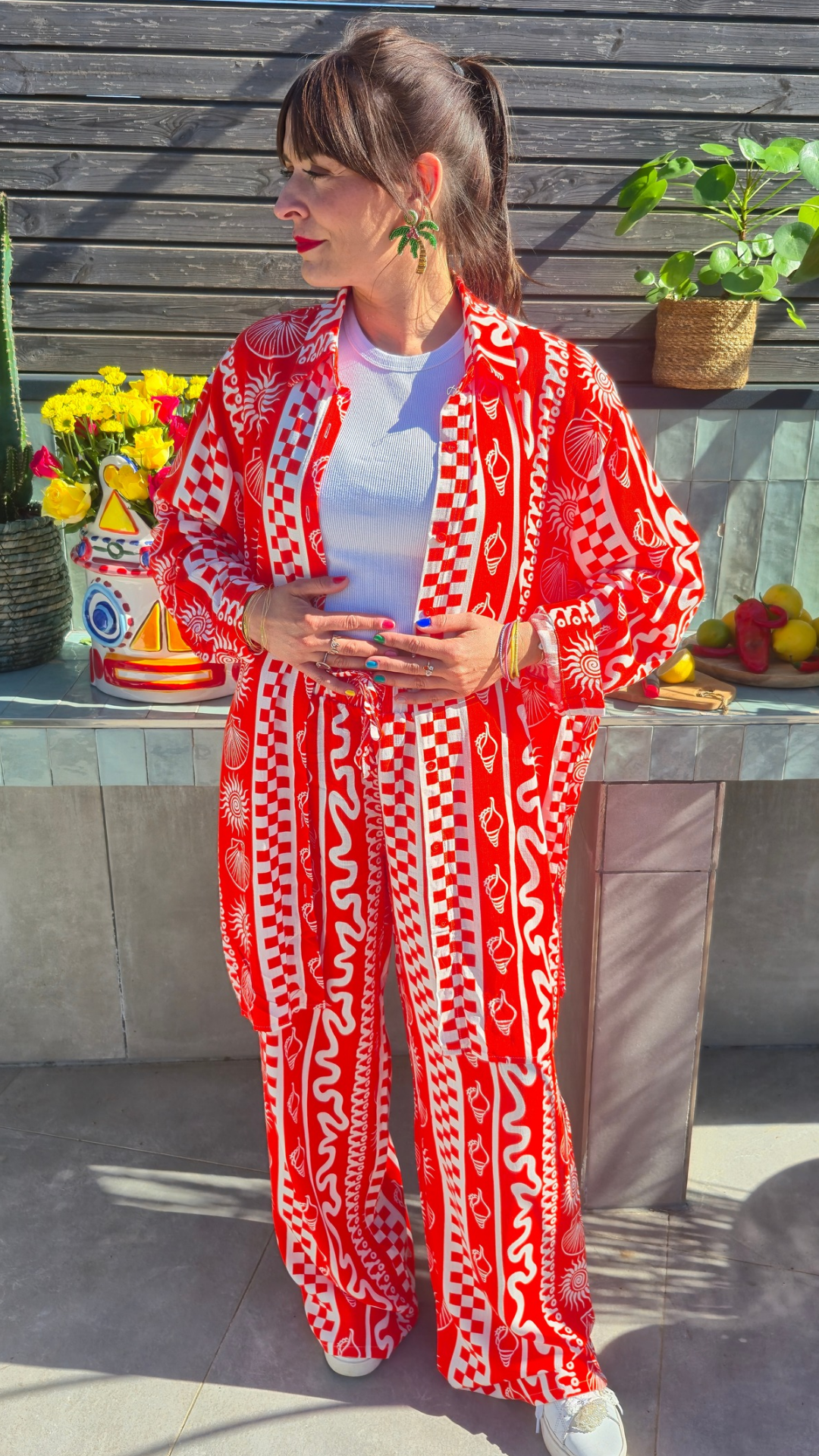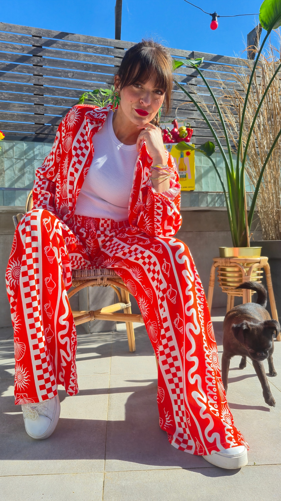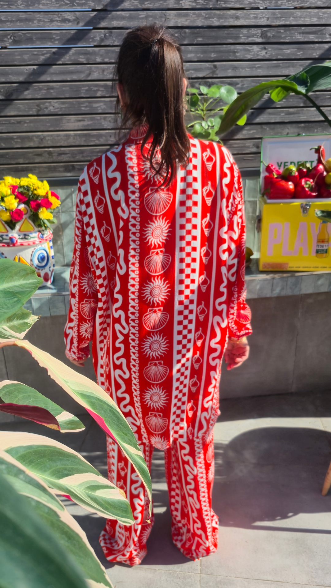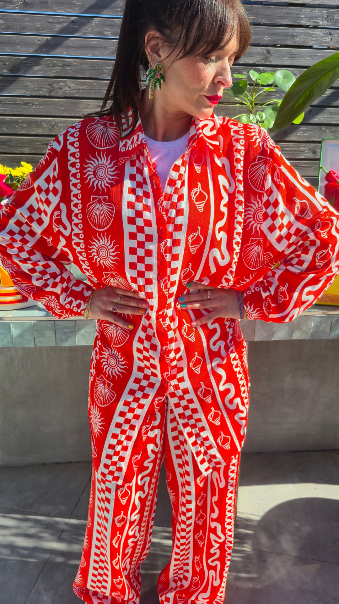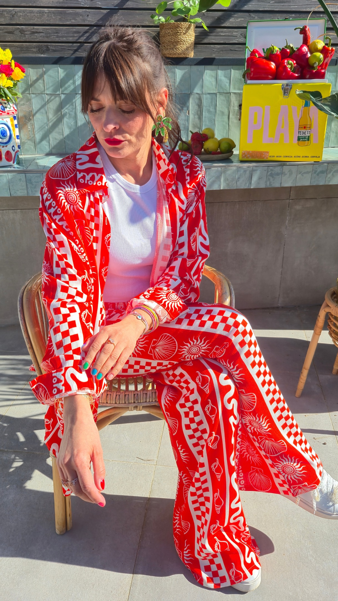 - Ensemble 2 pièces ( Chemisier boutonné et pantalon élastique à la taille )