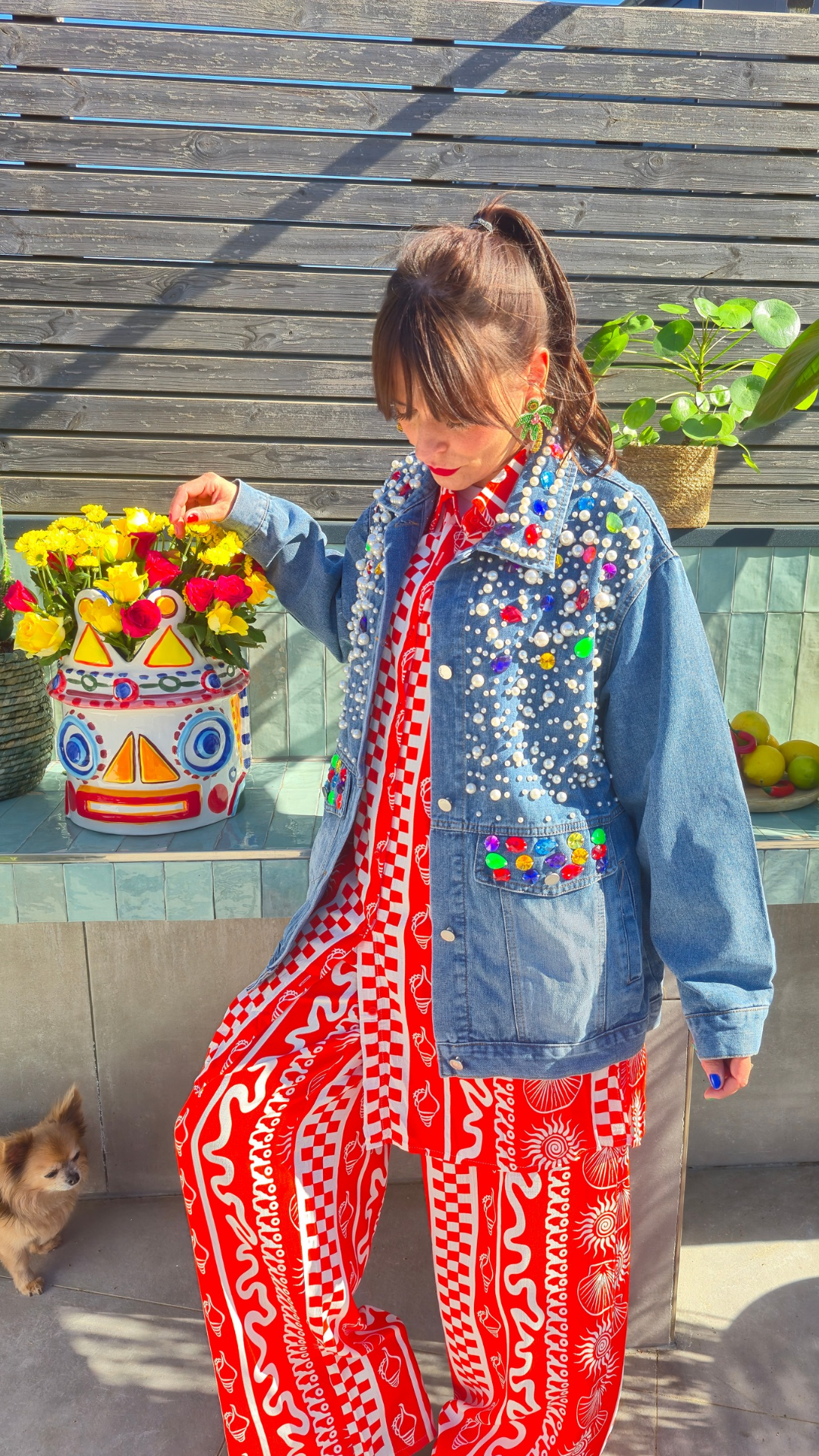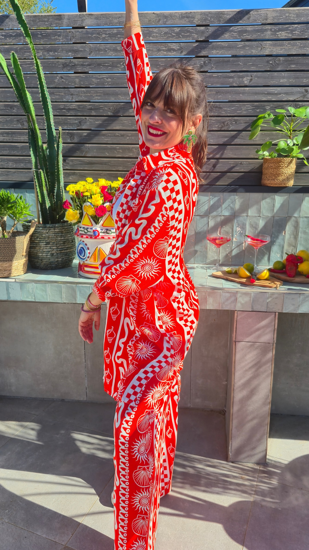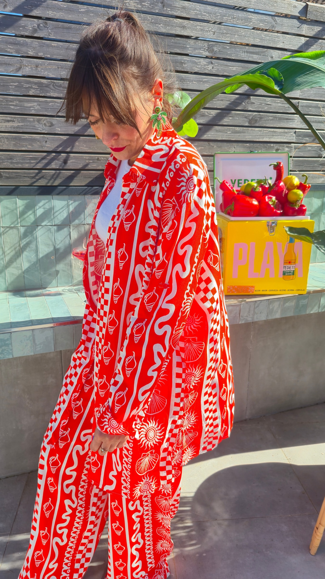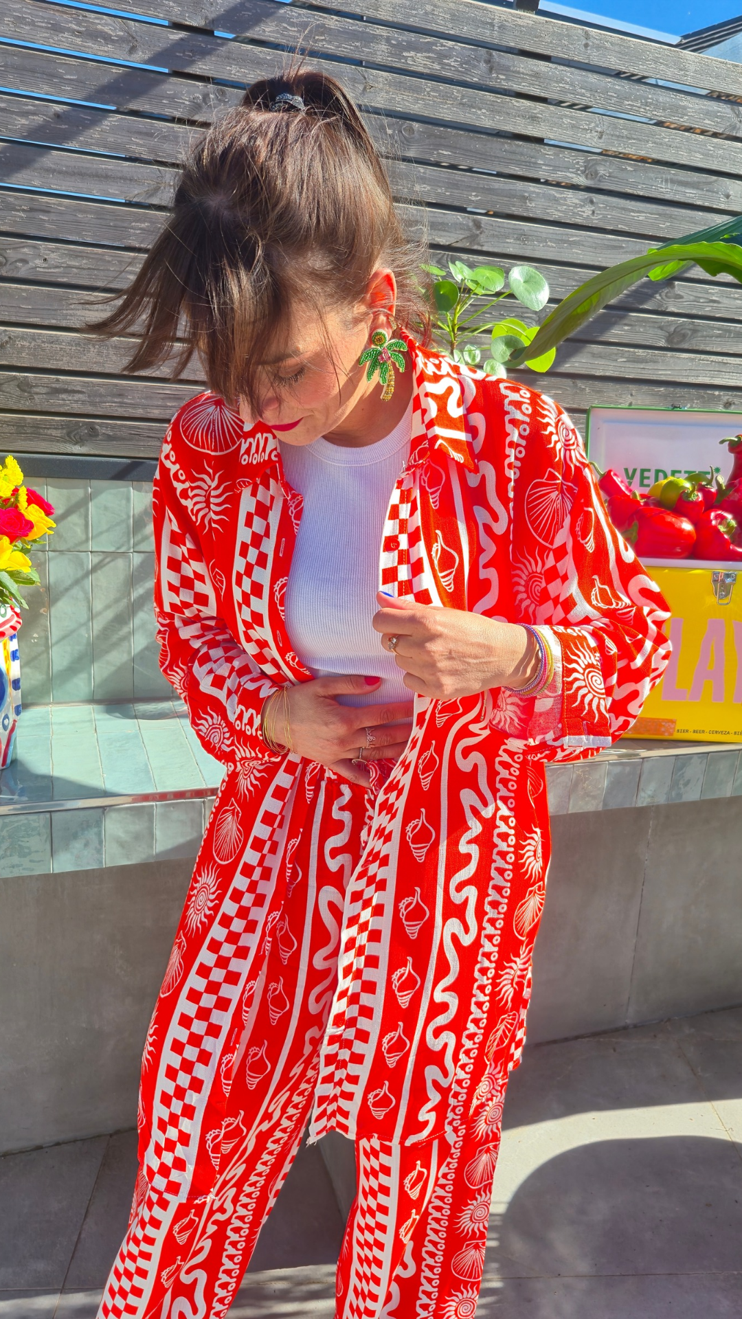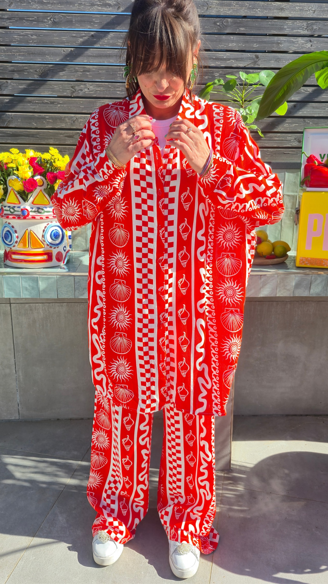 - Ensemble 2 pièces ( Chemisier boutonné et pantalon élastique à la taille )