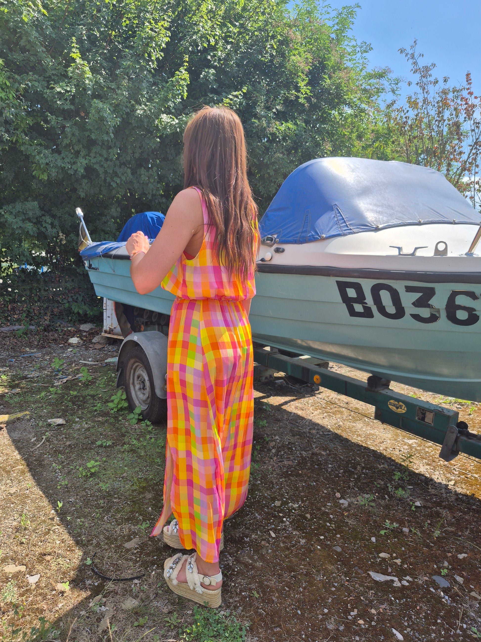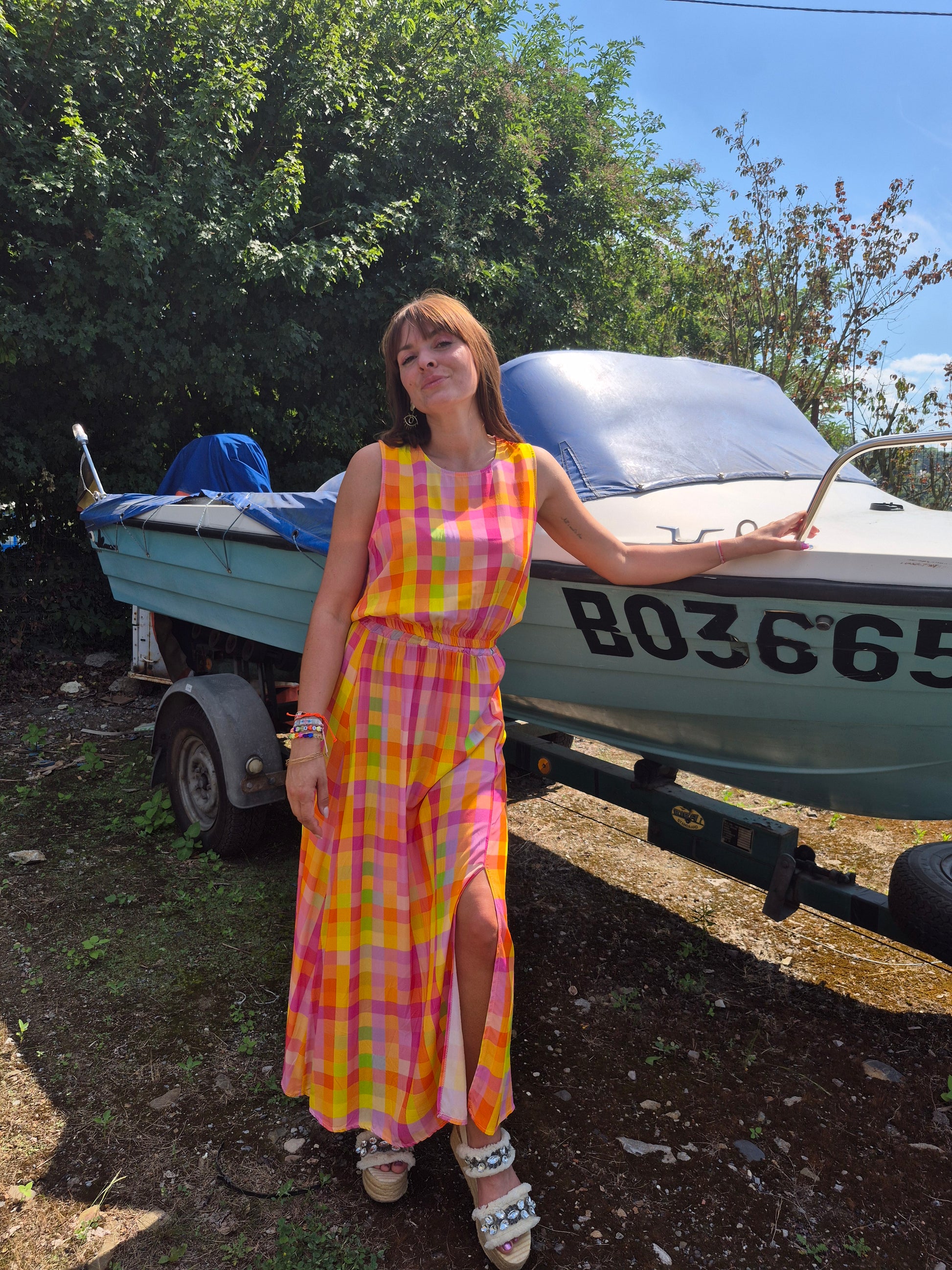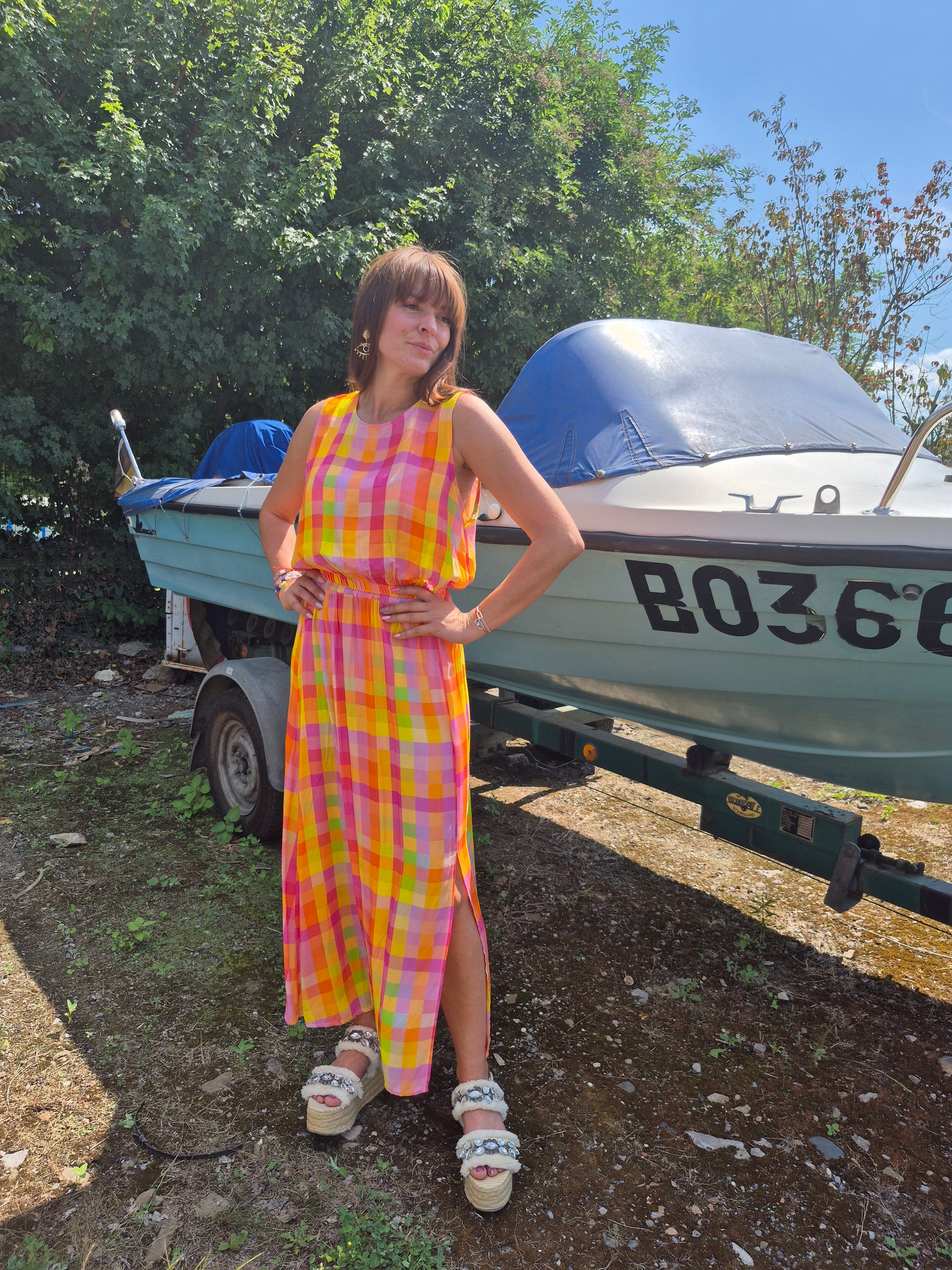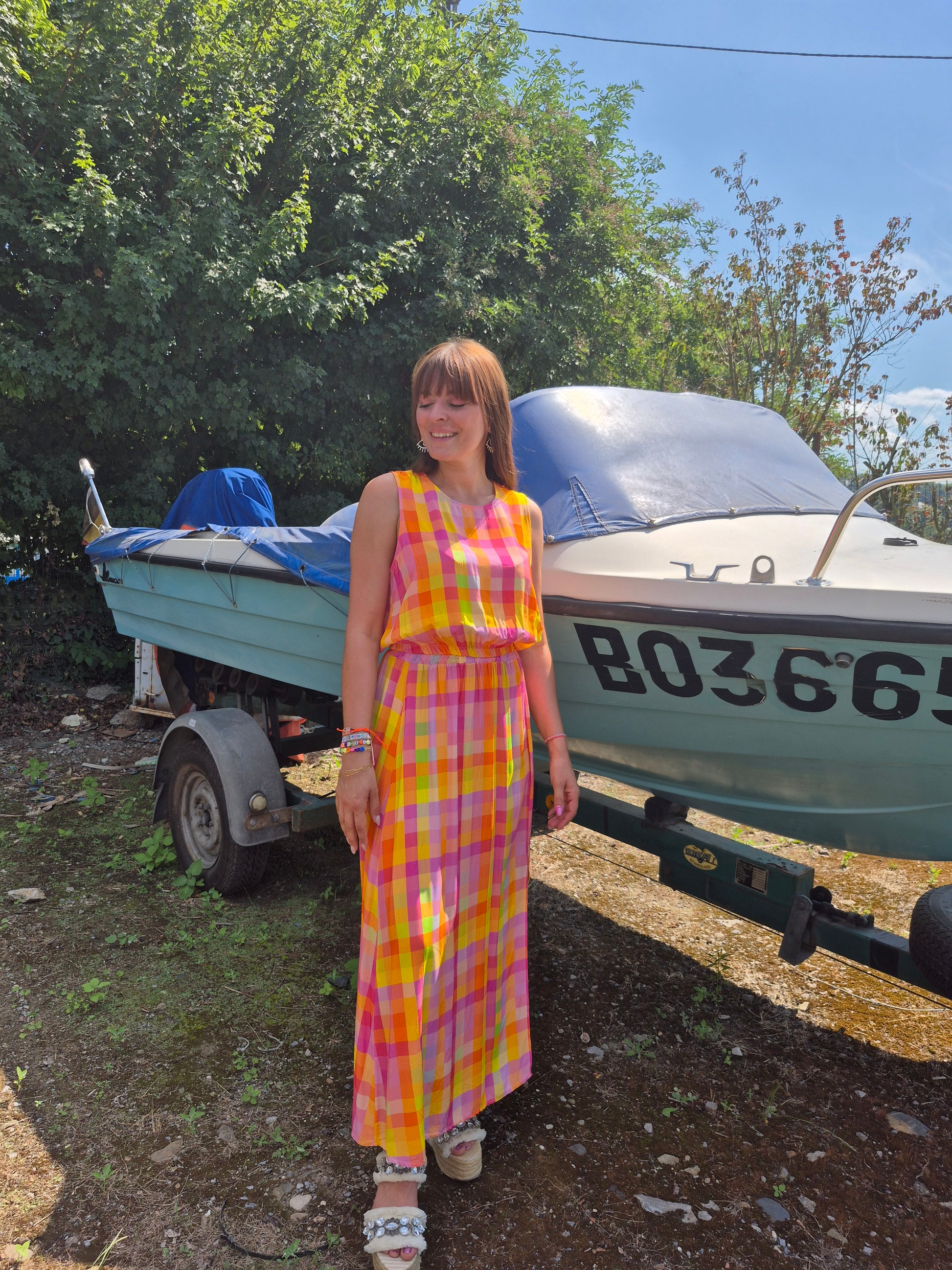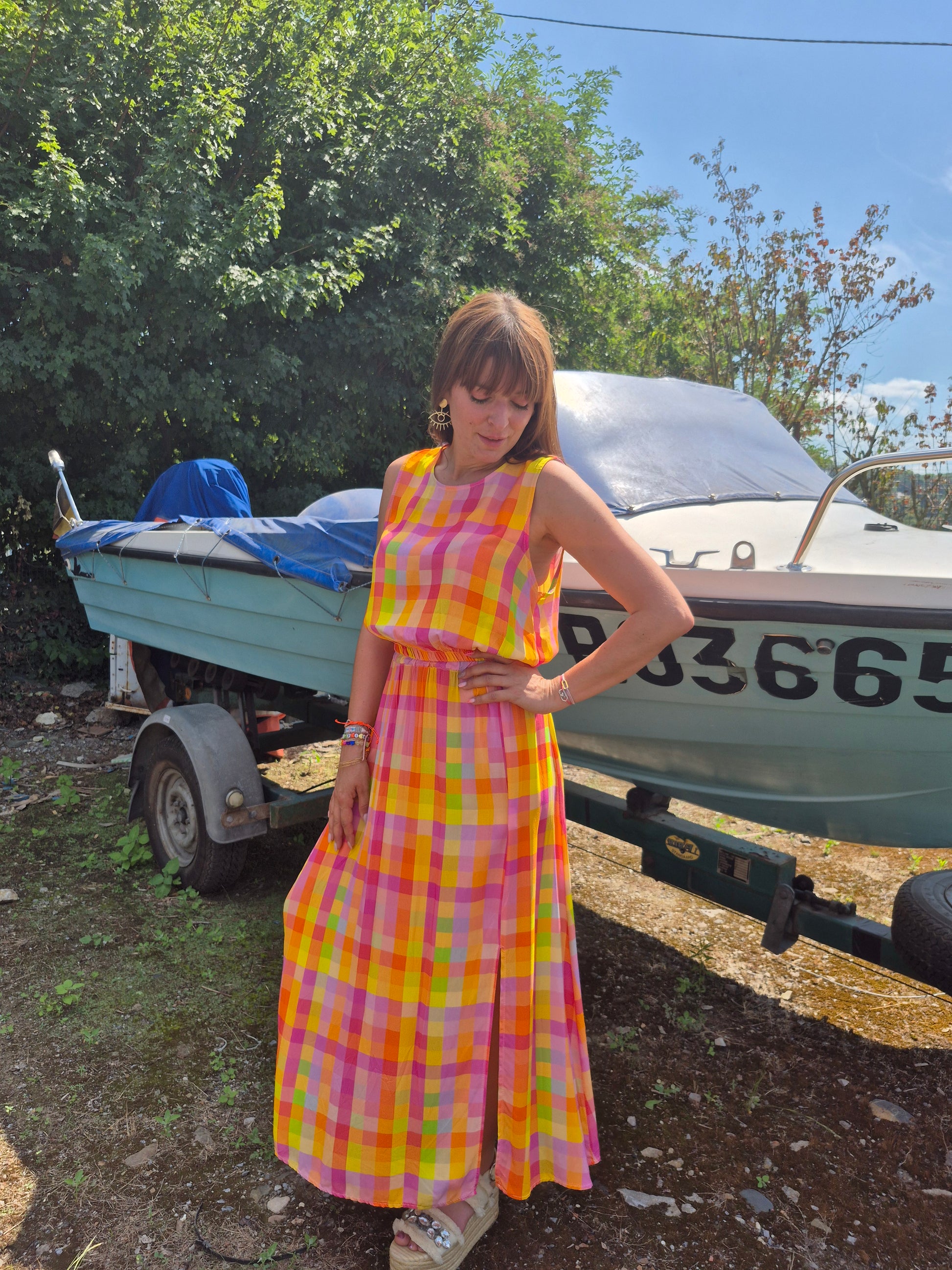 - Ensemble 2 pièces : Top avec ouverture et bouton dans le dos, couture élastique dans le bas / Jupe élastique, ouverte à partir du genoux