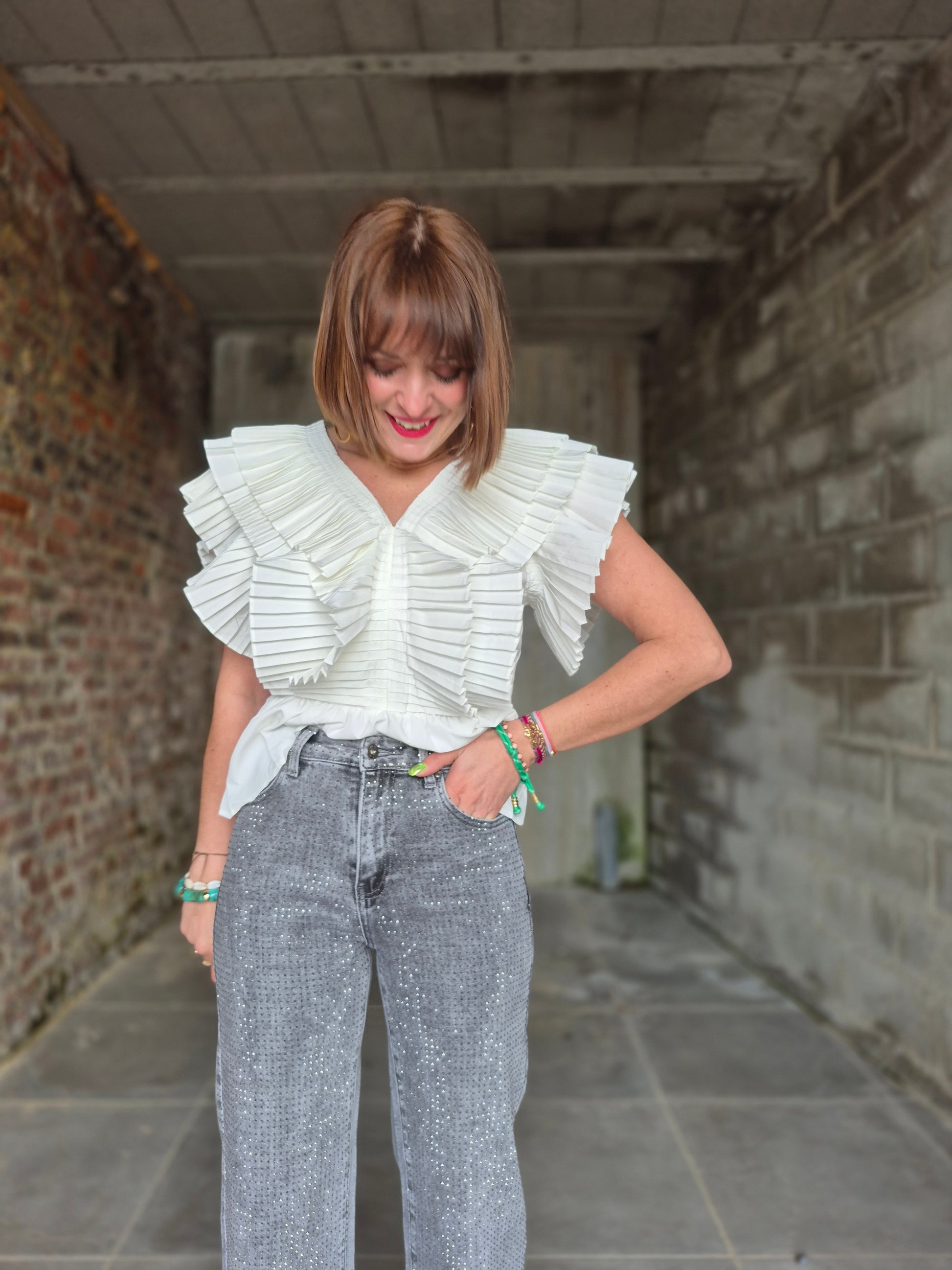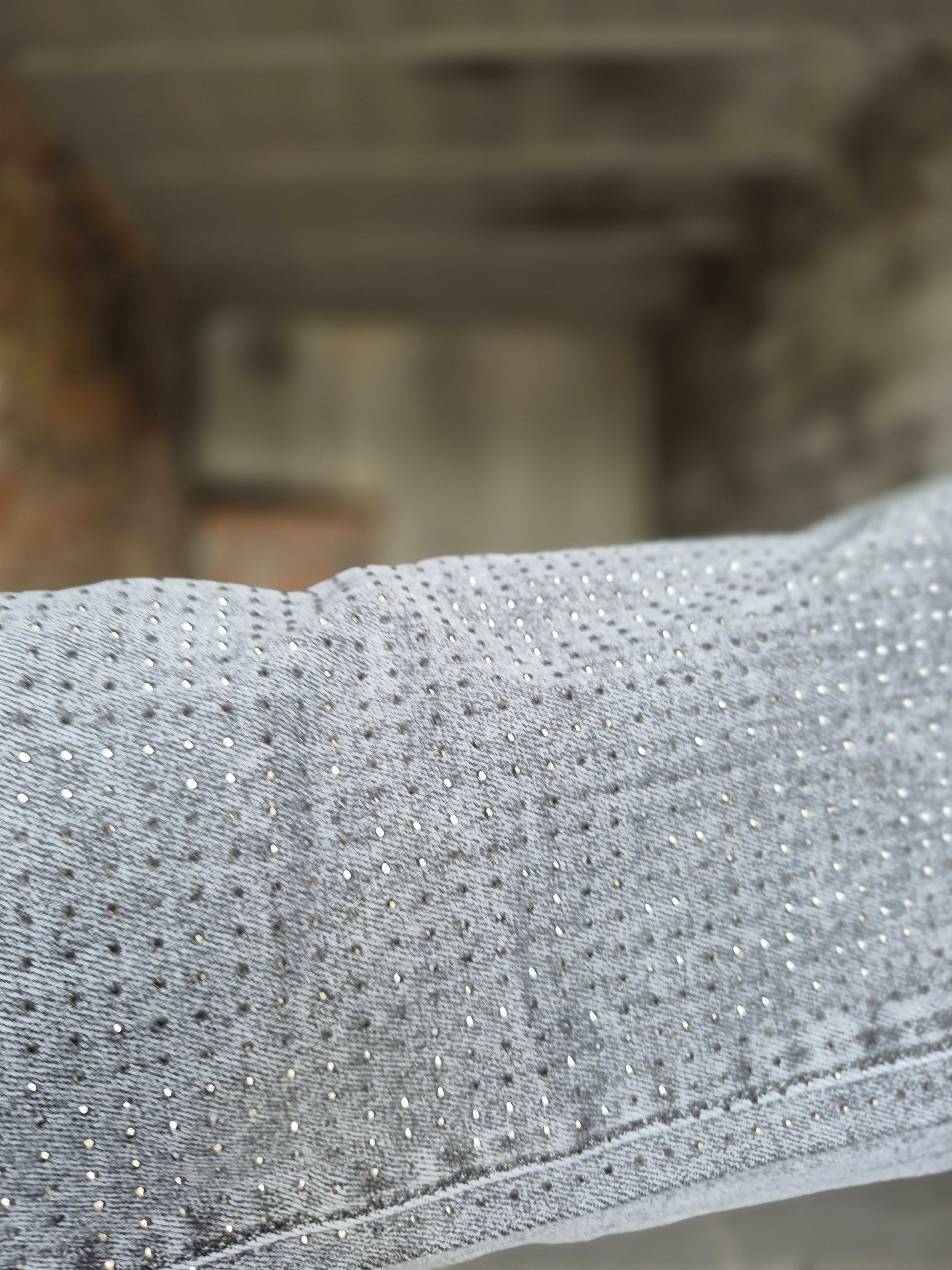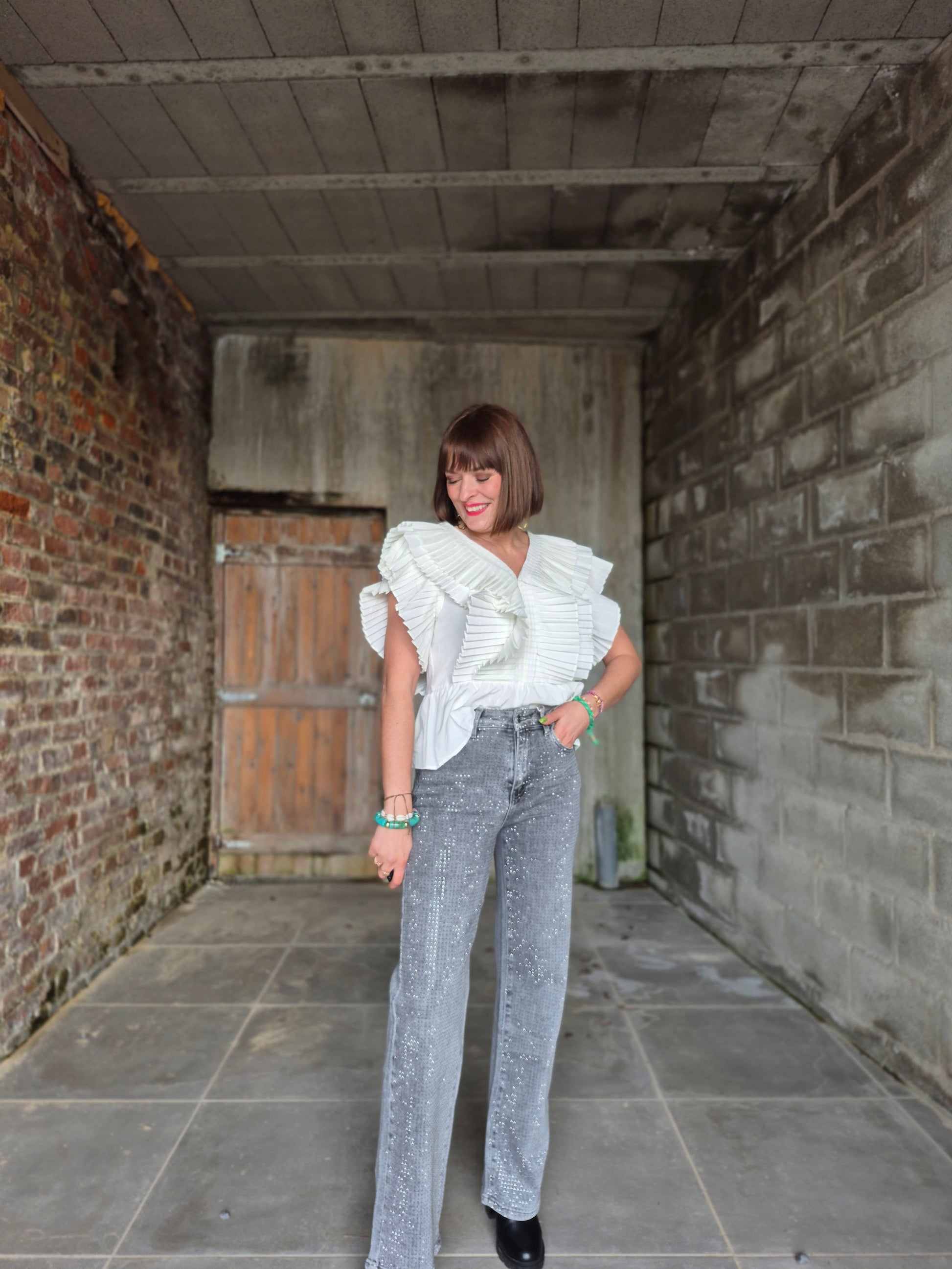 - Jean strech coupe droite / Face avant recouverte de strass argentés