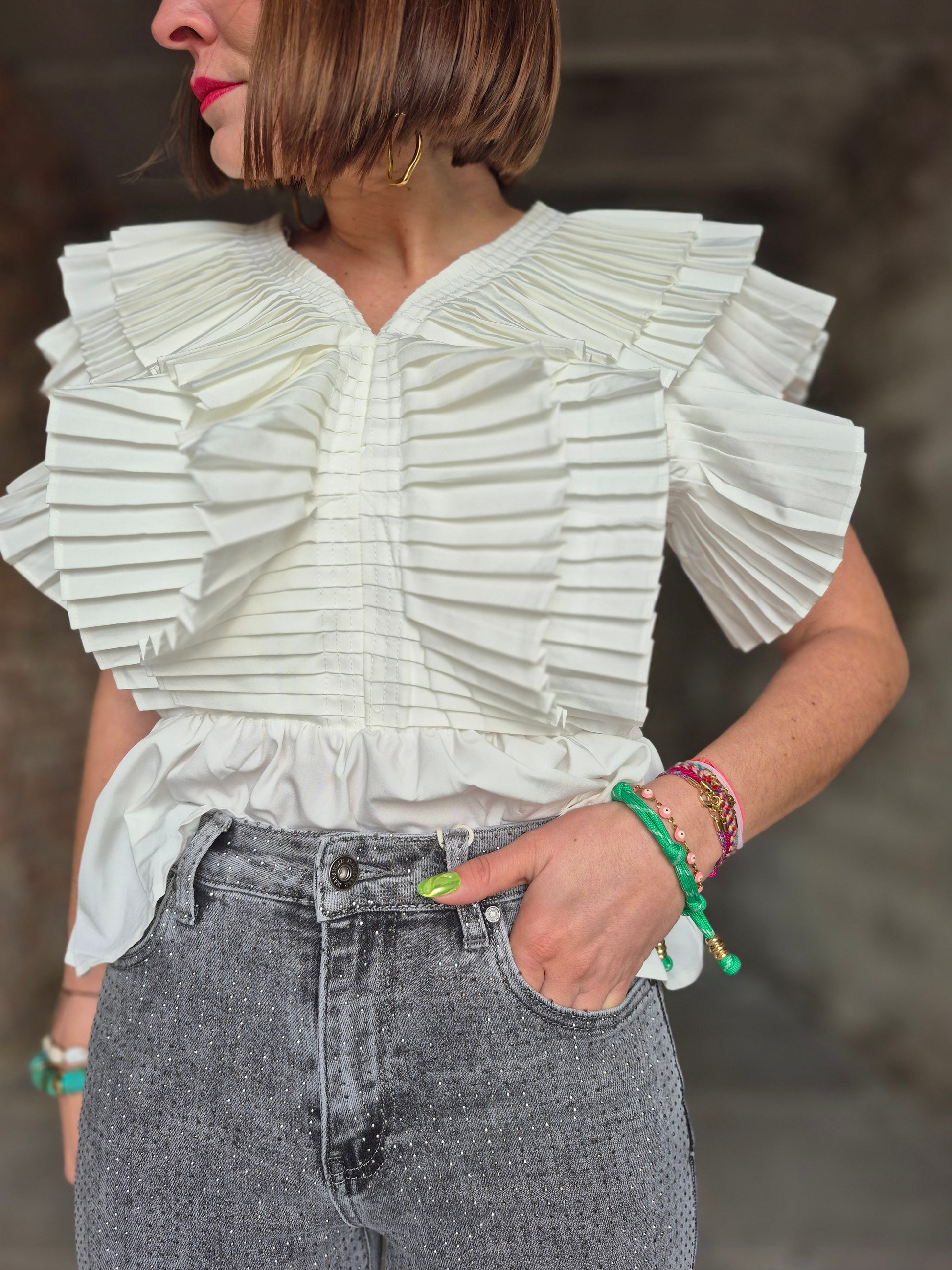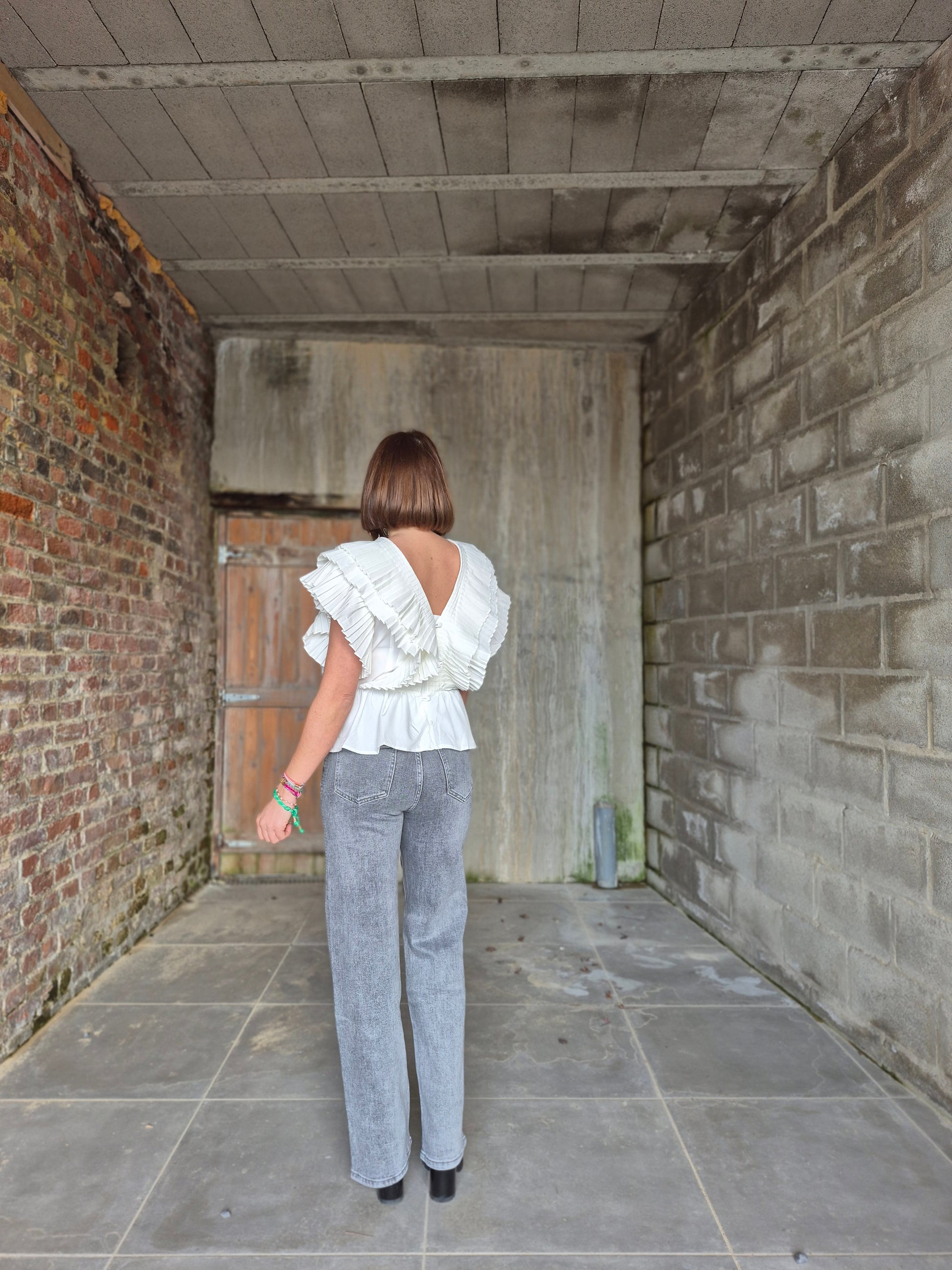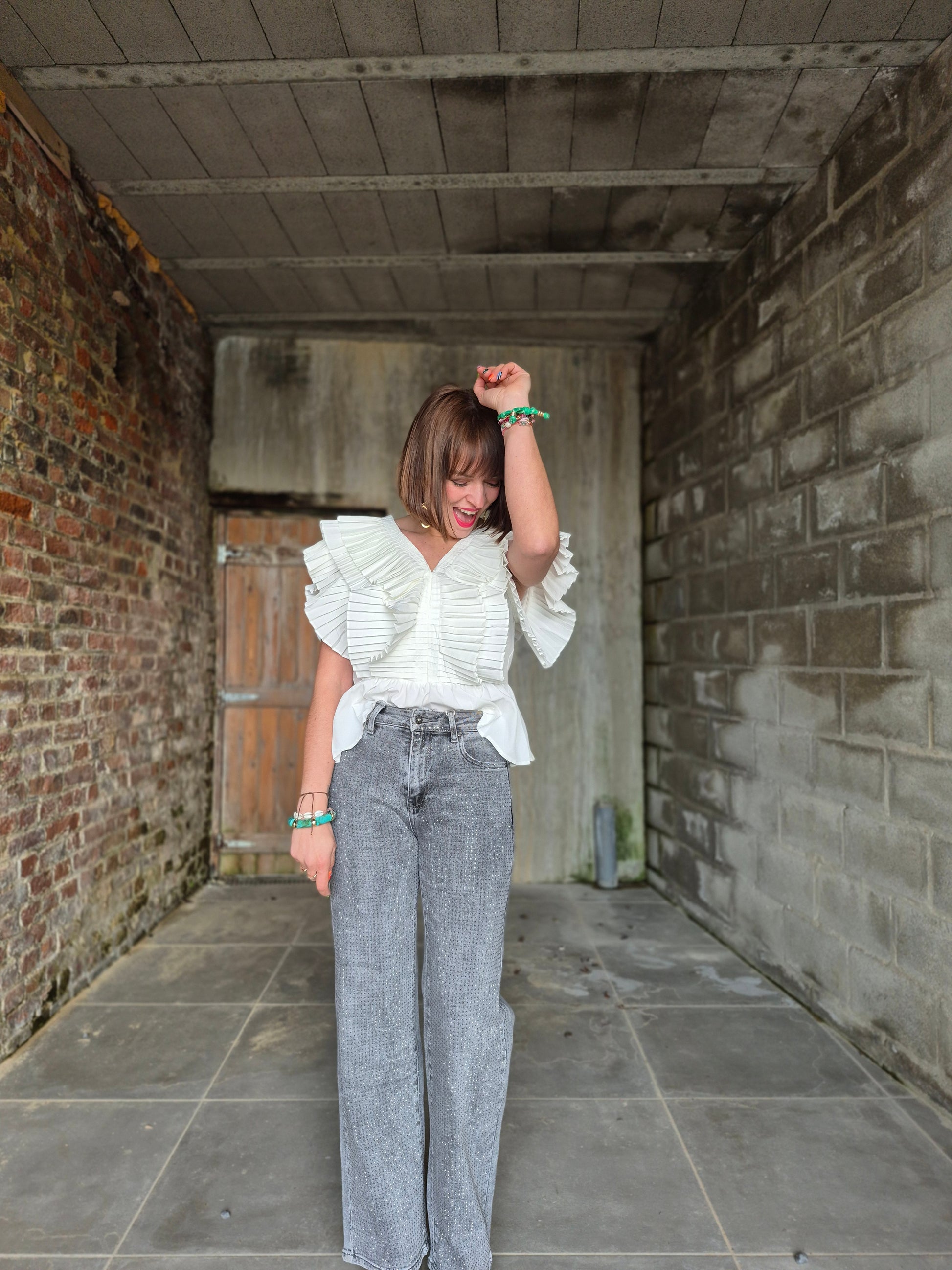 - Jean strech coupe droite / Face avant recouverte de strass argentés