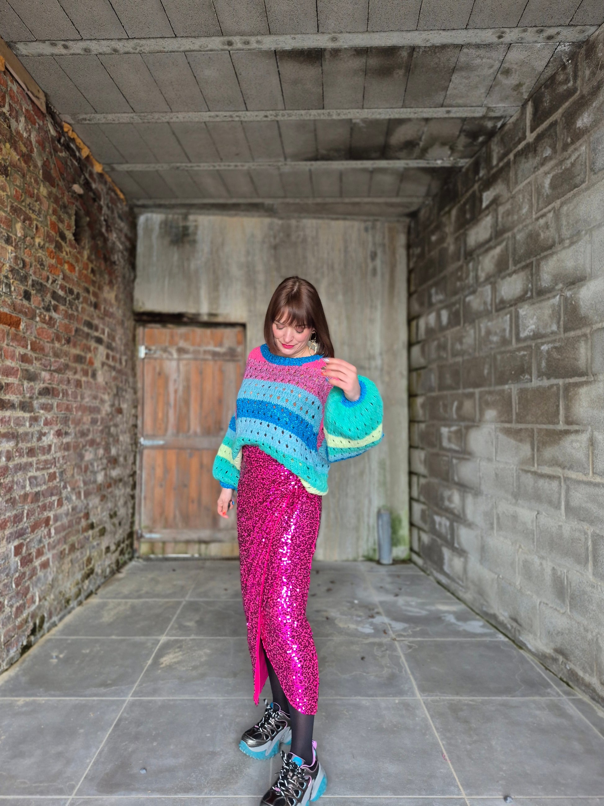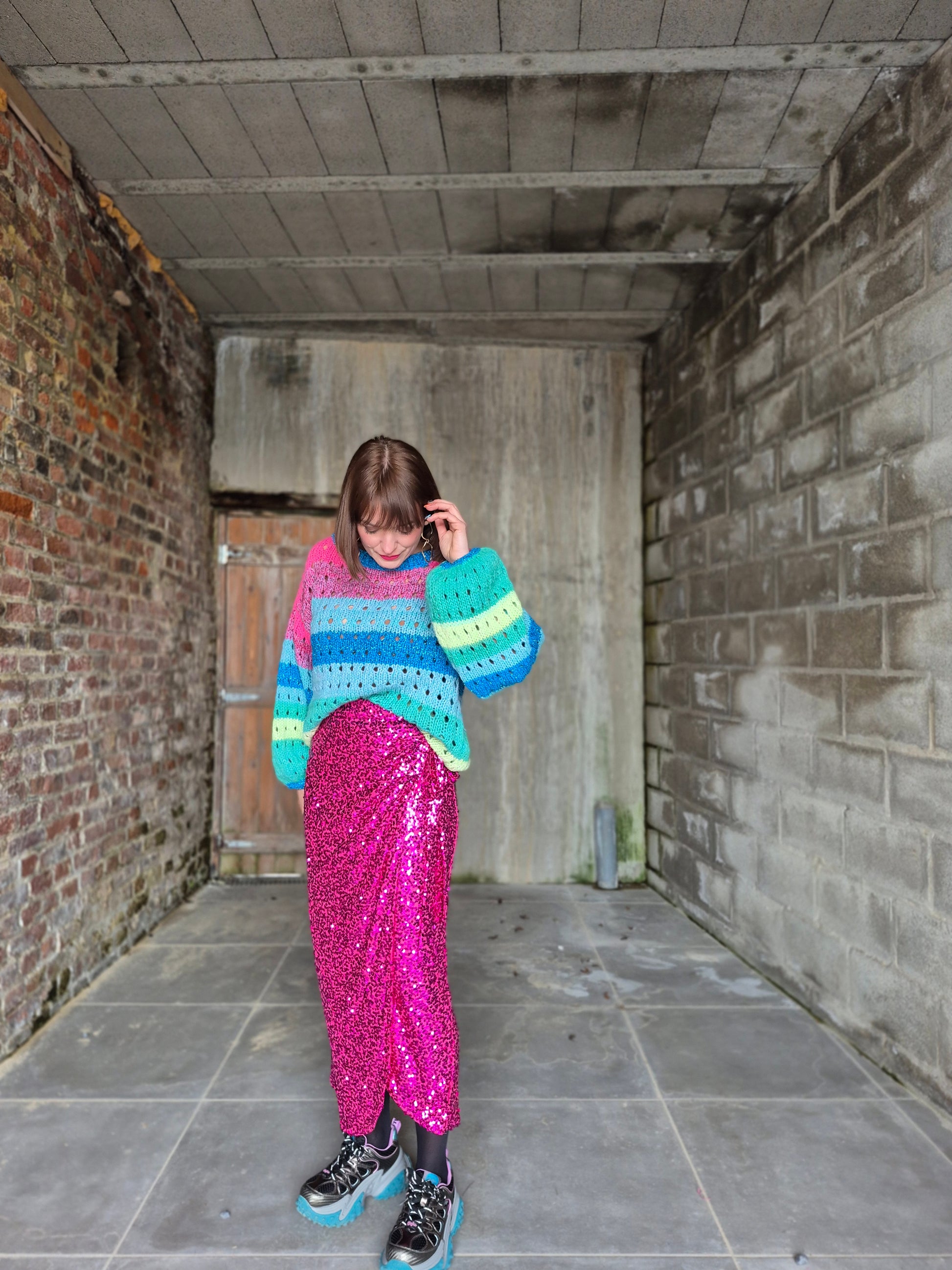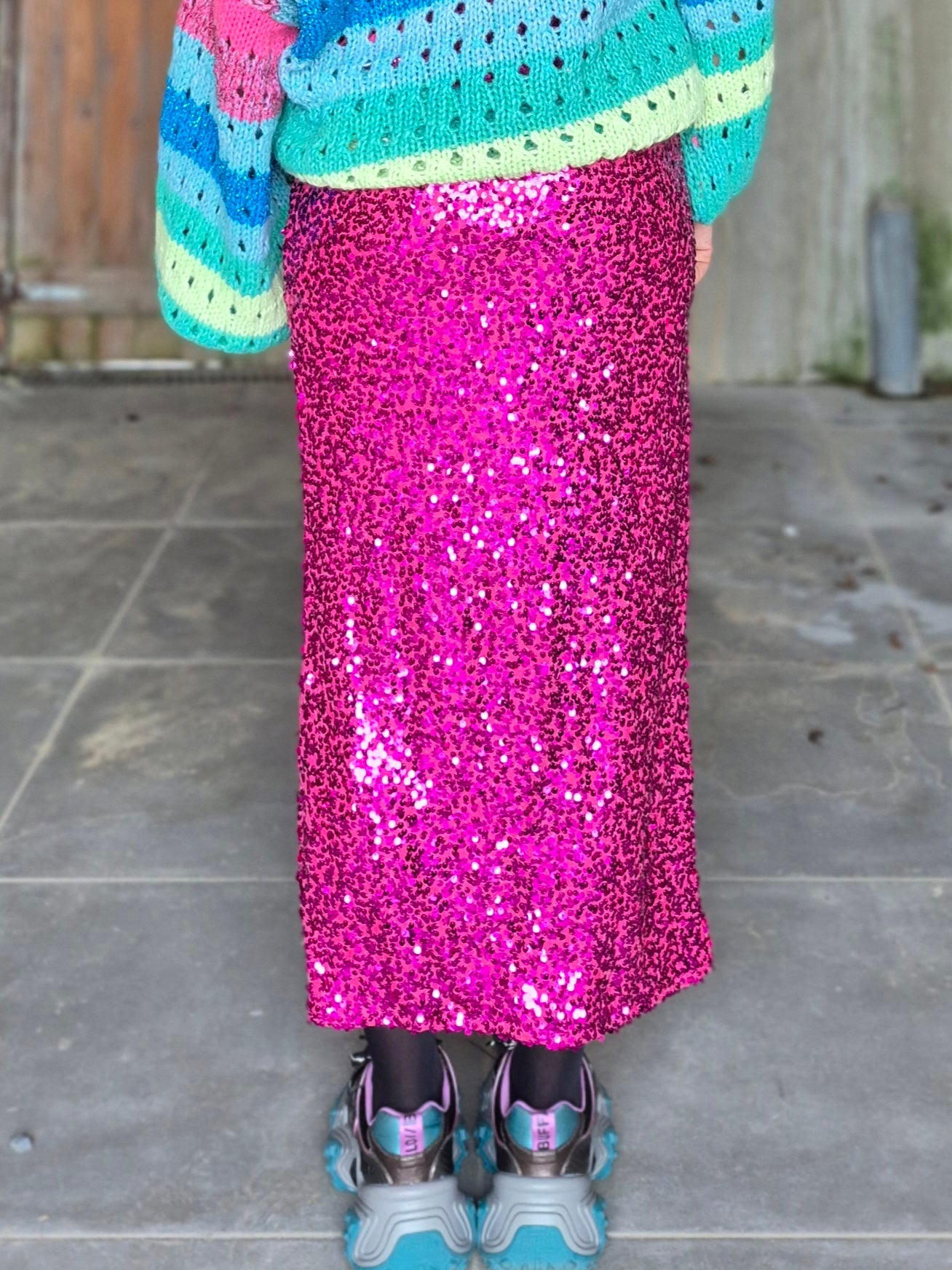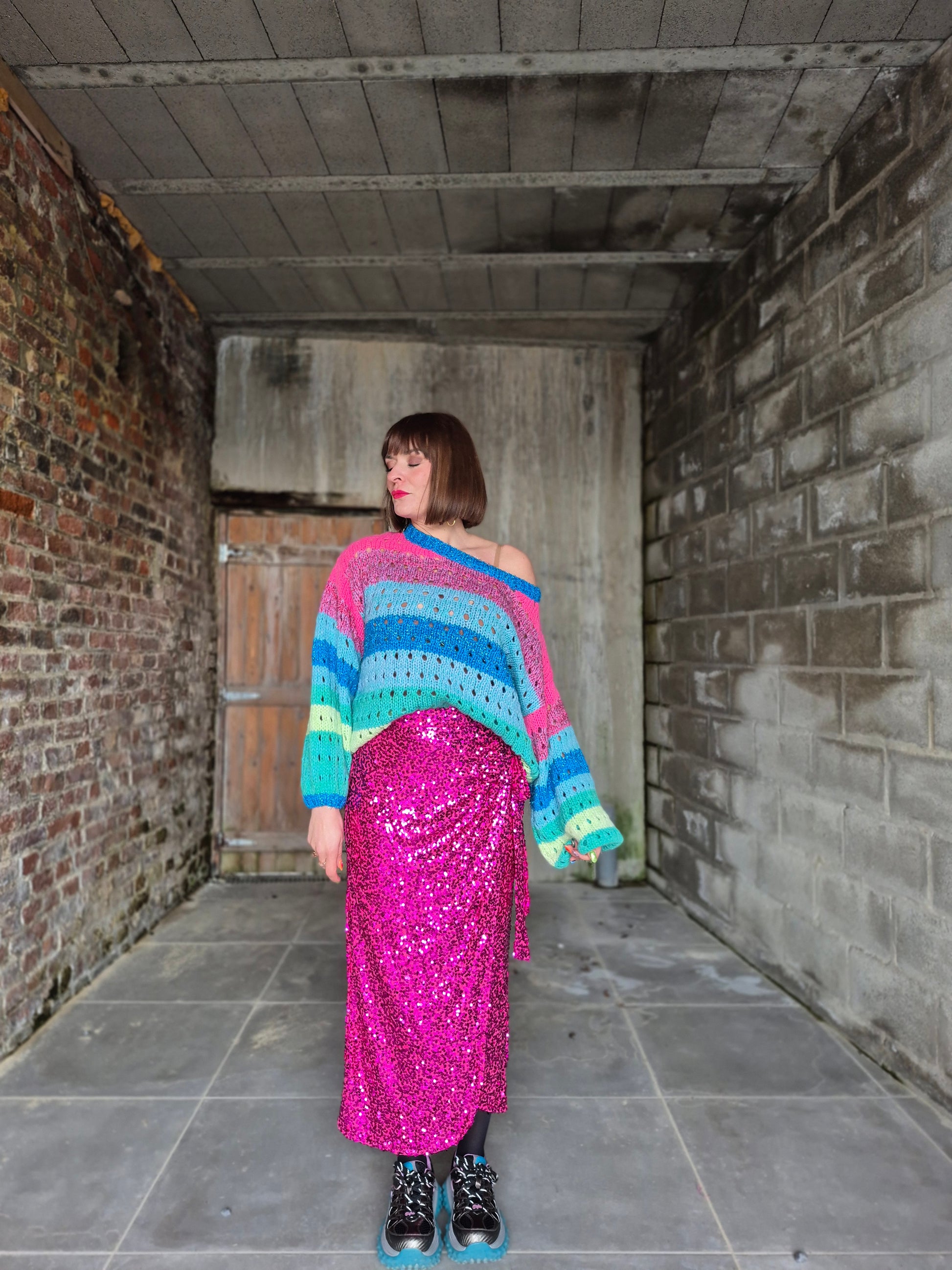 - Jupe élastiquée au look inspiré du modèle porte-feuille / Entièrement recouverte de sequins