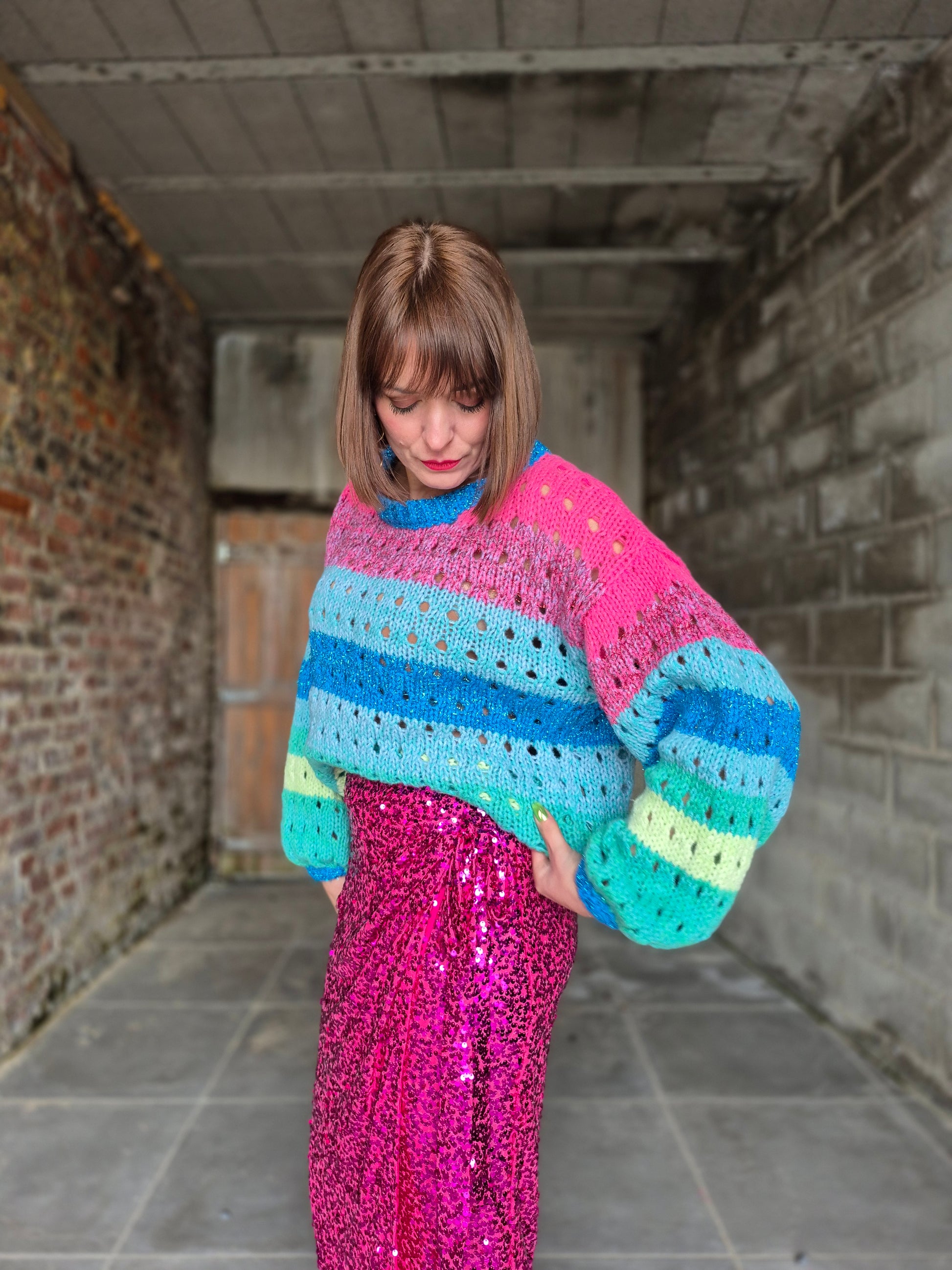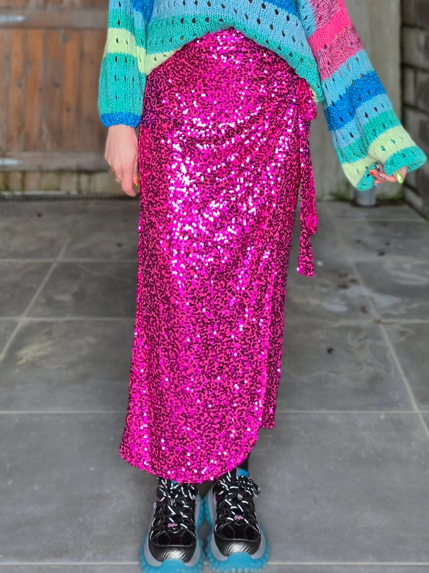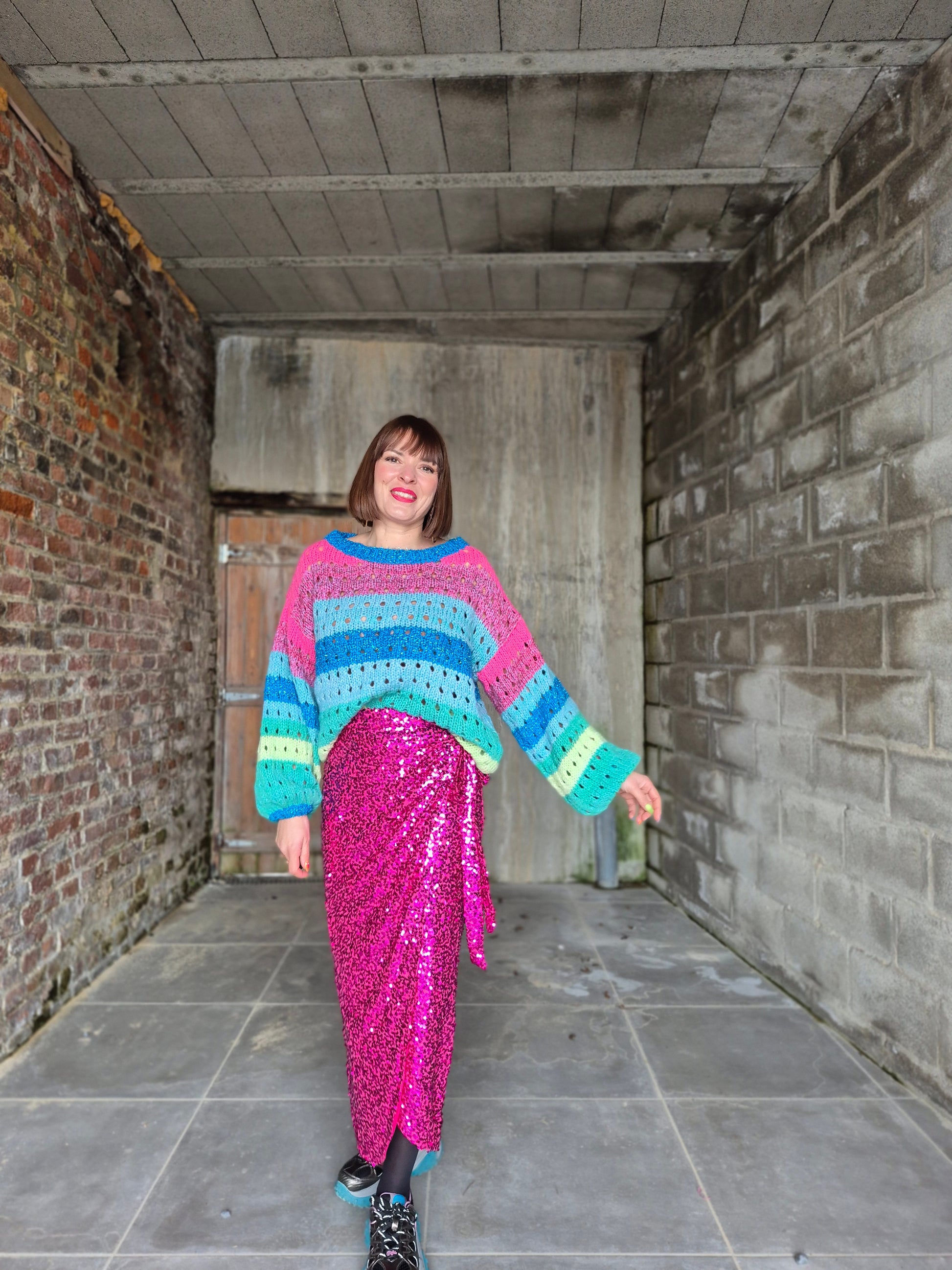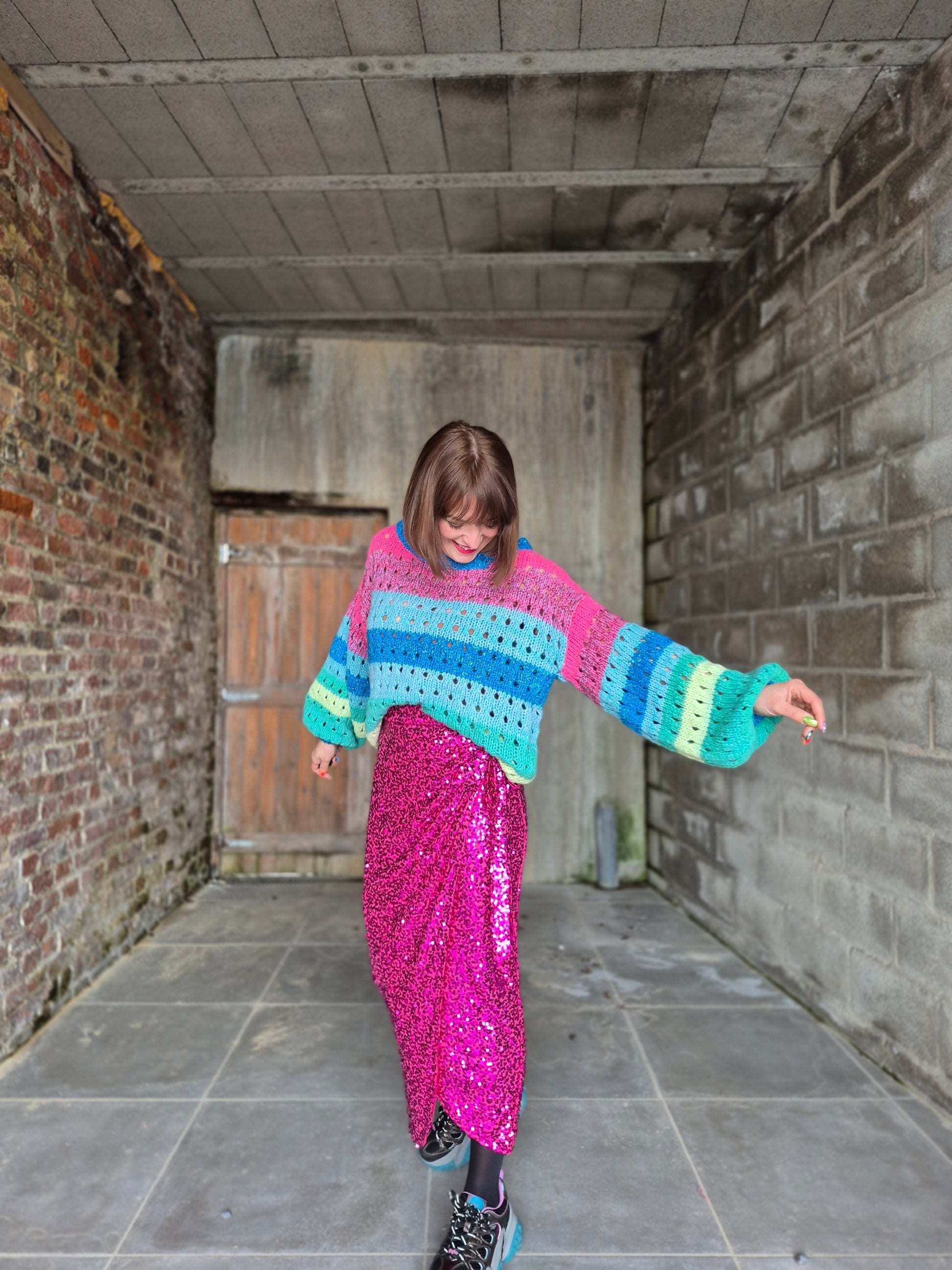 - Jupe élastiquée au look inspiré du modèle porte-feuille / Entièrement recouverte de sequins