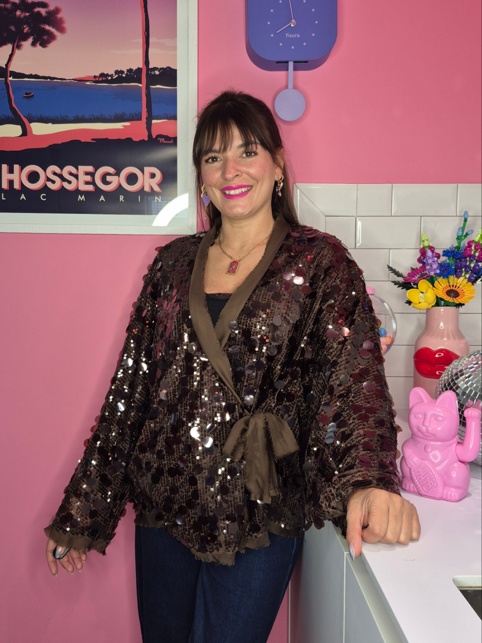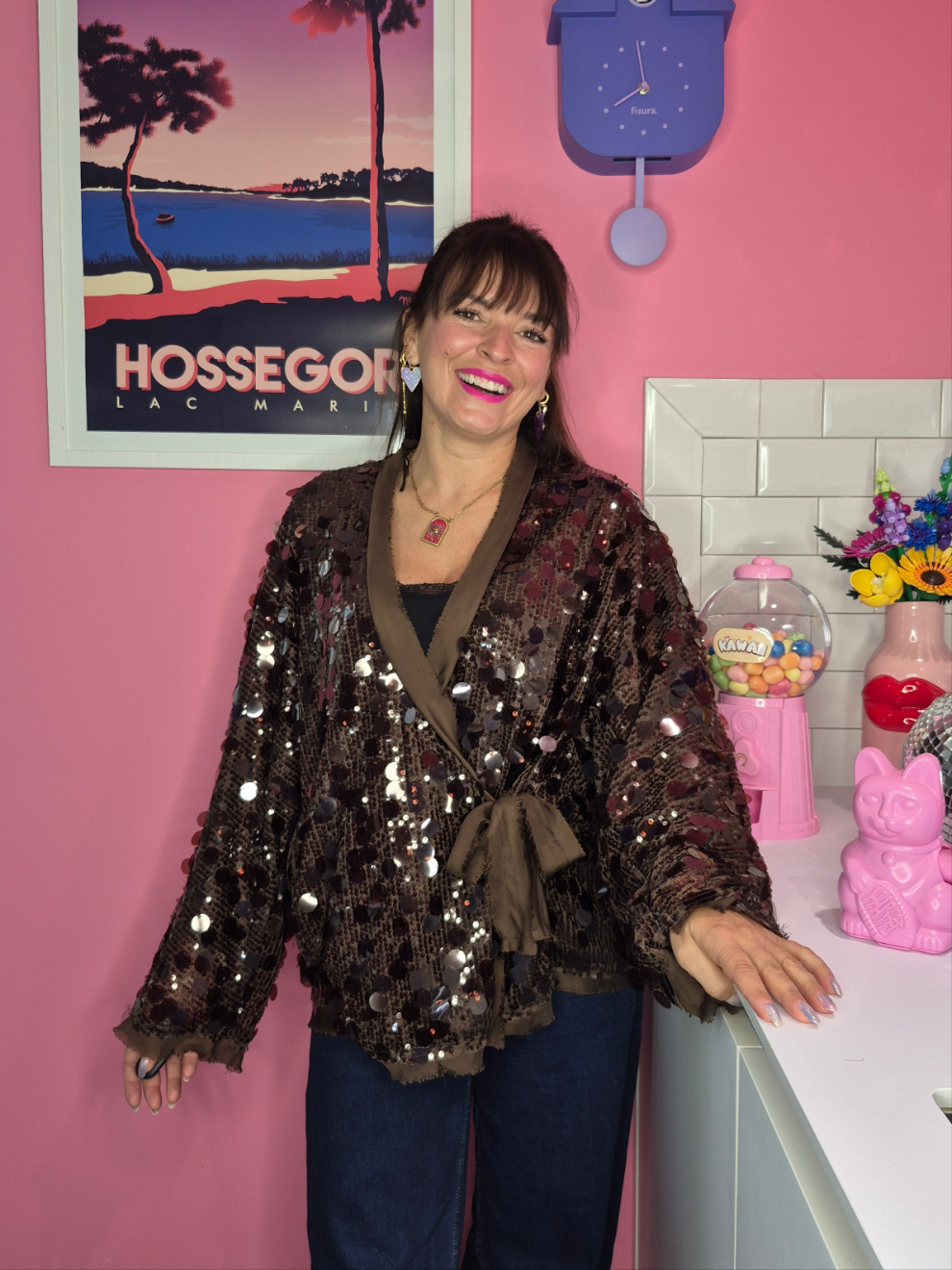 - Kimono en sequins avec rubans à nouer