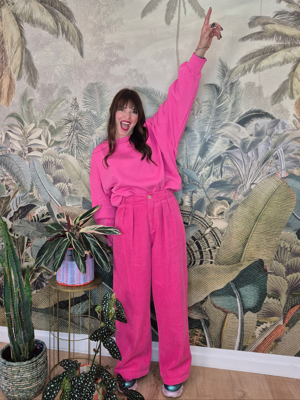 - Pantalon à pinces en velours côtelé / Jambes droites / Taille haute