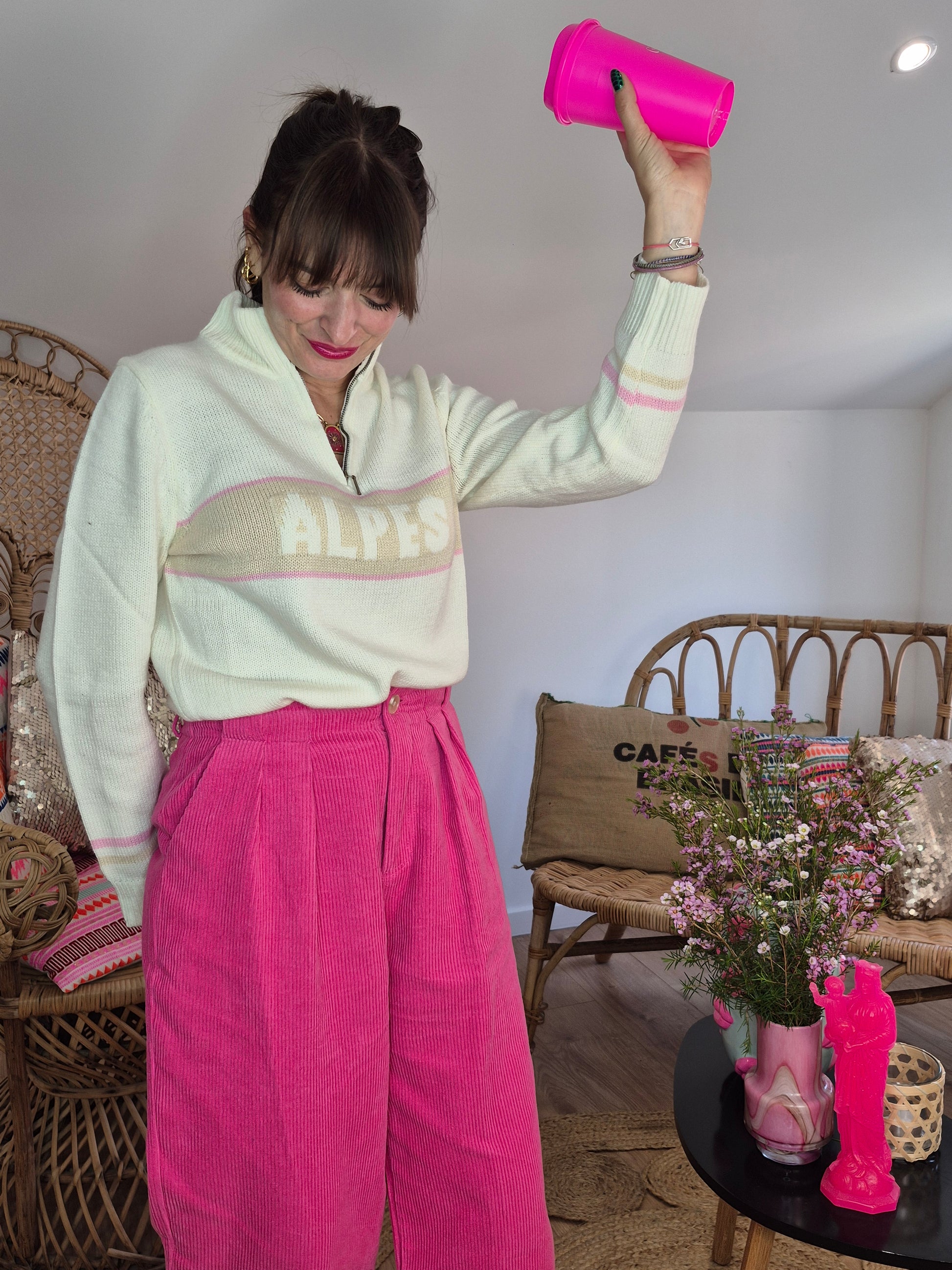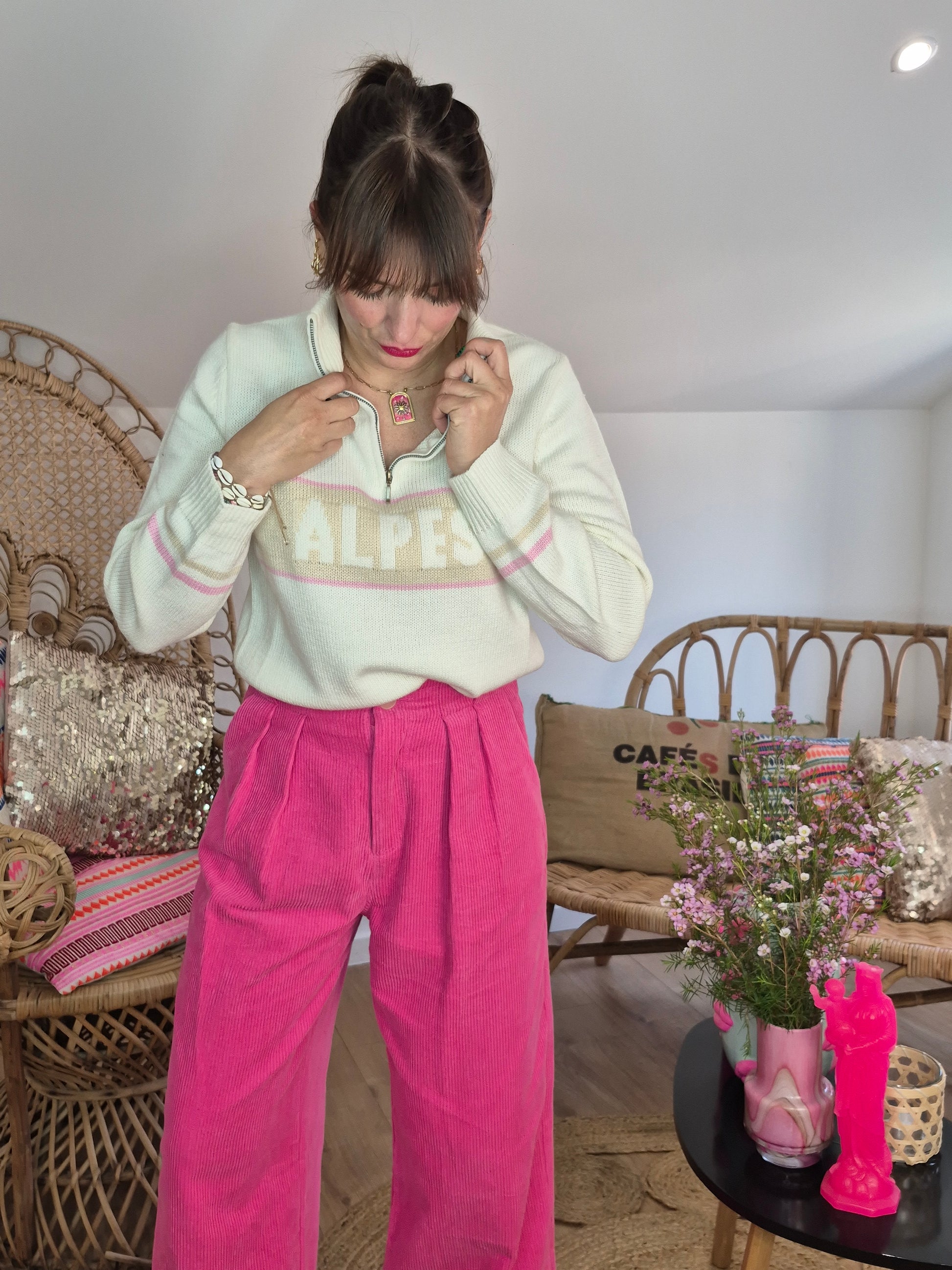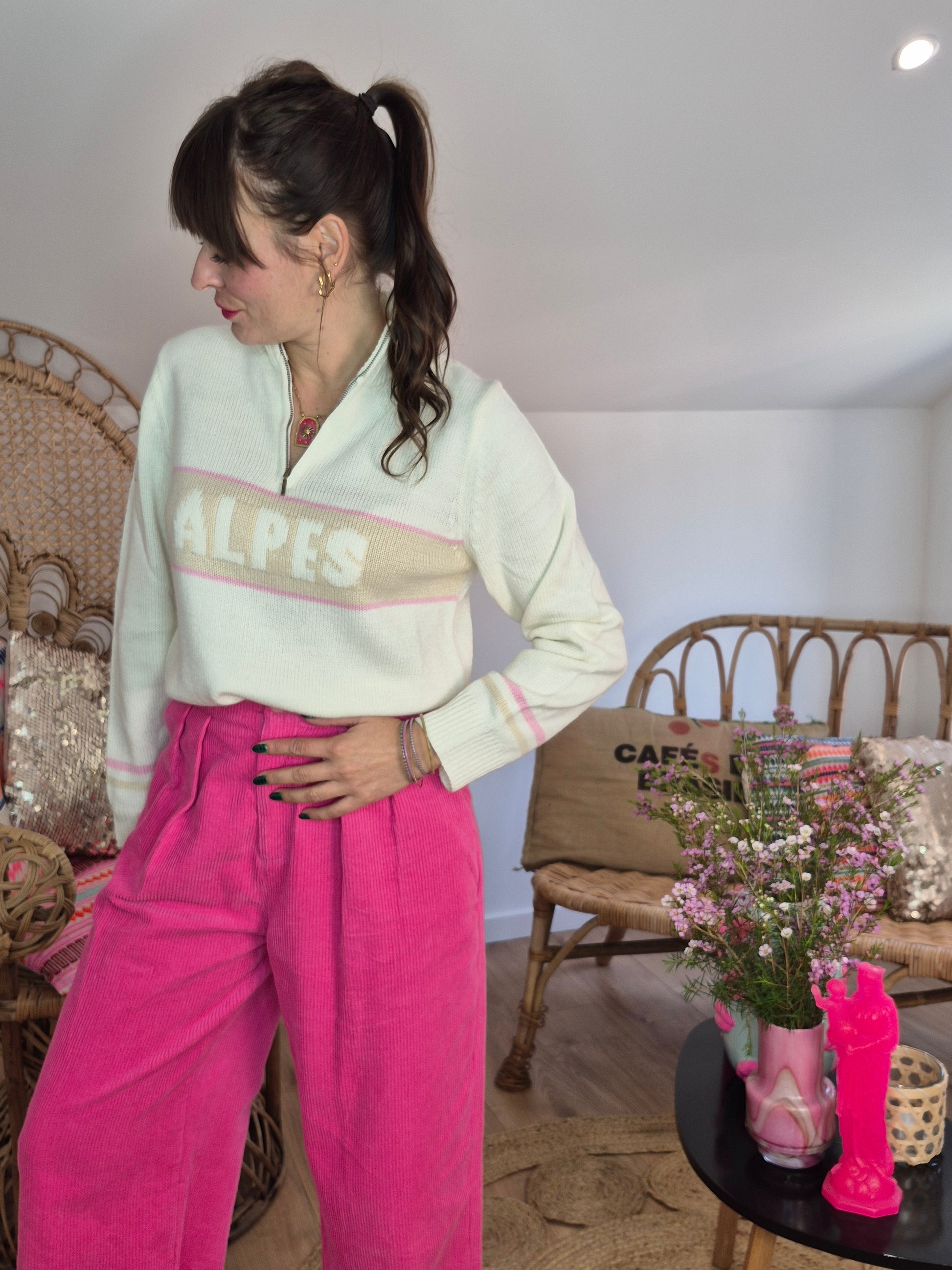 - Pull en maille / Col à tirette / Manches et bas légèrement resserrés / Inscription Alpes