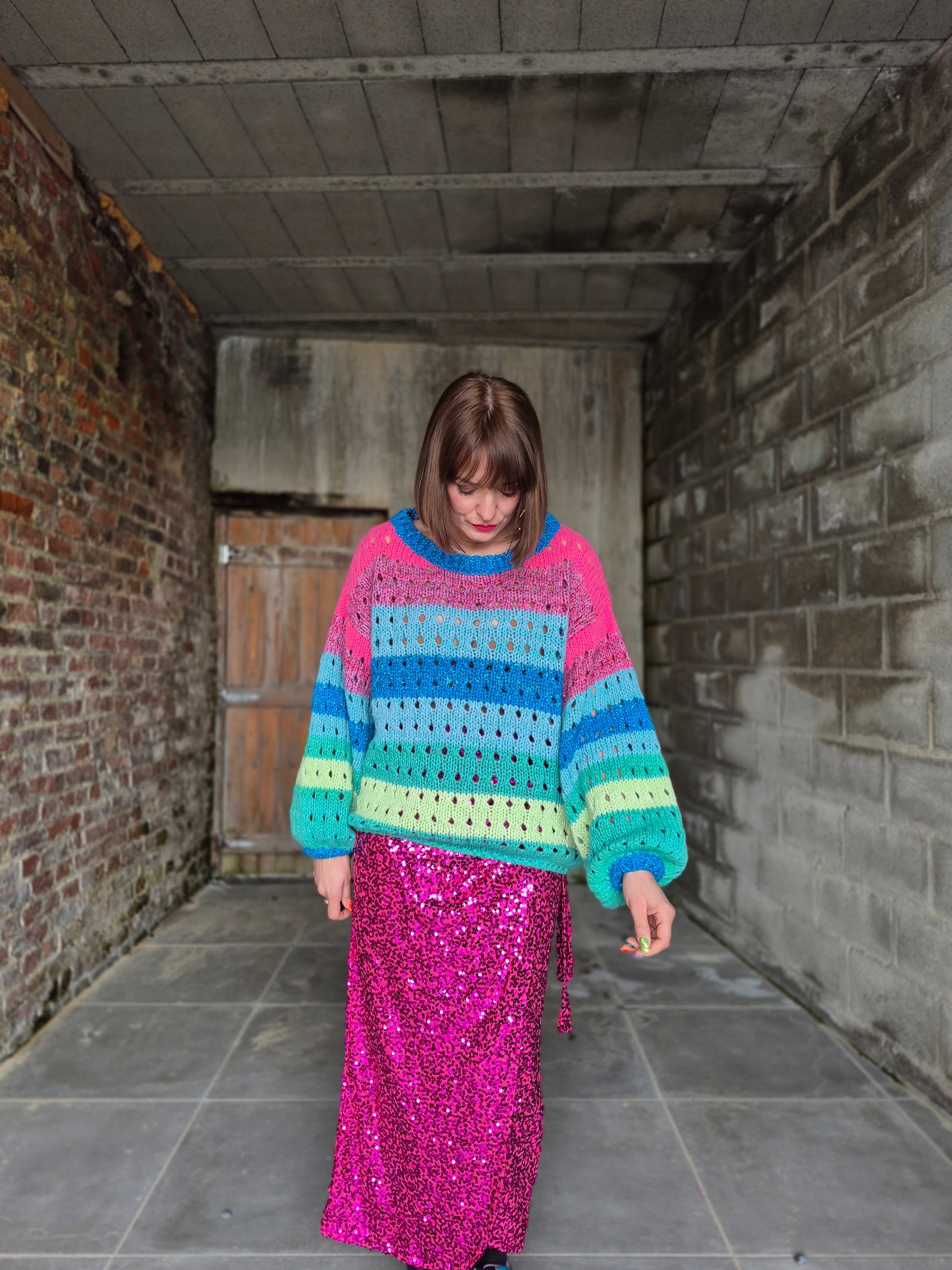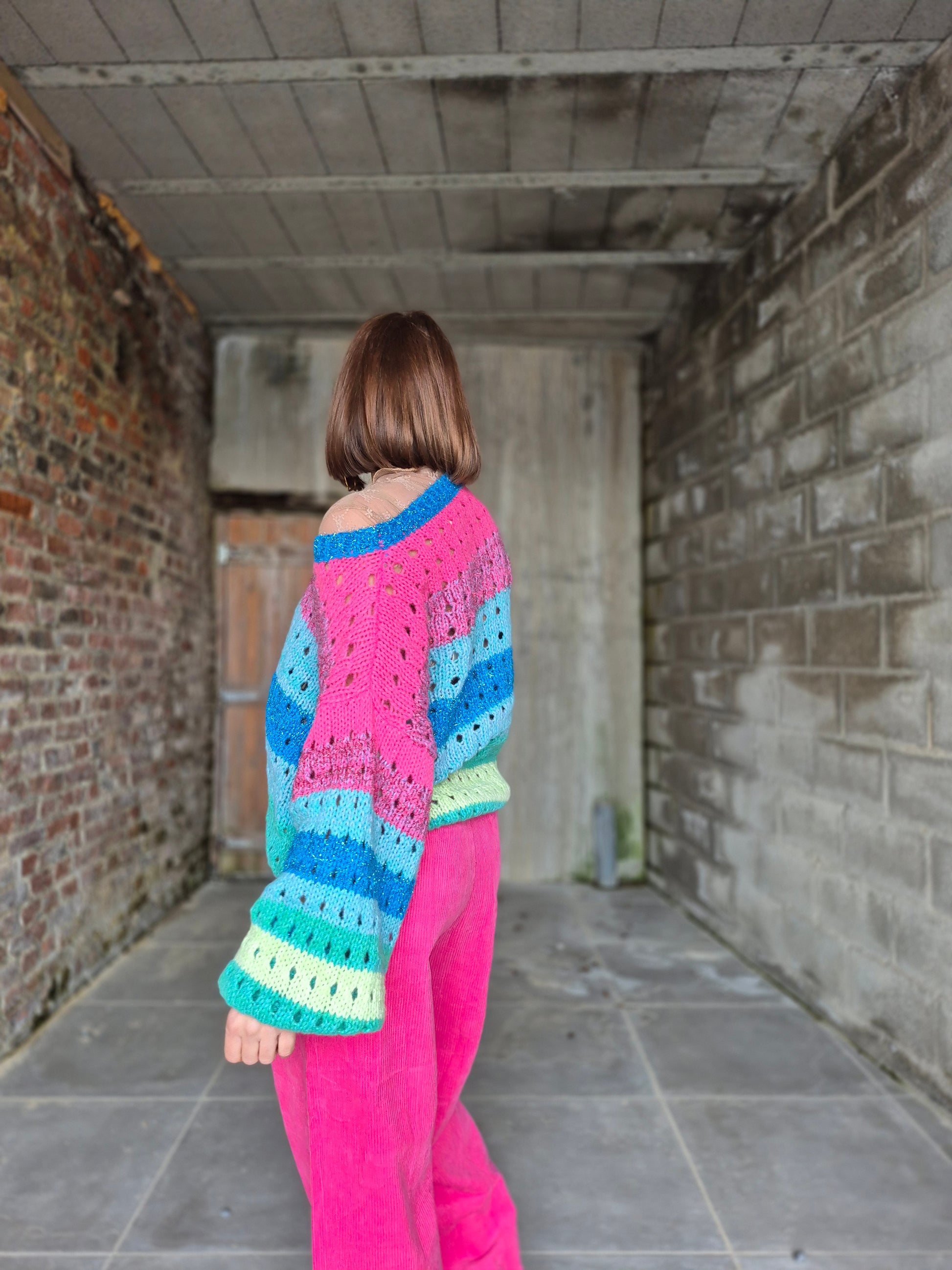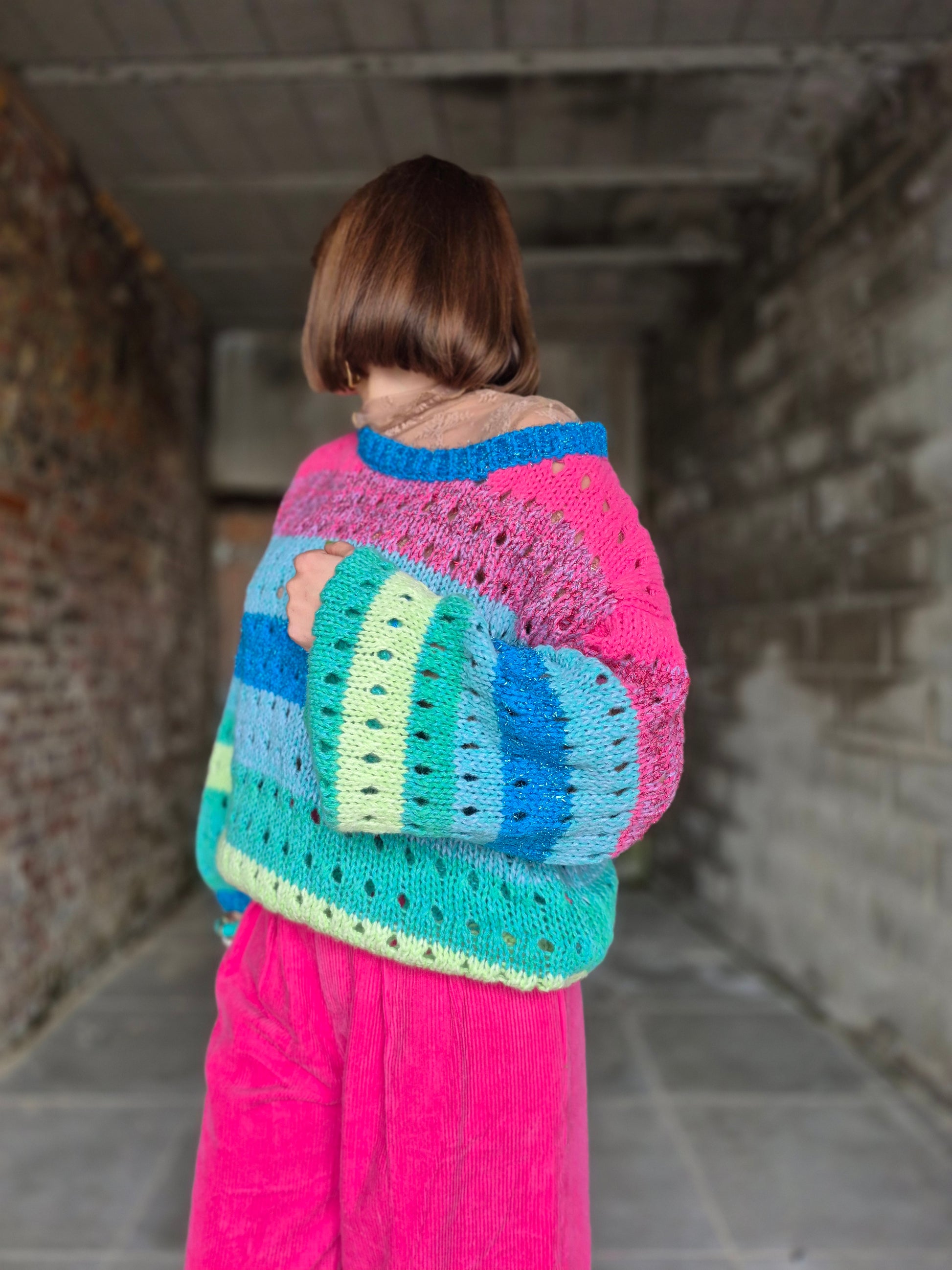 - Pull en grosses mailles ajourées et lurex