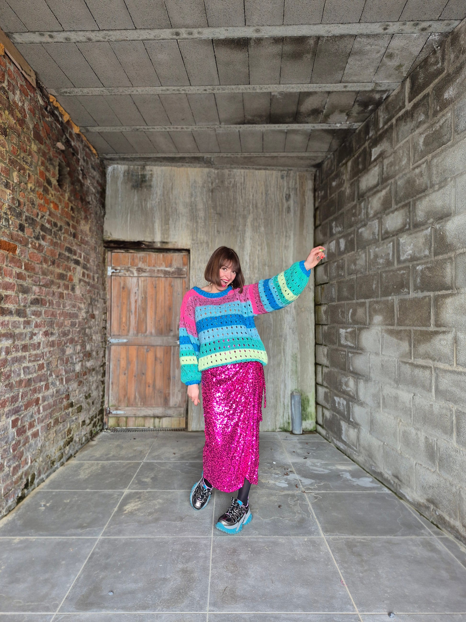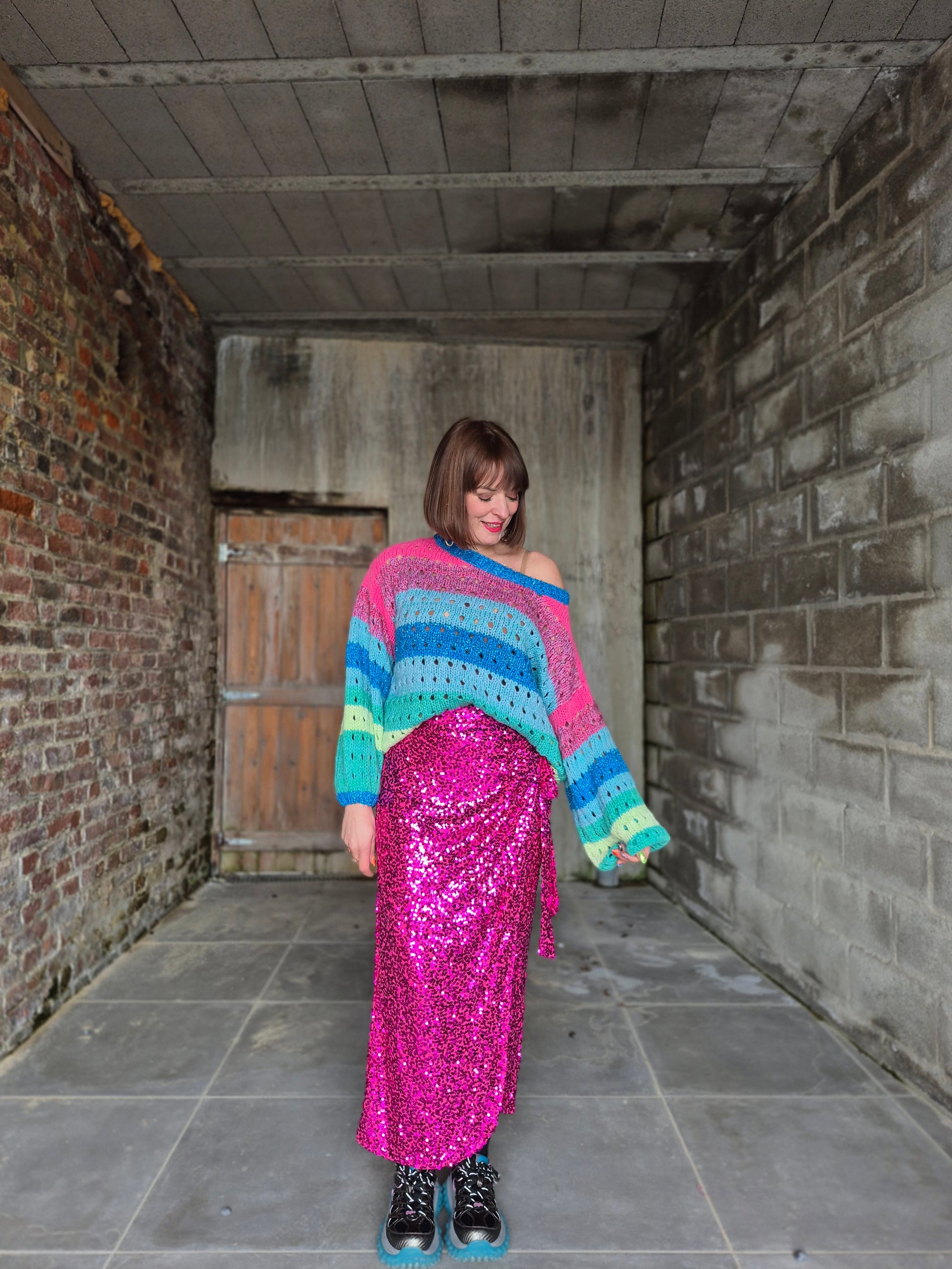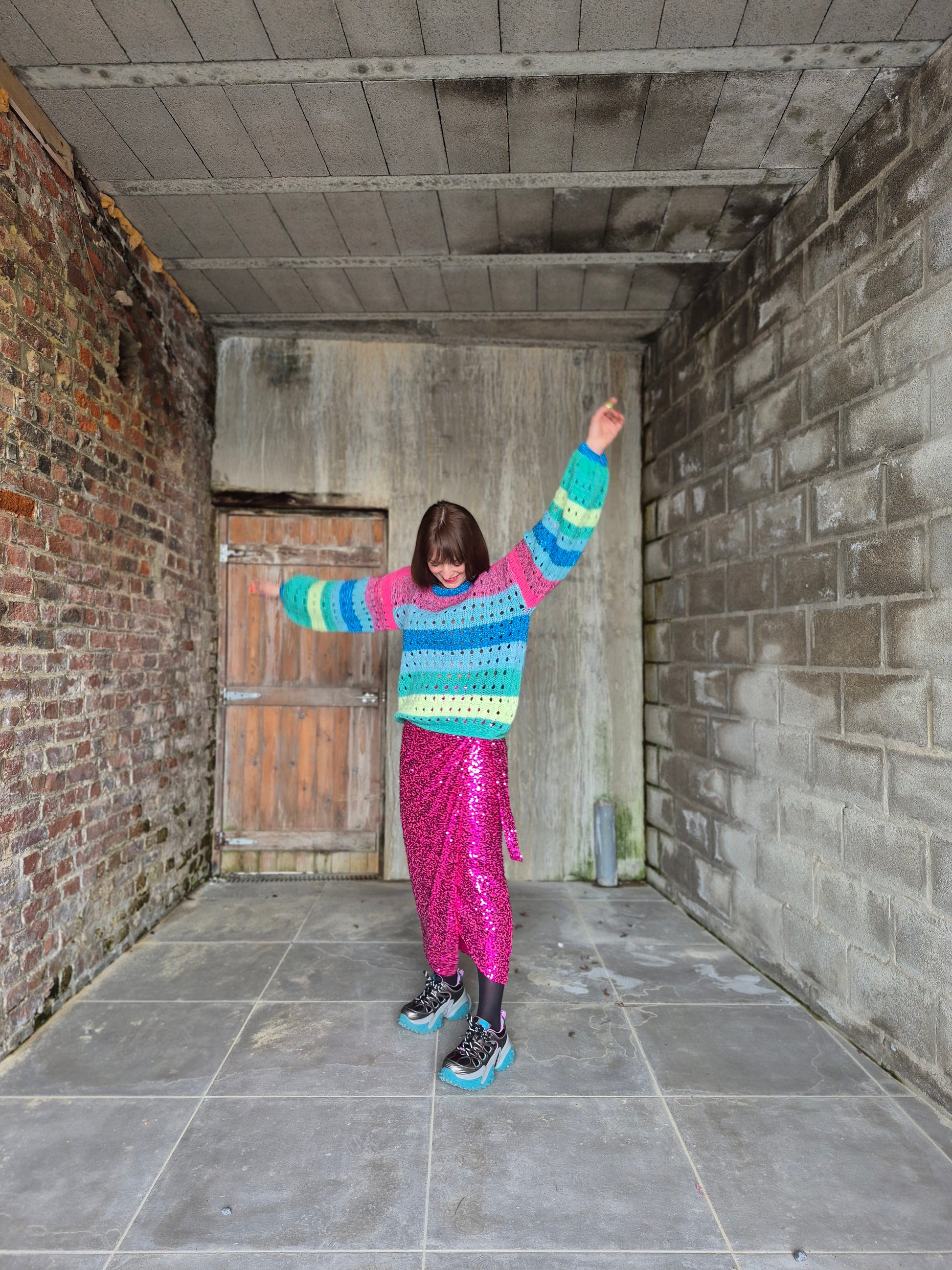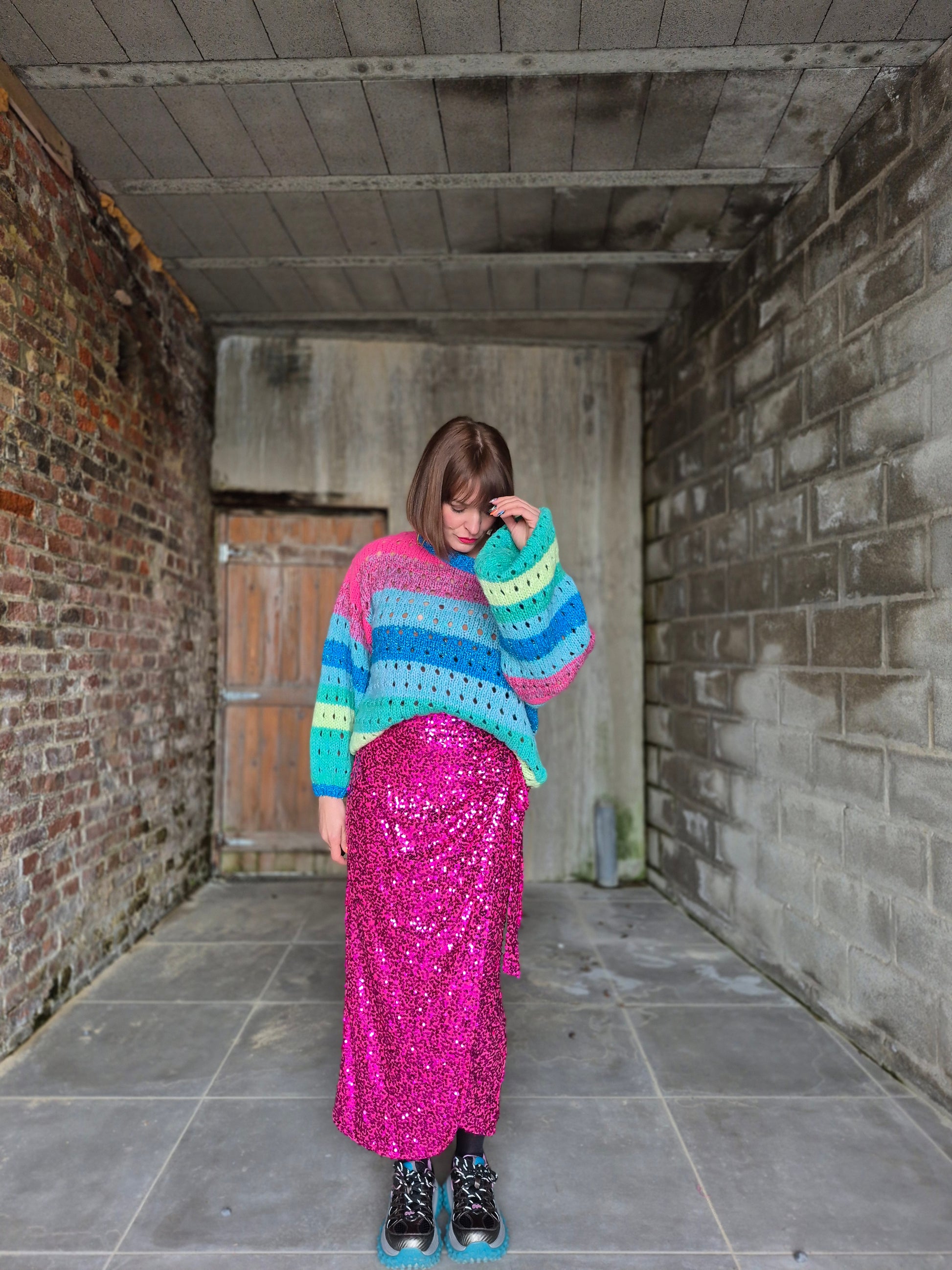 - Pull en grosses mailles ajourées et lurex