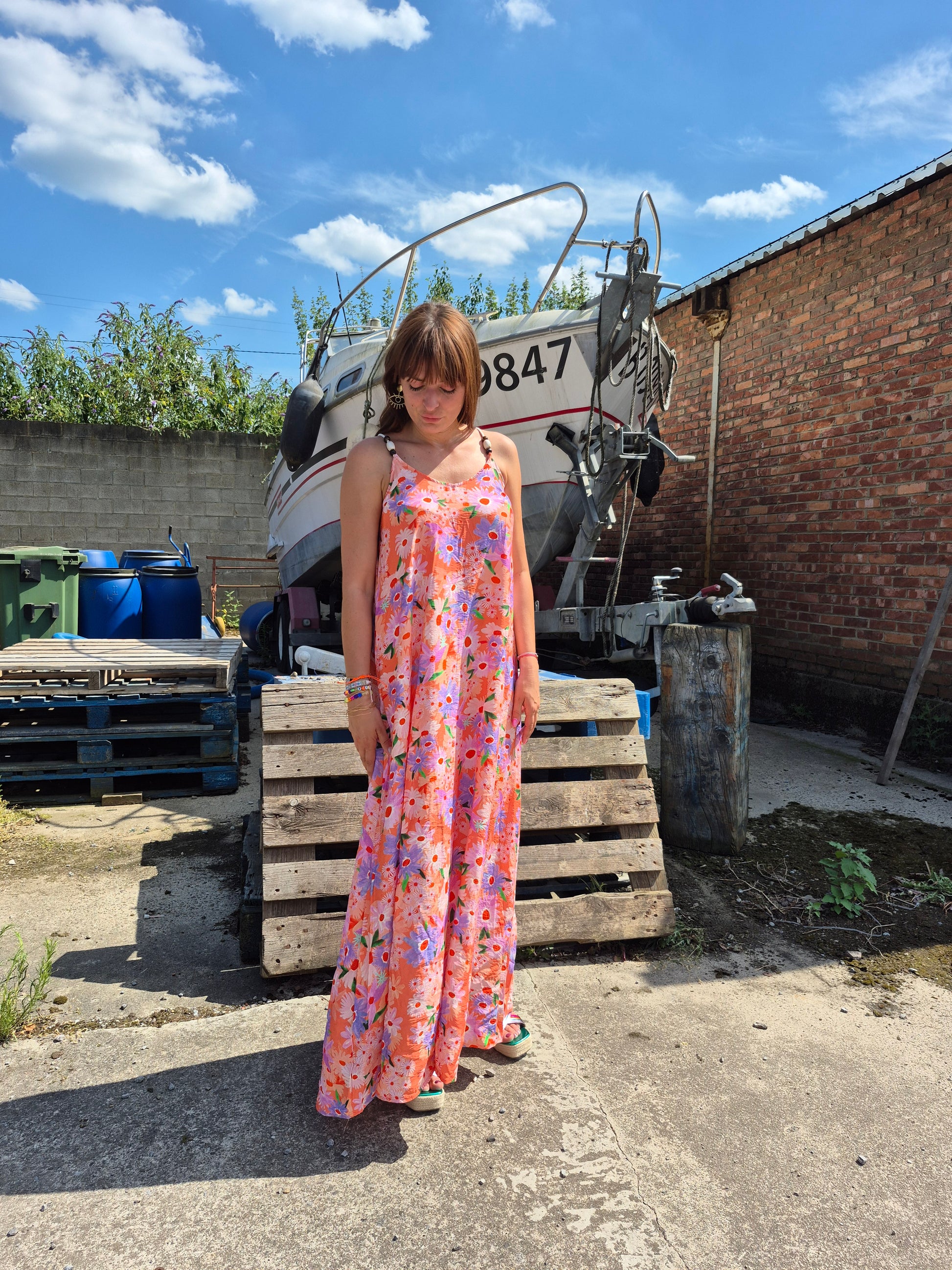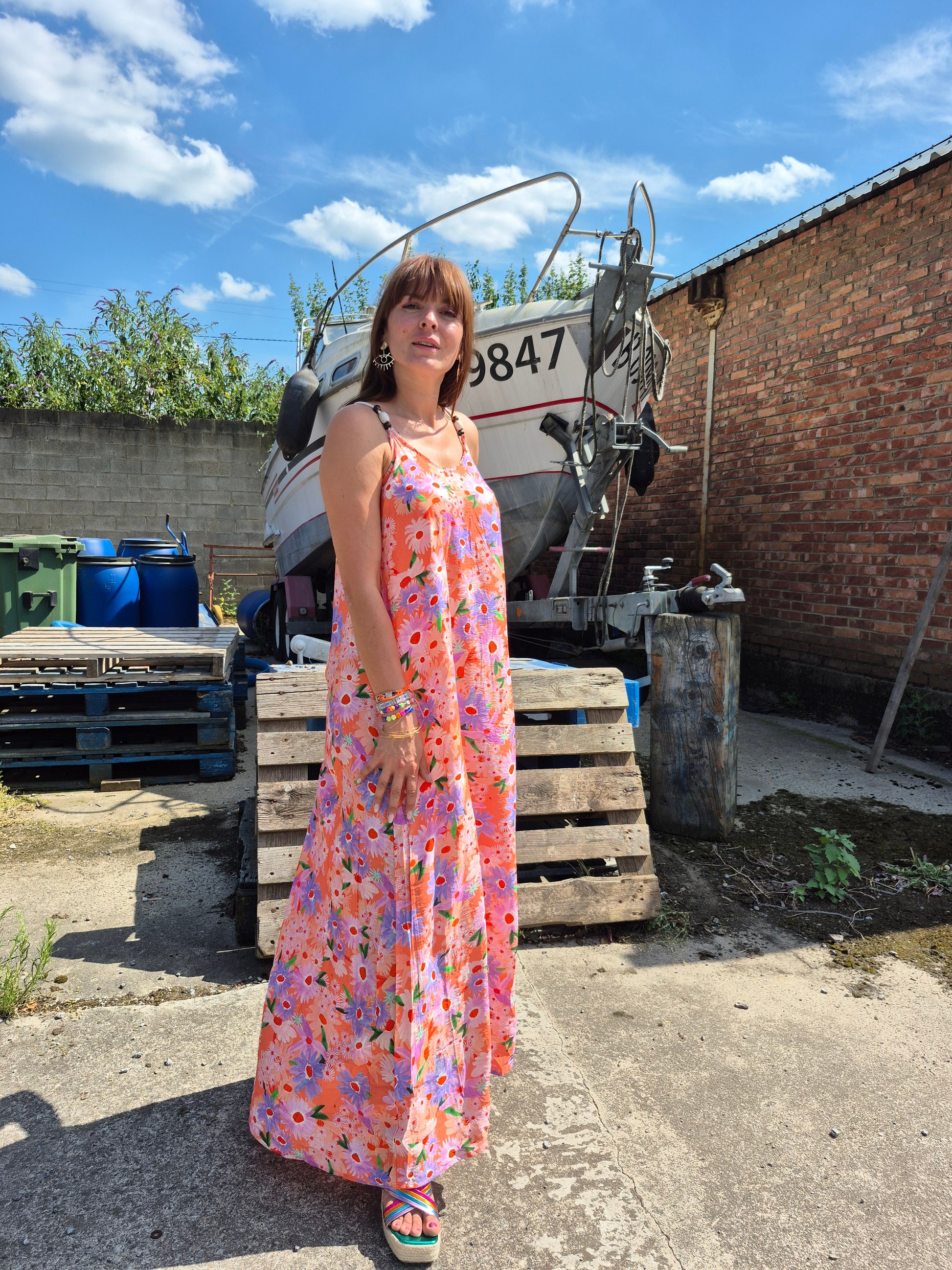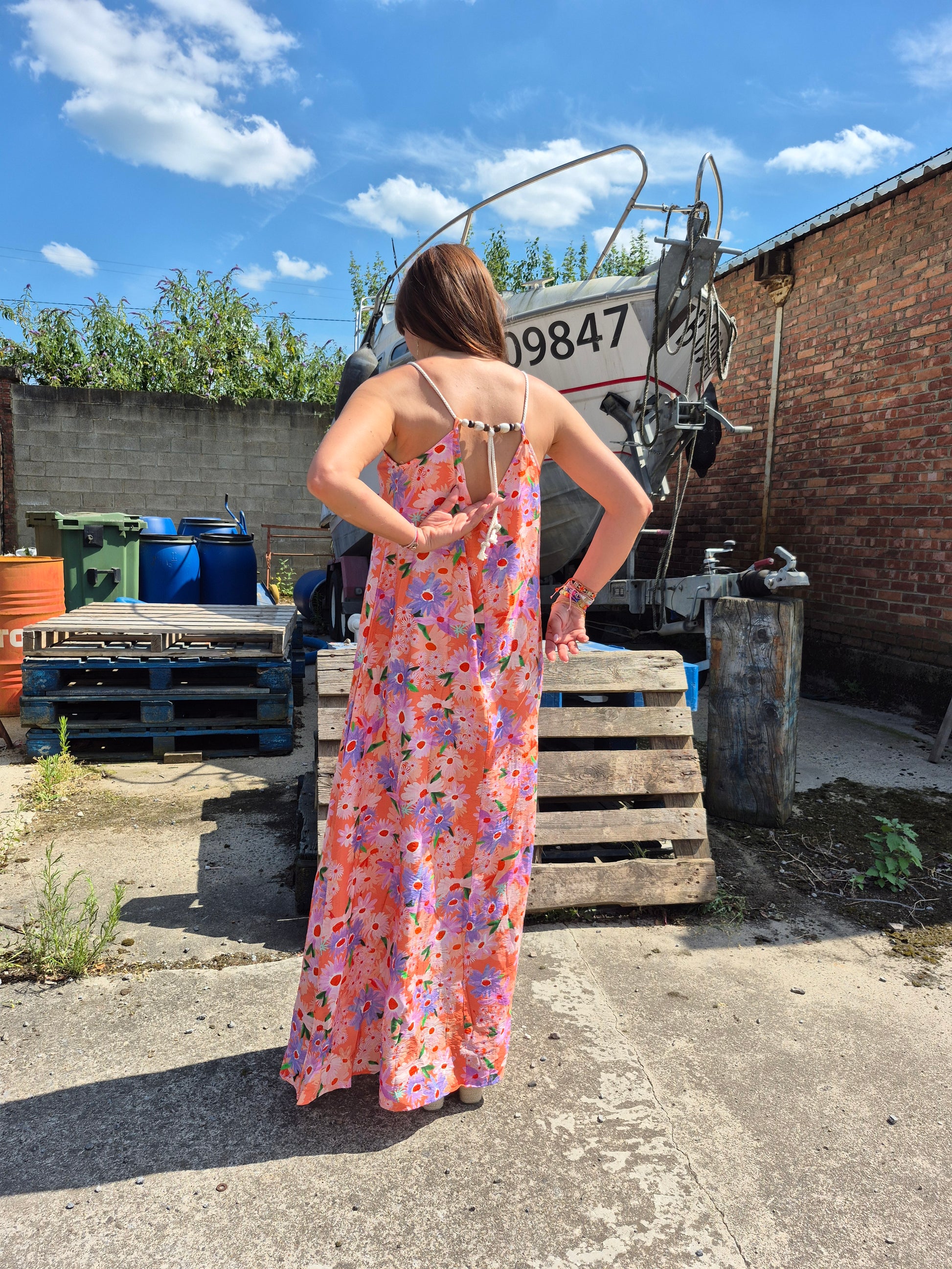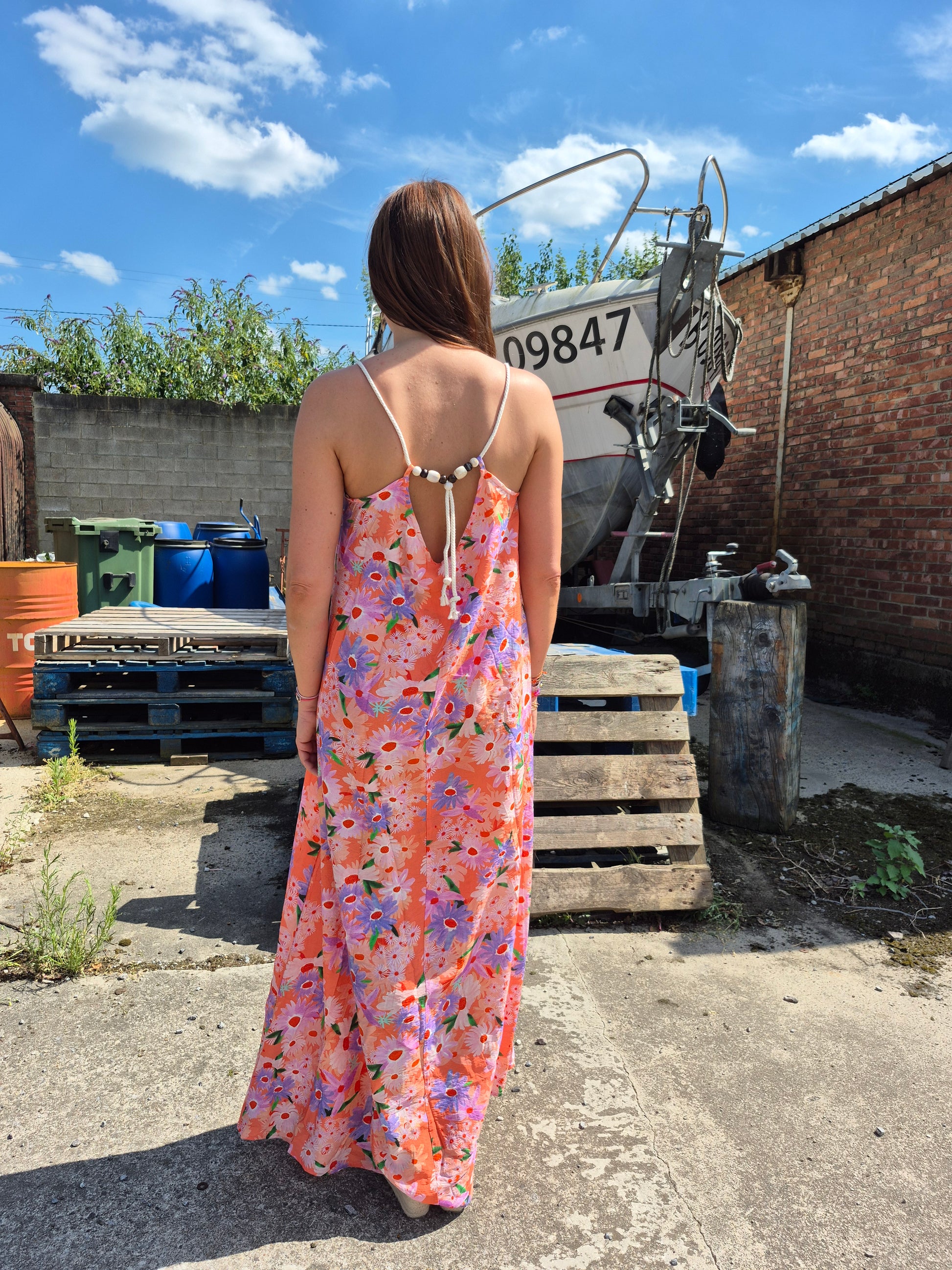 - Robe longue / Fines bretelles en corde douce ajustables et perlées