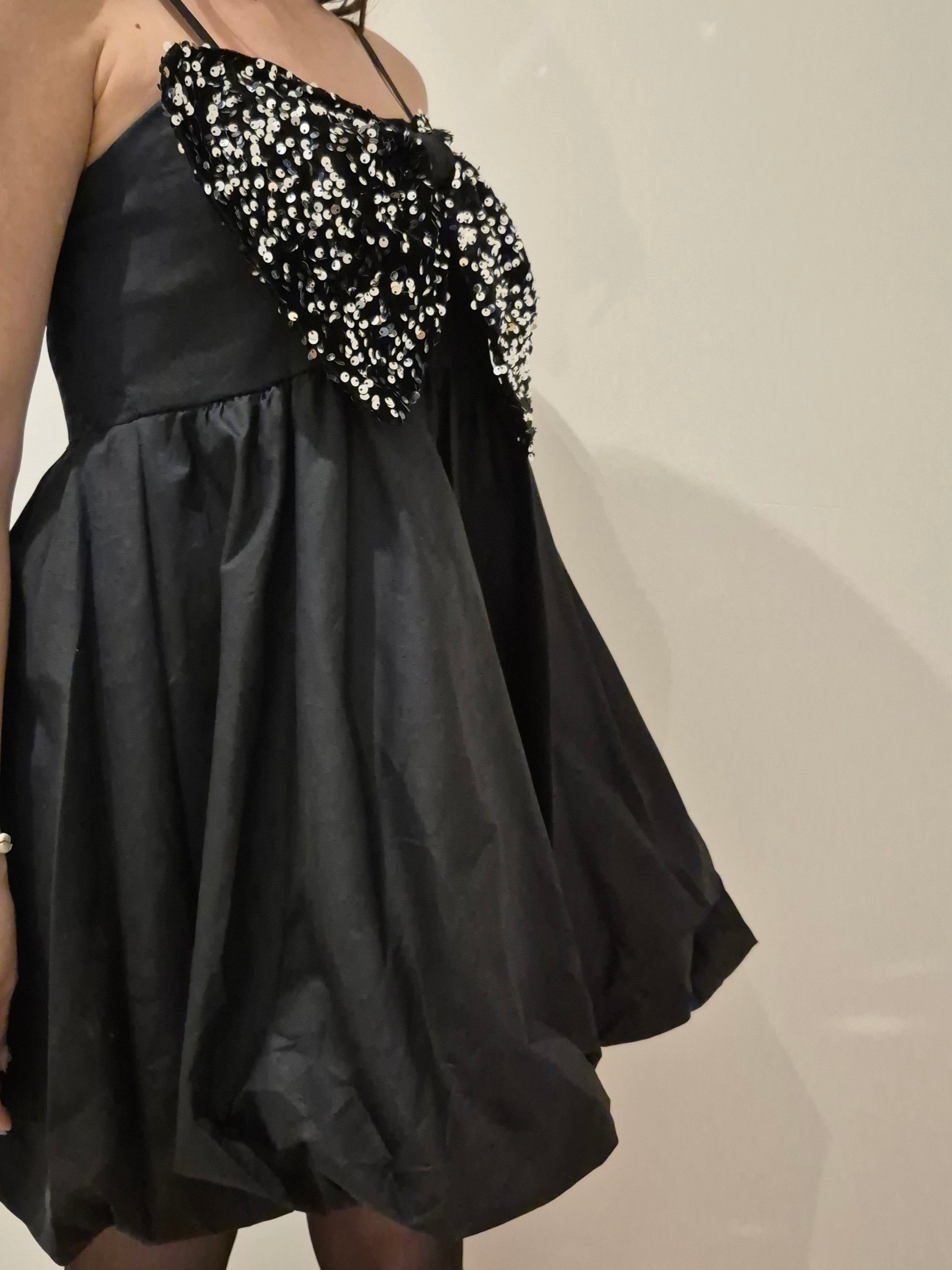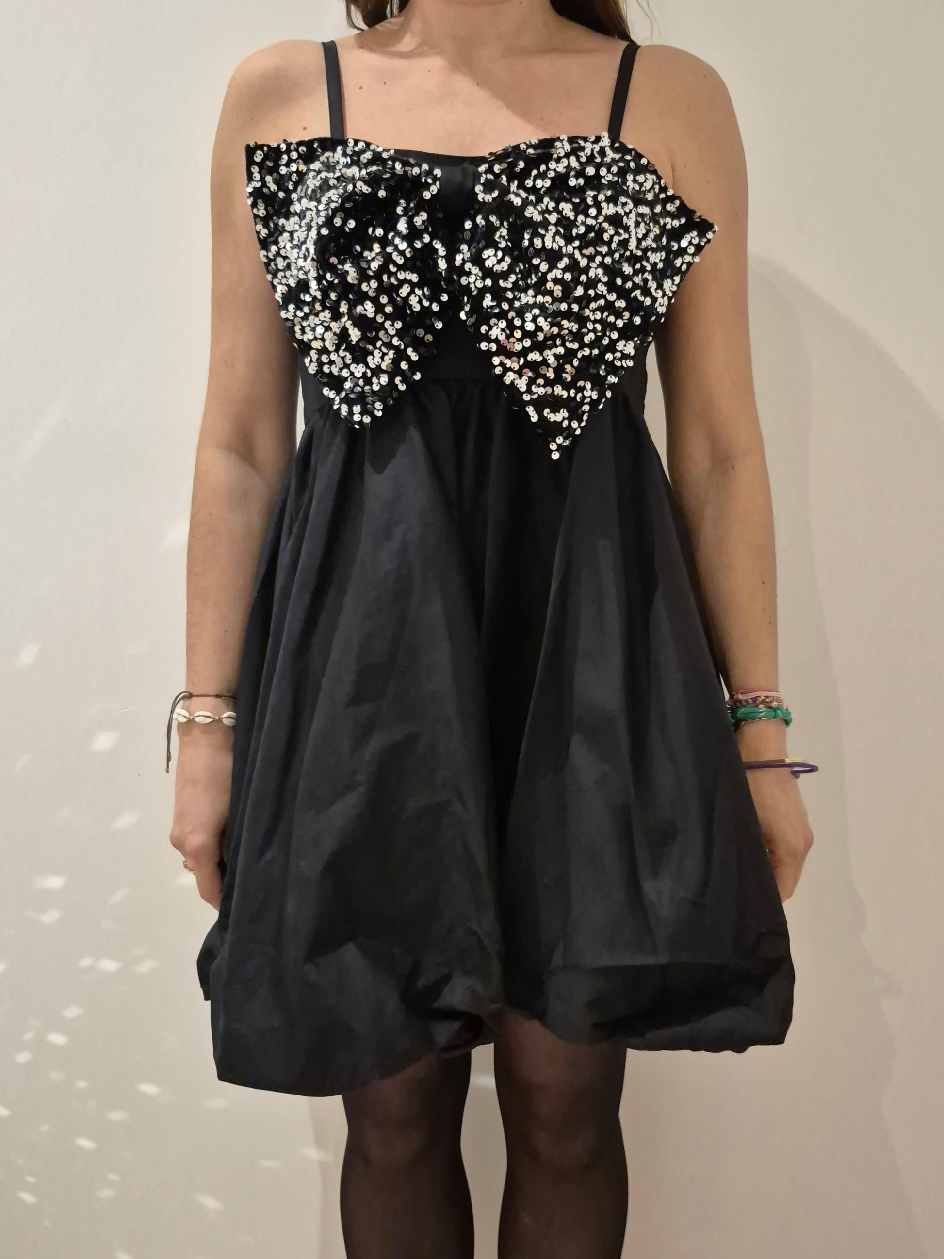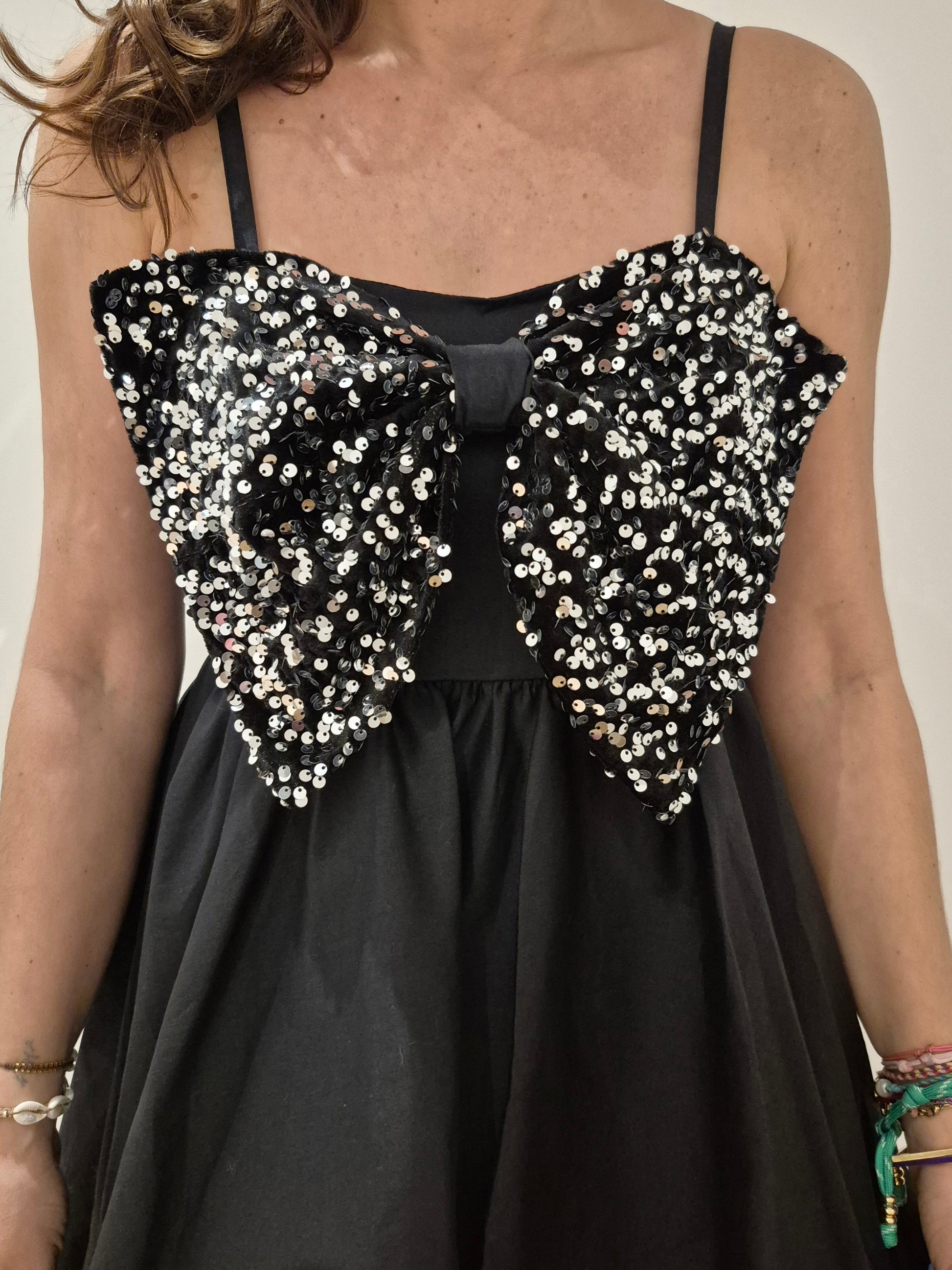 - Robe ballon à fines brides réglables / Detail nœud en velours et sequins / Dos élastique