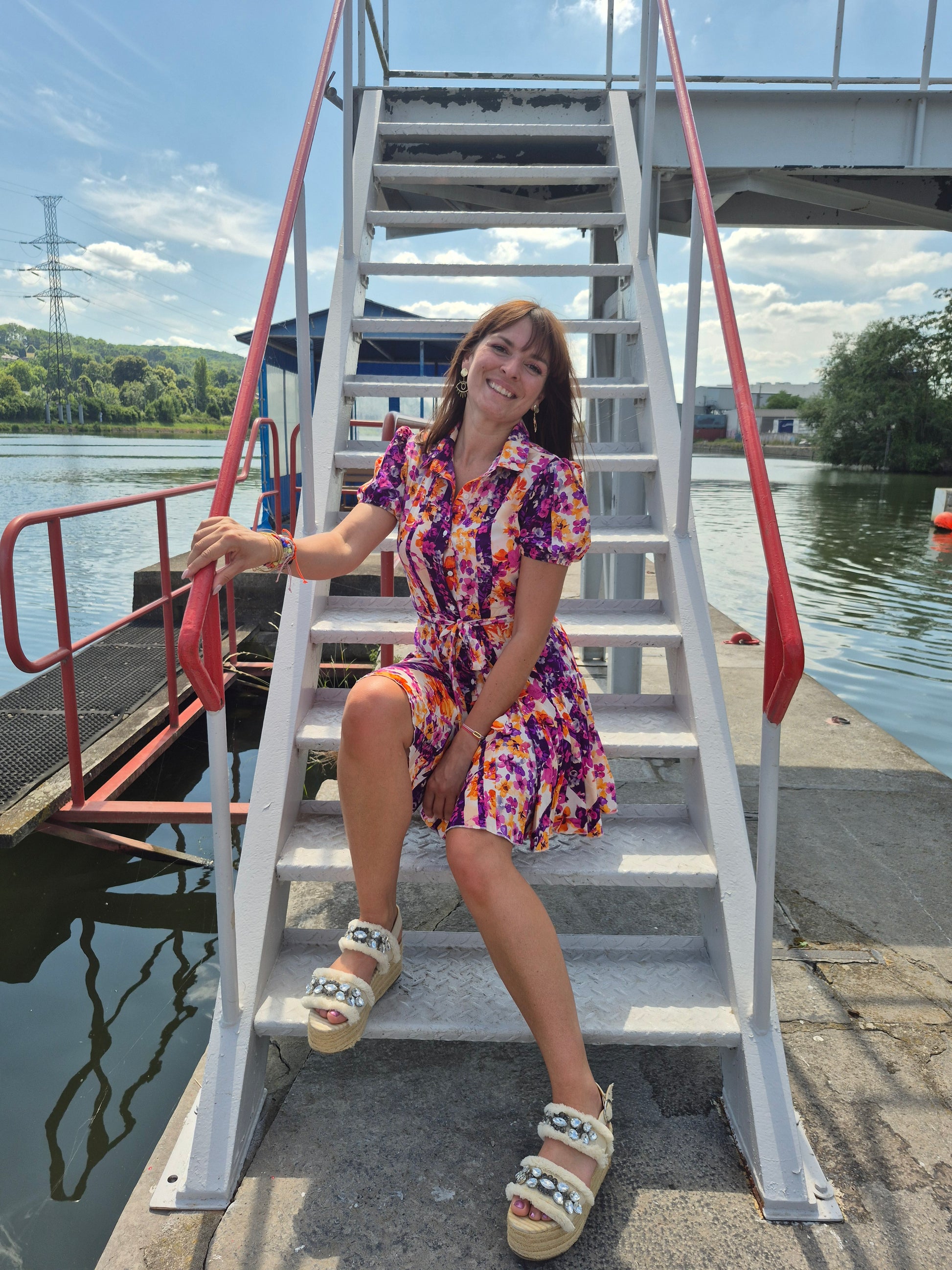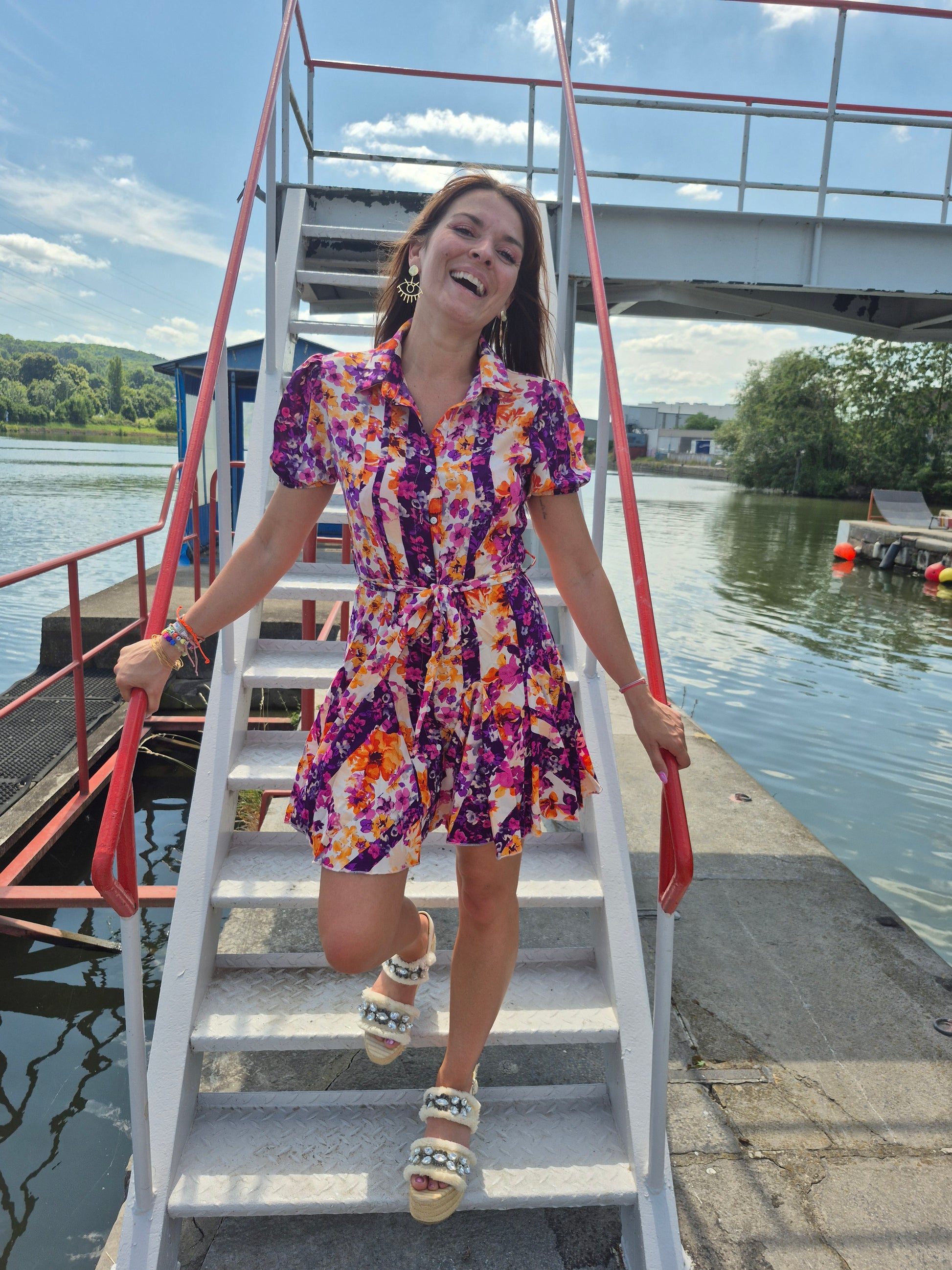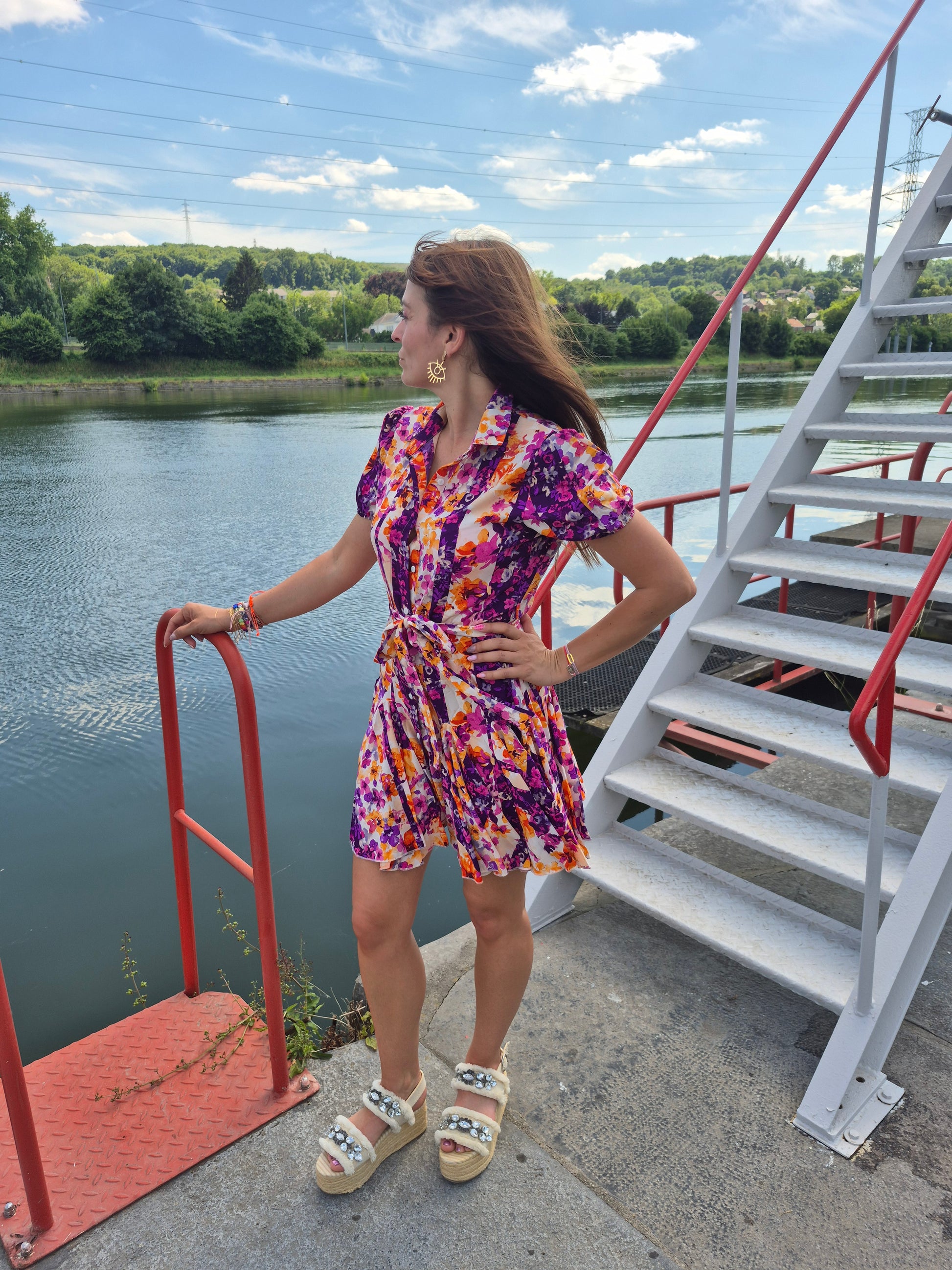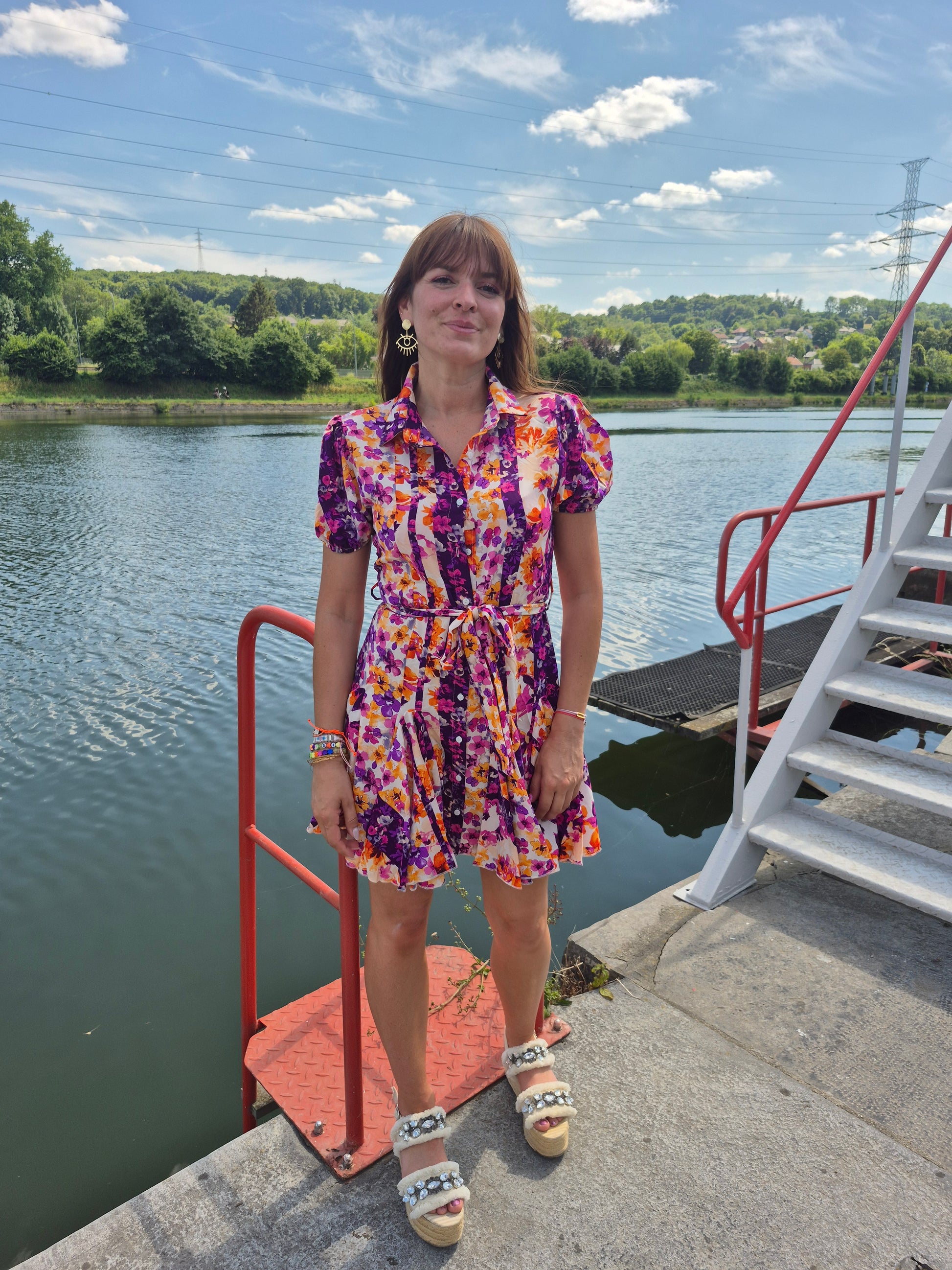 - Jolie robe boutonnée / Fournie avec une ceinture à nouer