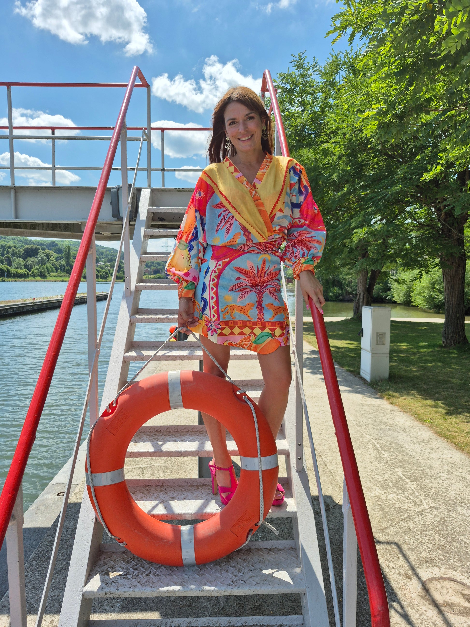 - Robe portefeuille avec ceinture à nouer / Lien (invisible) a nouer à l'intérieur pour sécuriser la fermeture.