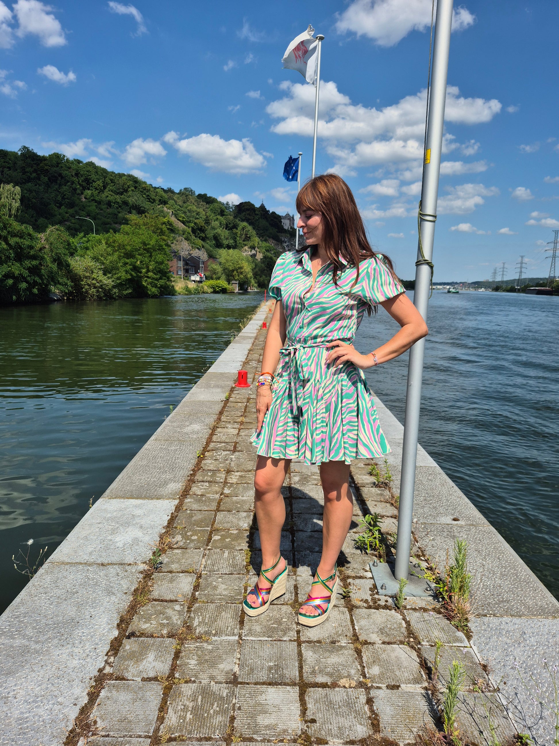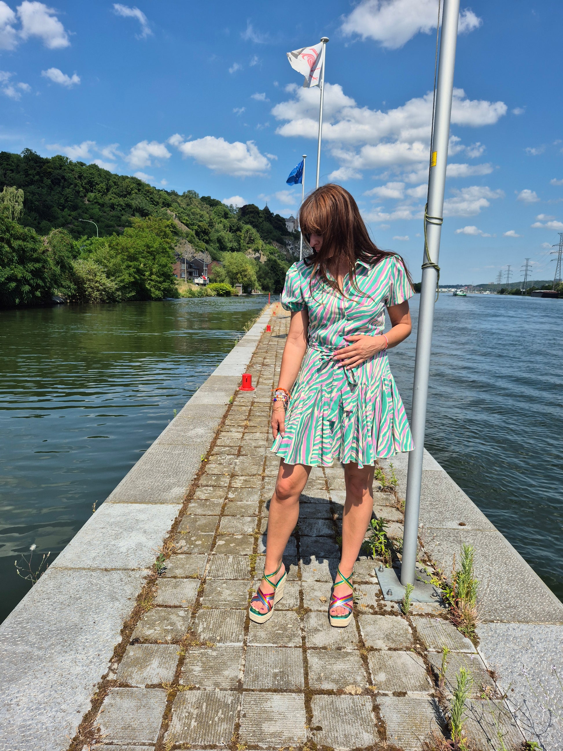 - Jolie robe boutonnée / Fournie avec une ceinture à nouer