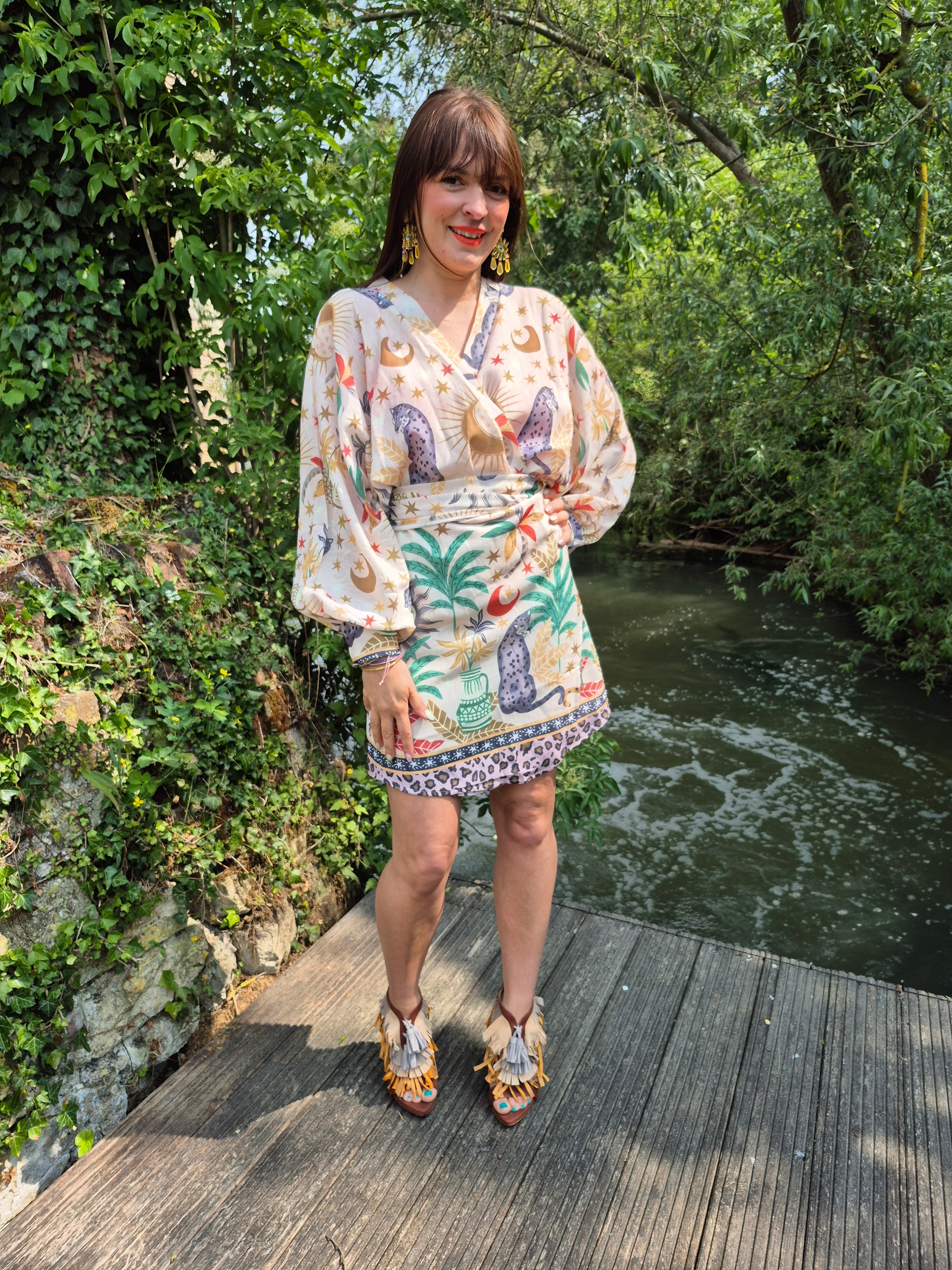 - Robe portefeuille avec ceinture à nouer / Lien (invisible) a nouer à l'intérieur pour sécuriser la fermeture.