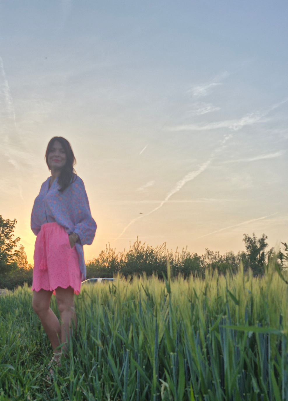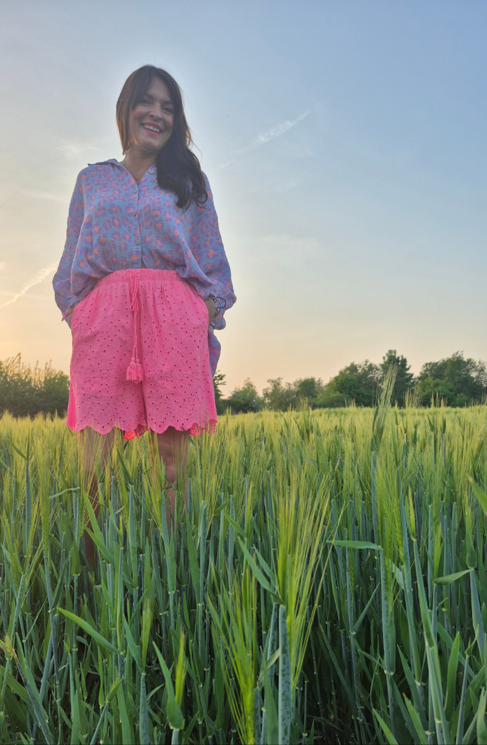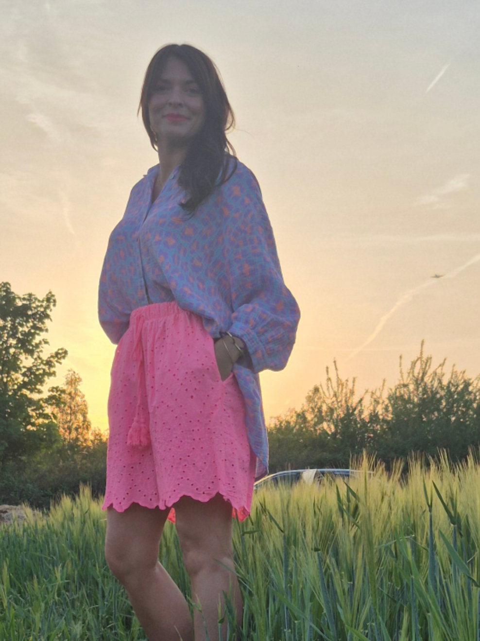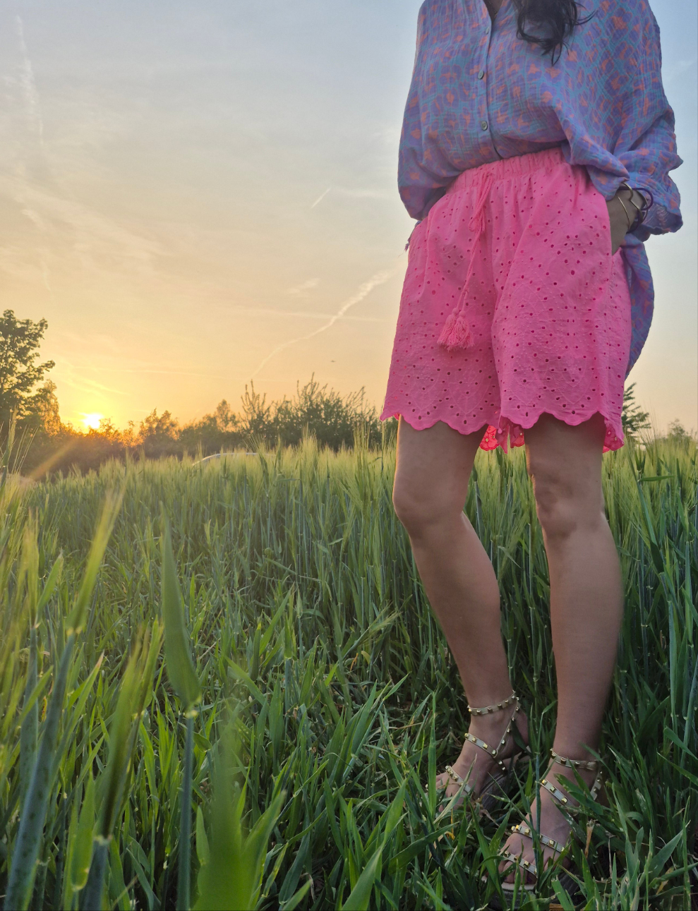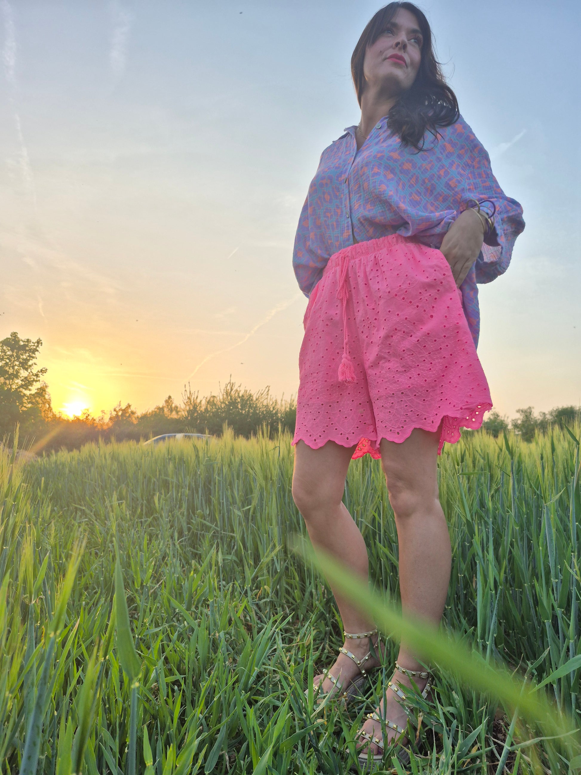 - Joli short effet dentelle doublé / Laille élastique / Lien décoratif à nouer
