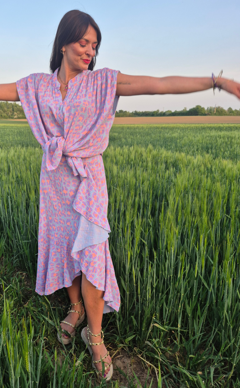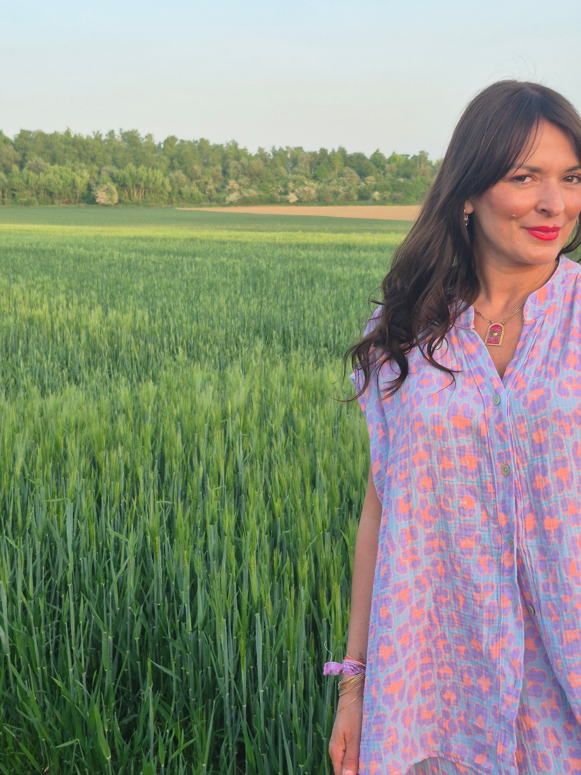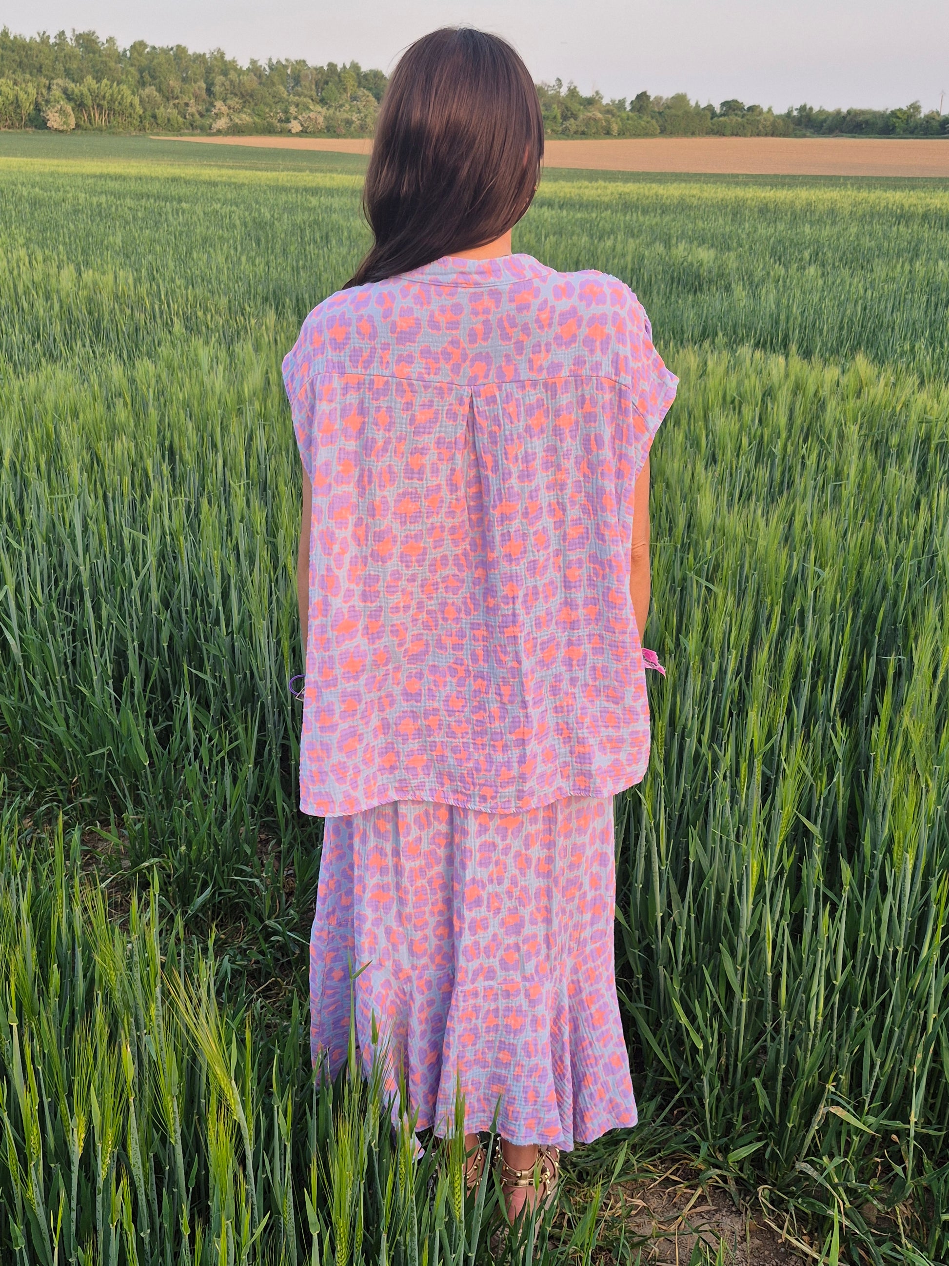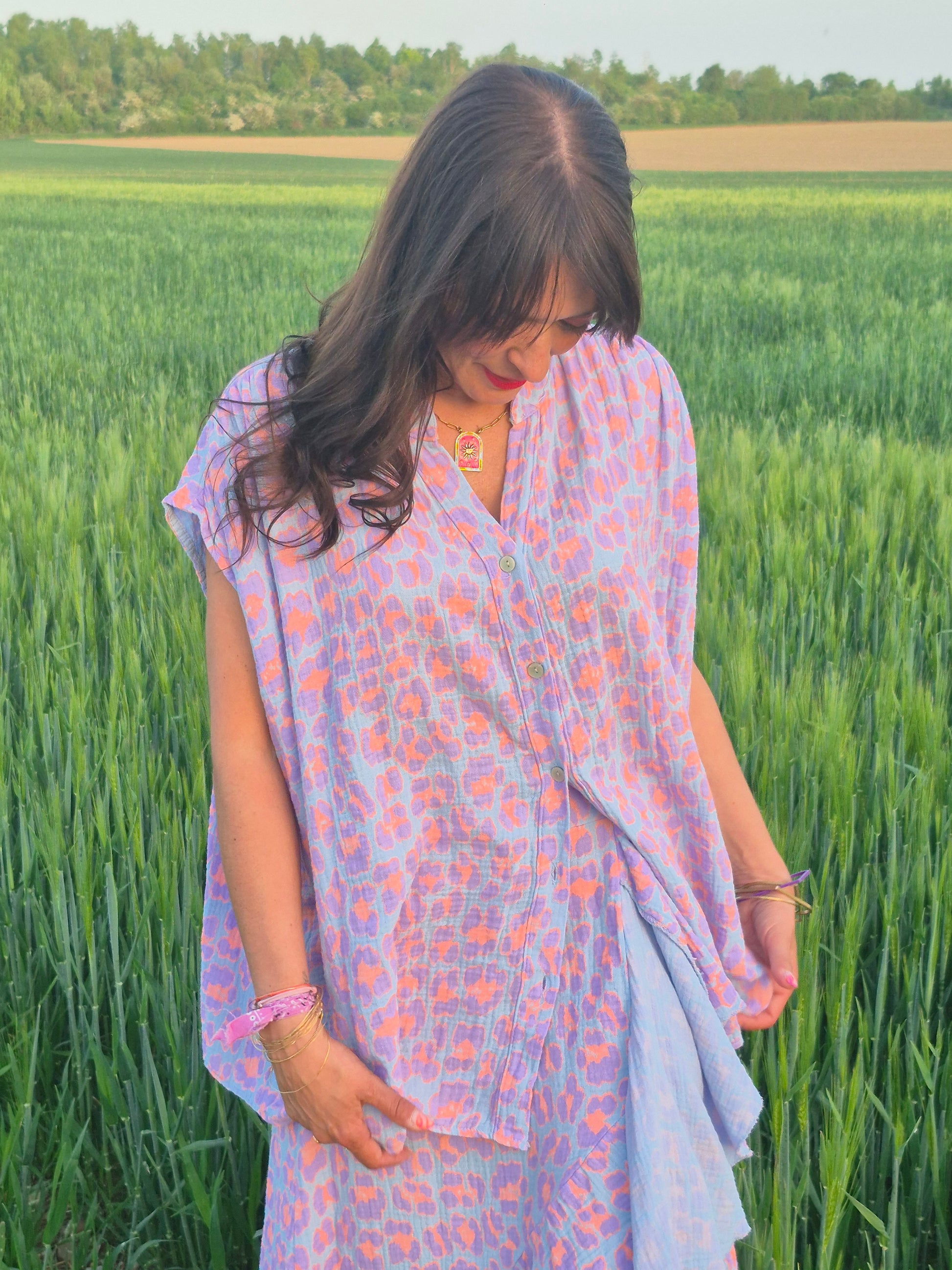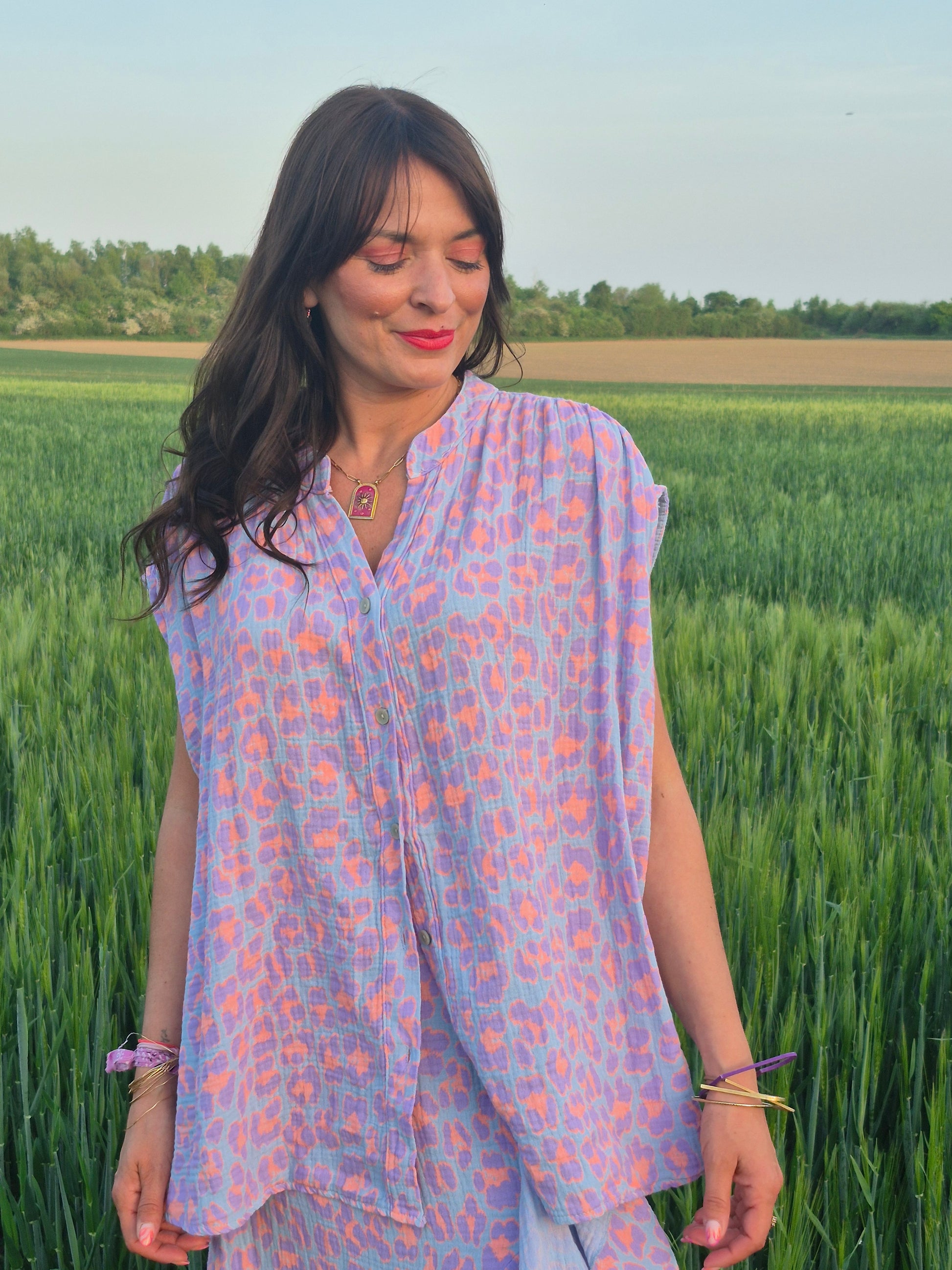 - Top boutonné sans manche coupe oversize en gaze de coton
