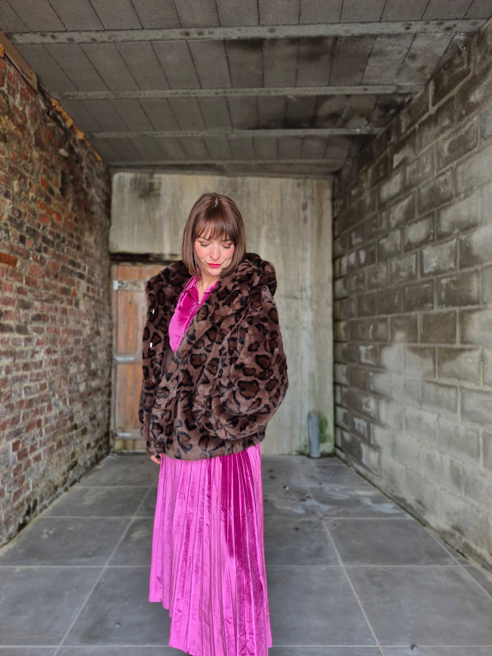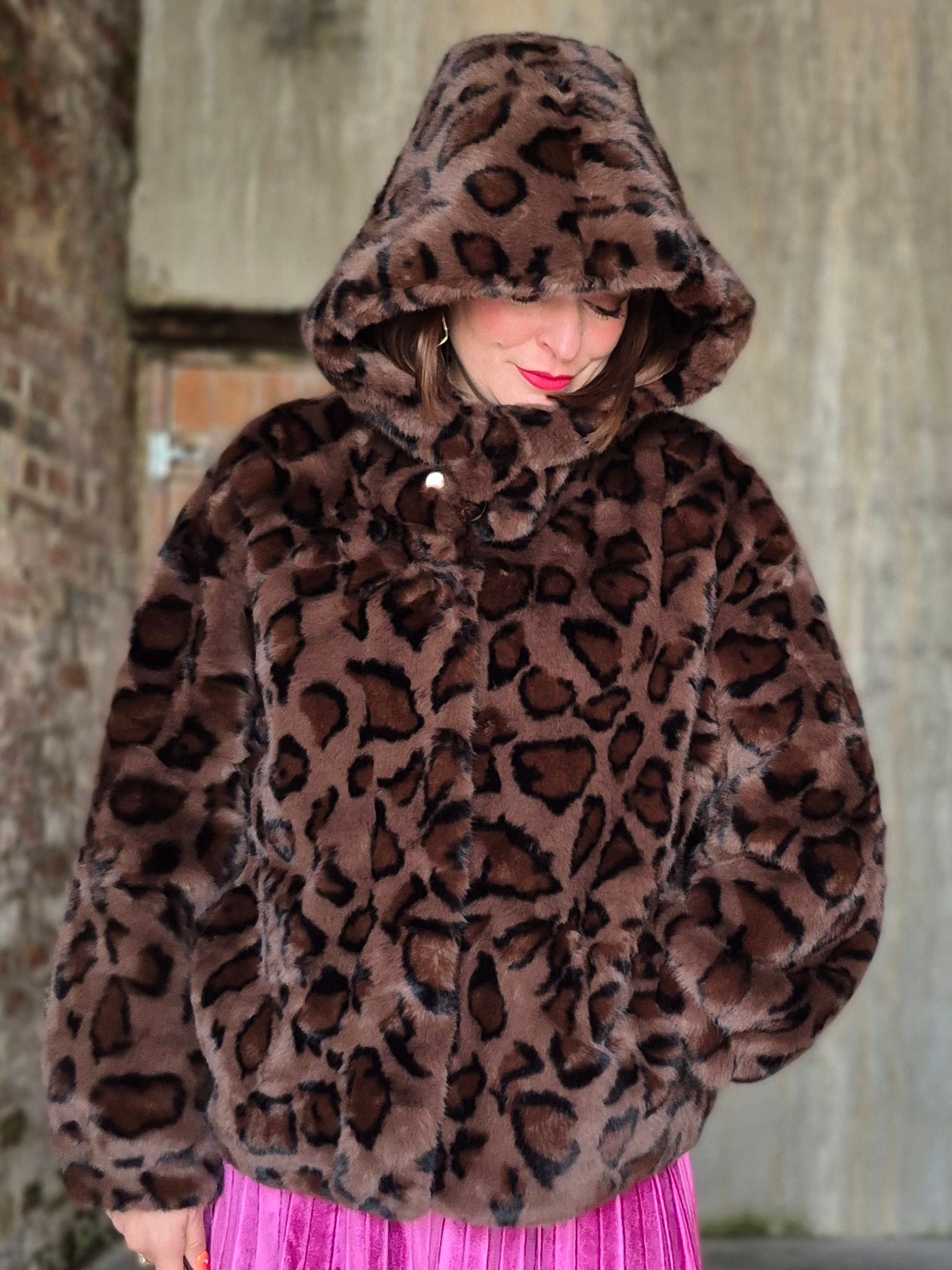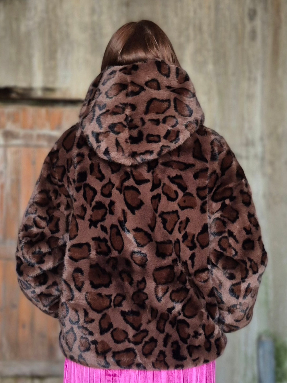 - Veste en fourrure synthétique motif léopard avec capuche et poches