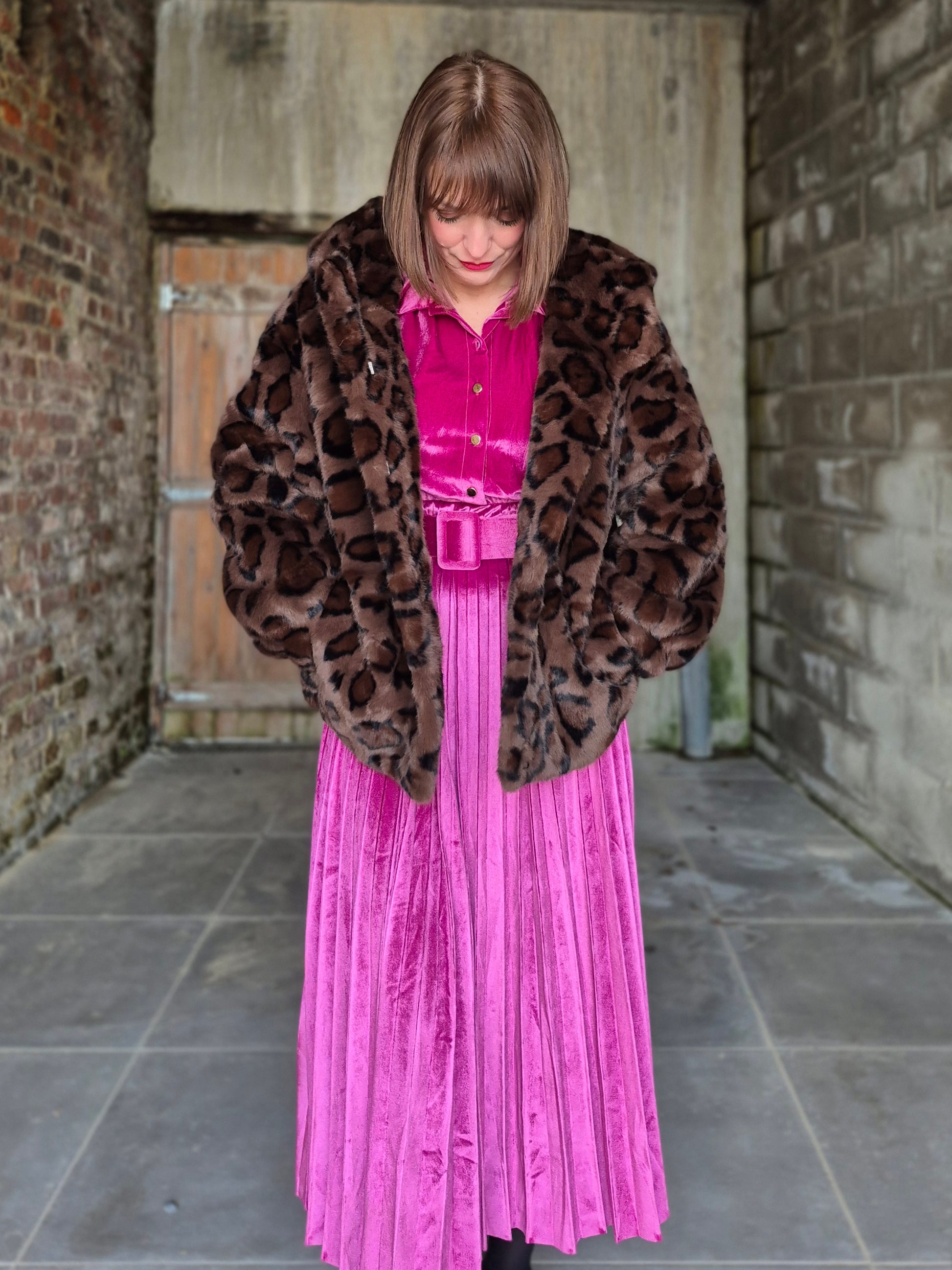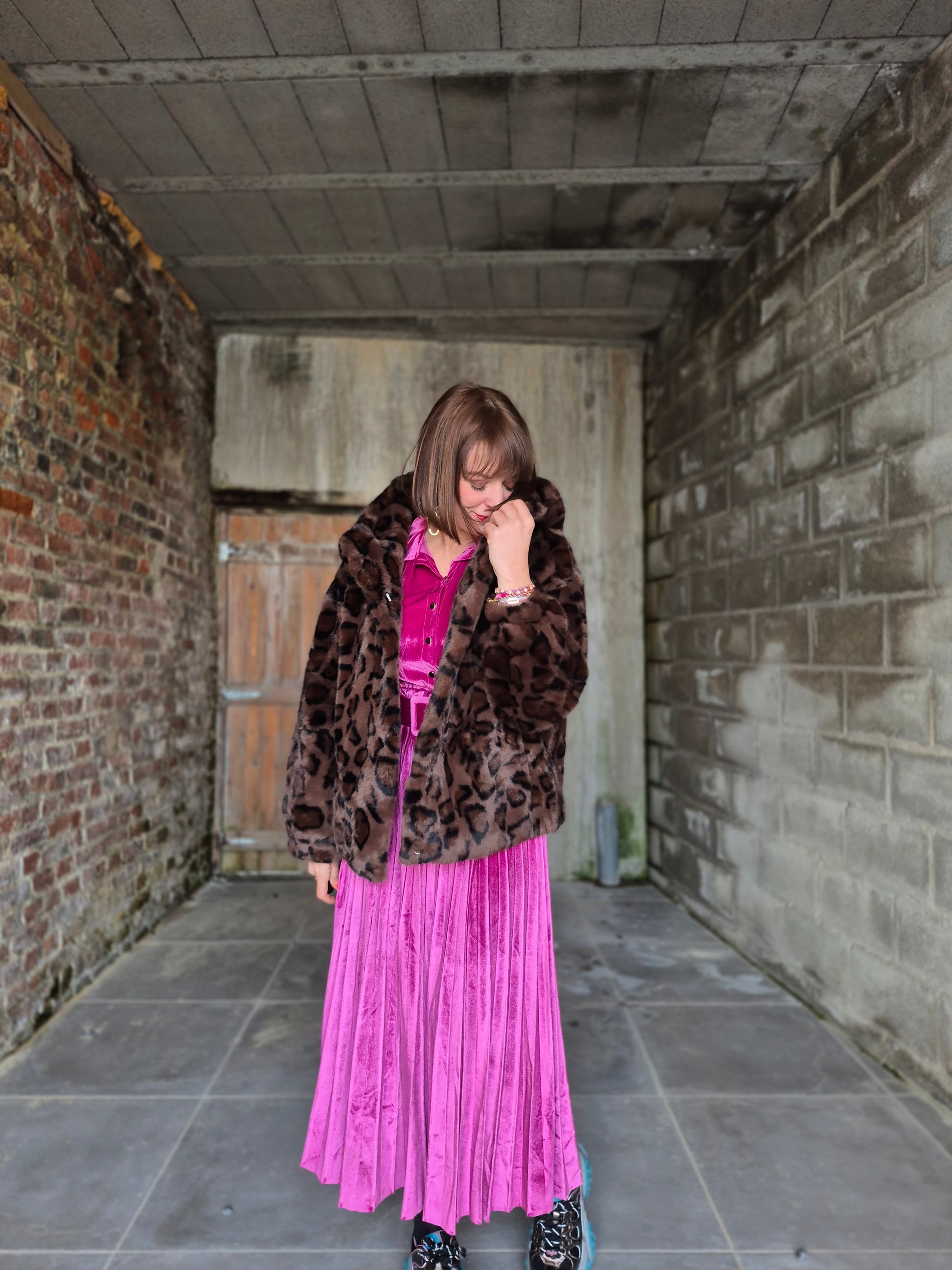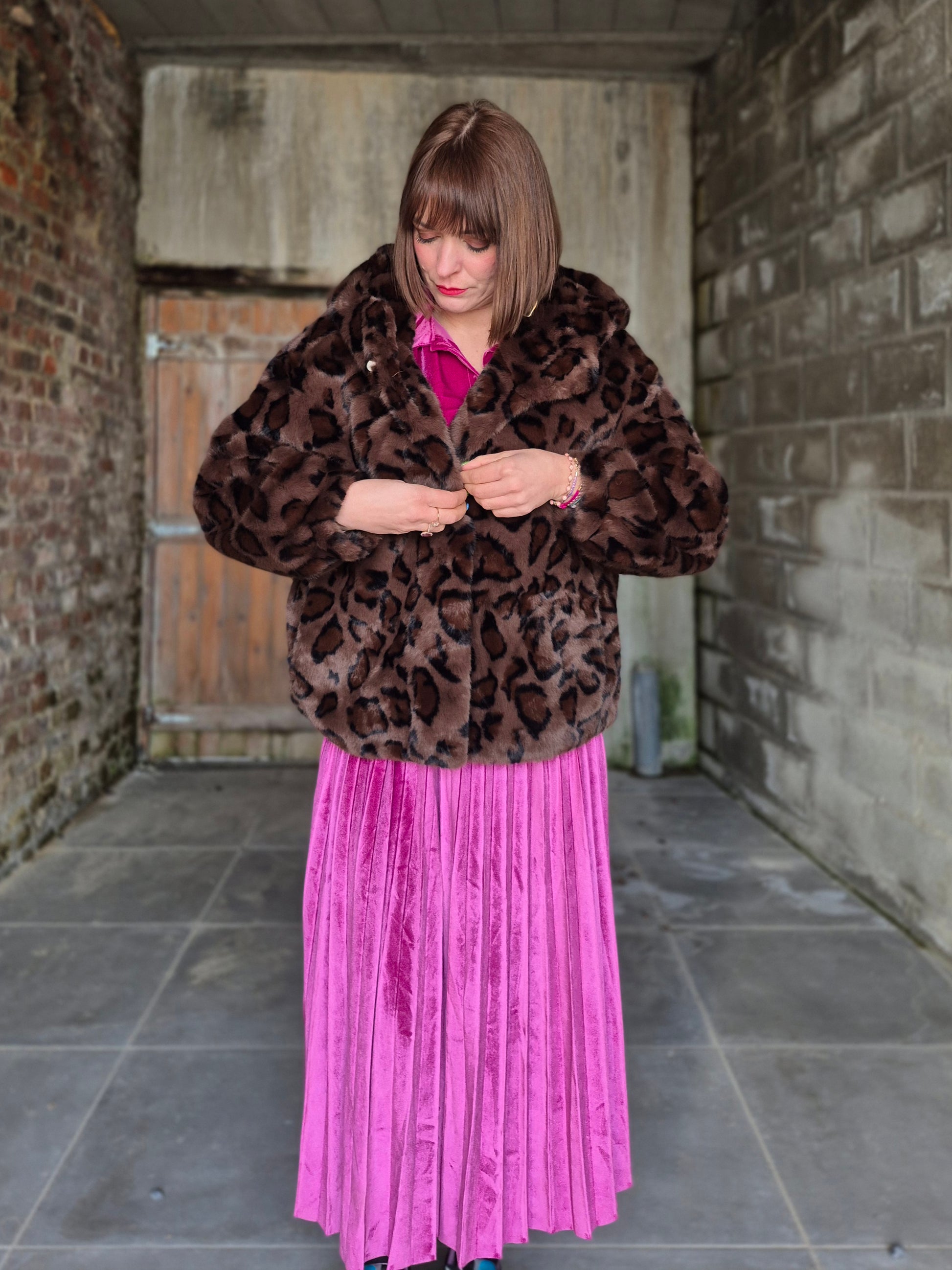 - Veste en fourrure synthétique motif léopard avec capuche et poches