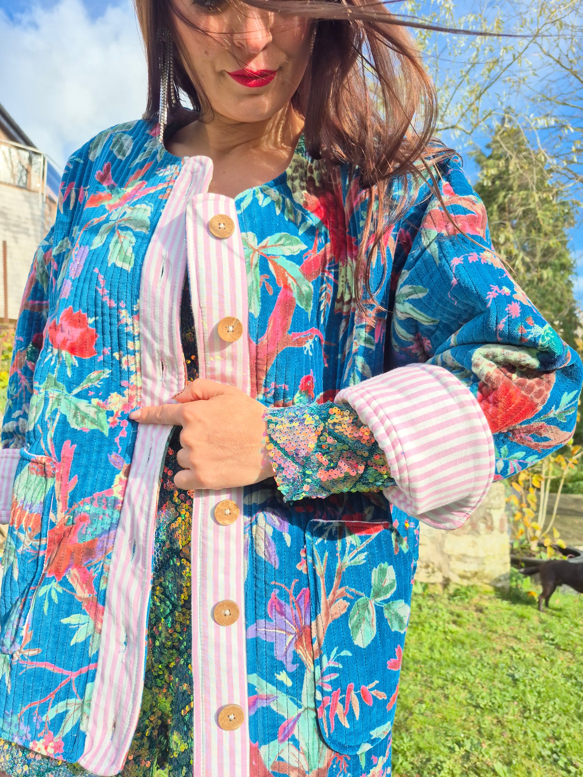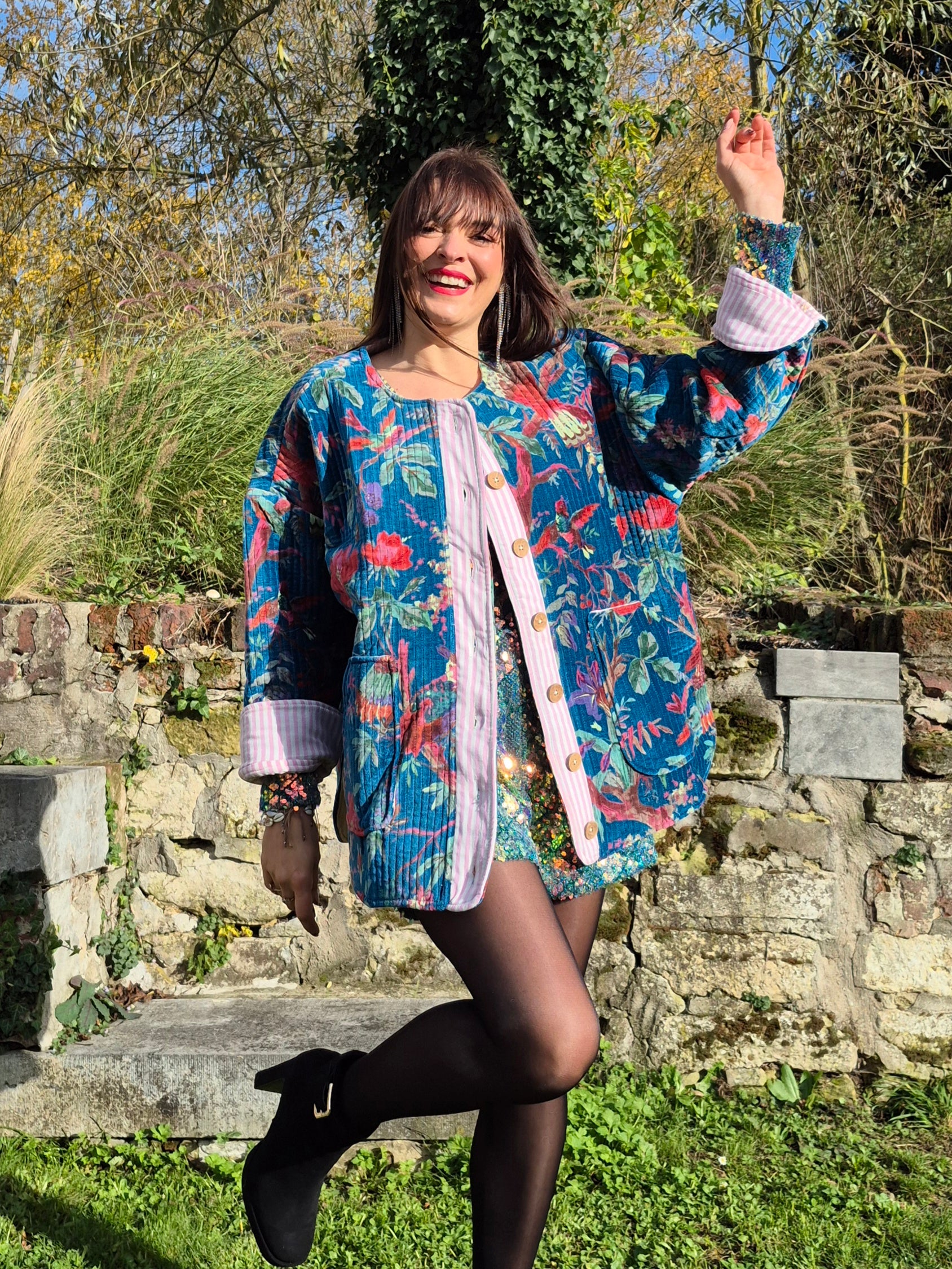 - Jolie veste matelassée effet velours / Doublure intérieure rayée en coton / Boutons en bois / Modele oversize convient du 34 au 42